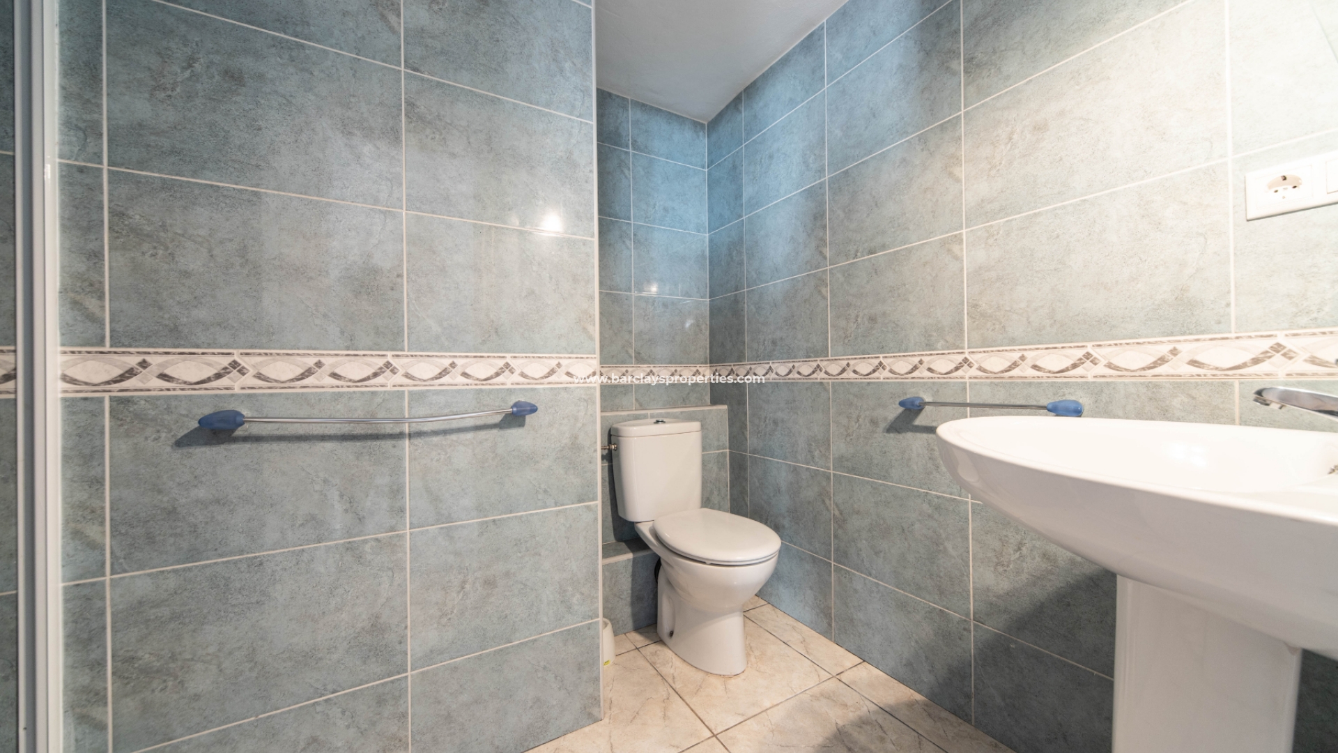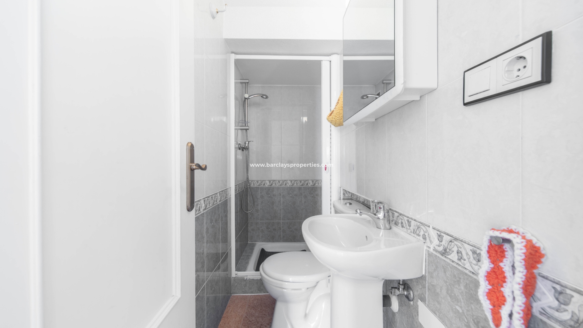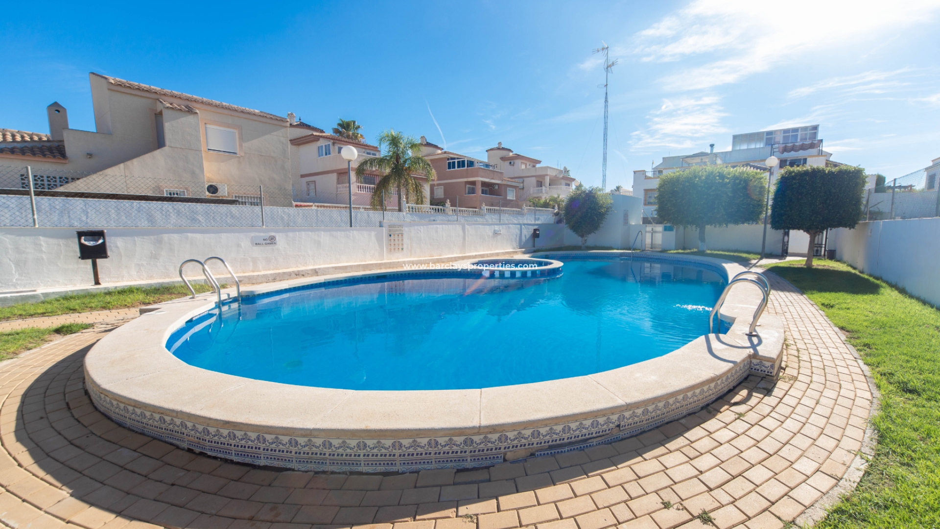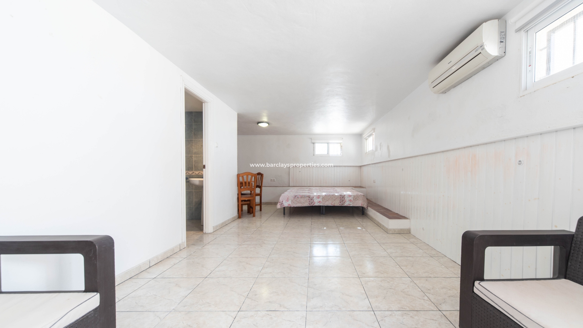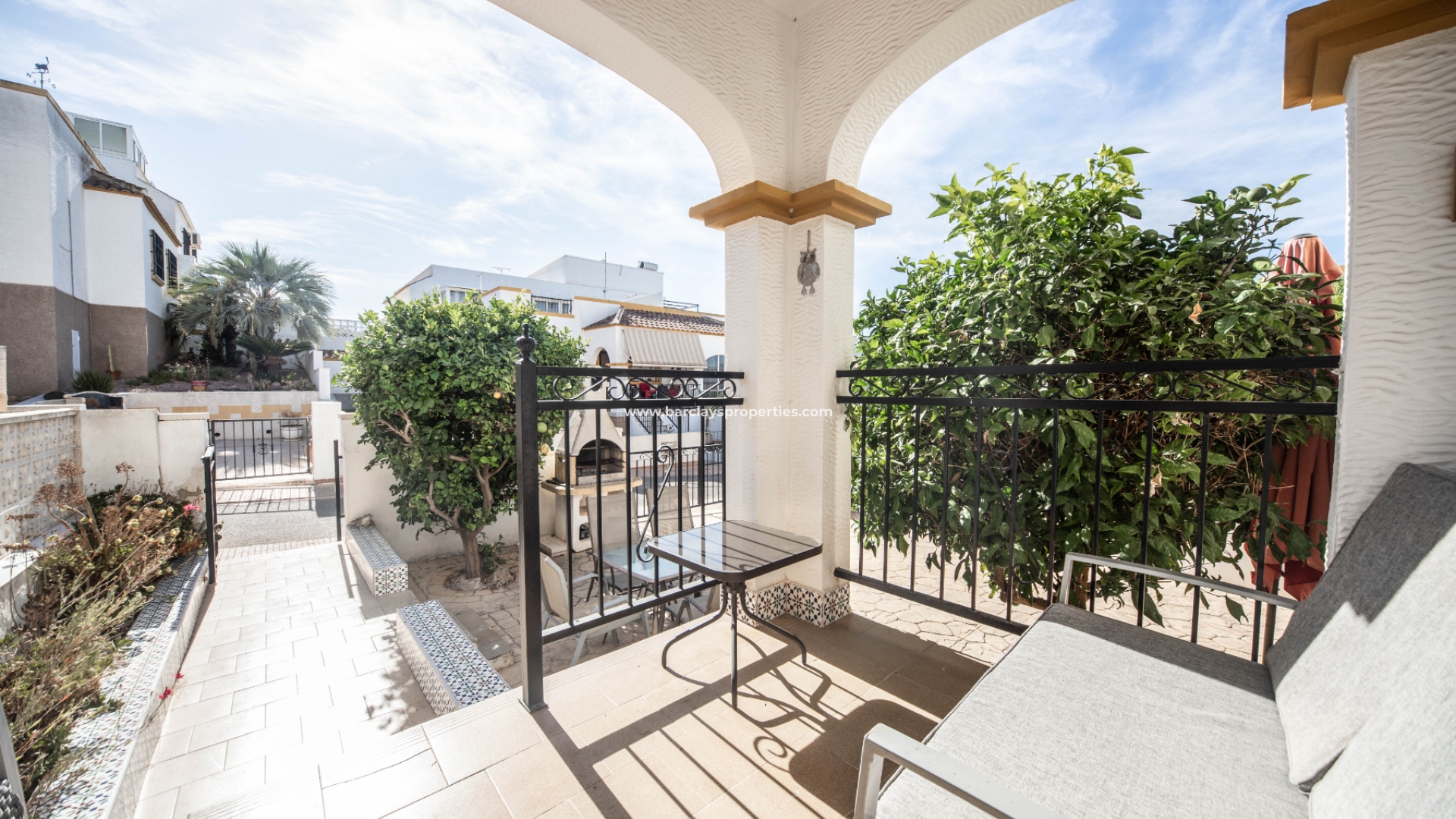 In een privé gemeenschap introduceren wij u dit populaire quad model, een "Isabel" die te koop staat in de urbanisatie La Marina, San Fulgencio. Deze charmante villa heeft toegang tot een goed onderhouden gemeenschappelijk zwembad met gras en verharde gebieden met grote bomen voor schaduw, buitendouches en een kinderzwembad. Voor degenen die het strand willen bezoeken, brengt een autorit van 5 minuten u naar het gouden strand van het dorp La Marina. Voor familie en vrienden is de dichtstbijzijnde luchthaven Alicante-Elche slechts 25 minuten rijden van het huis.