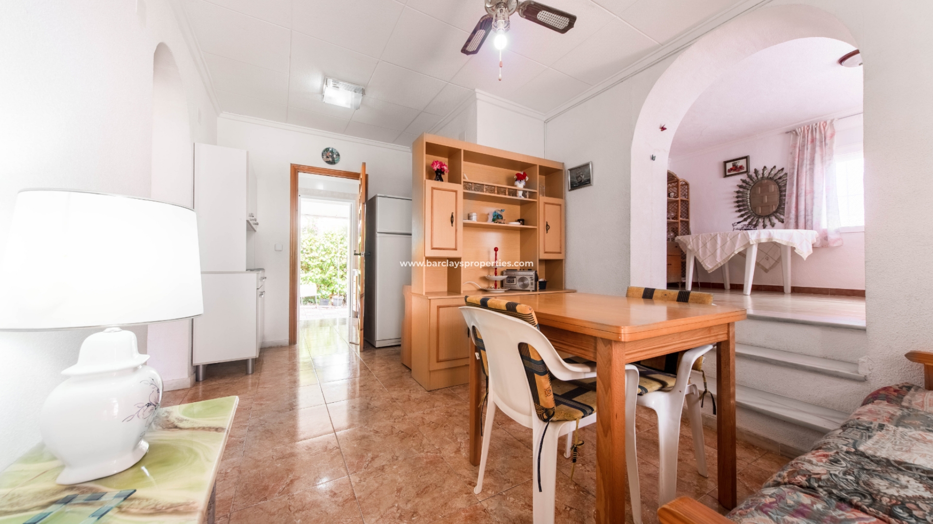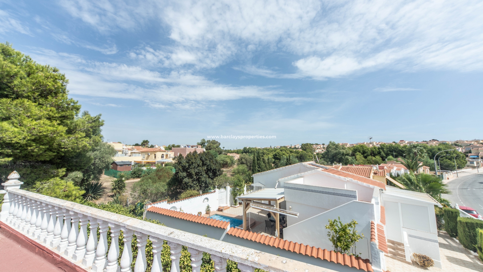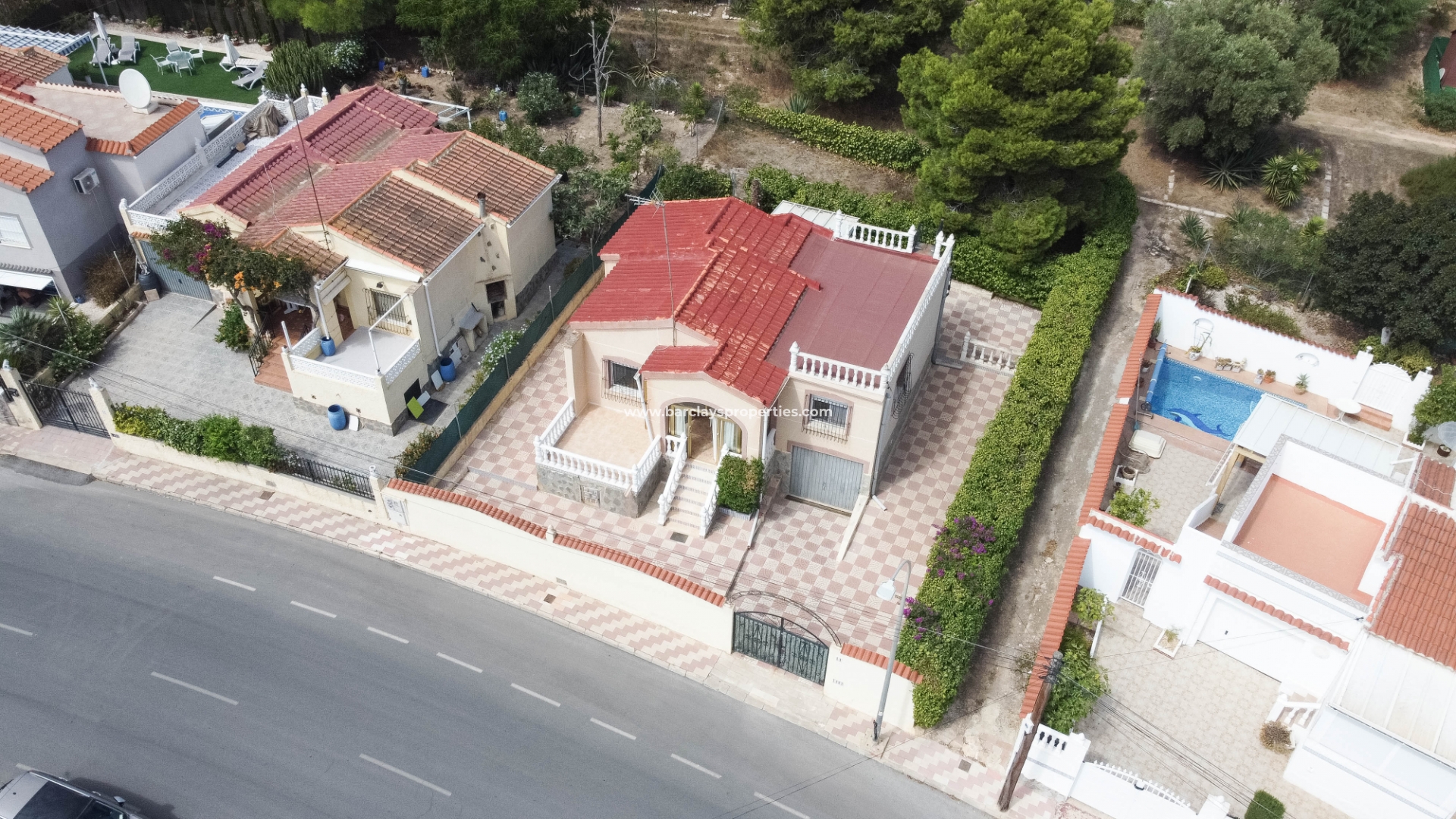 We vinden deze charmante vrijstaande villa gelegen in een zeer gewilde wijk van La Marina Urbanisatie. Het is een rustige maar centrale omgeving en grenst aan een groot dennenbos park. Een wandeling van zeven minuten in beide richtingen brengt u naar een commercieel gebied, een daarvan is de populaire Consum Square en de andere thuisbasis van de lokale arts chirurgie en het stadhuis samen met een apotheek en een sportcomplex met een groot zwembad. In beide gebieden vindt u supermarkten, een scala aan winkels en een eclectische mix van bars en restaurants met een scala aan verschillende keukens, waarvan vele het hele jaar door live entertainment bieden.