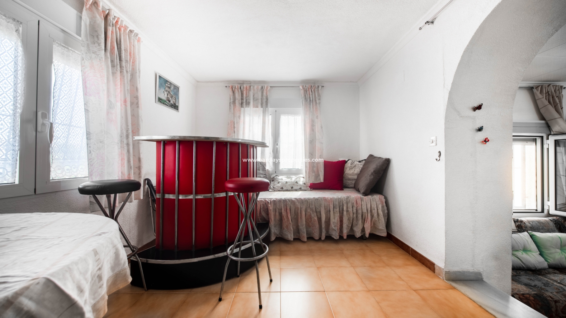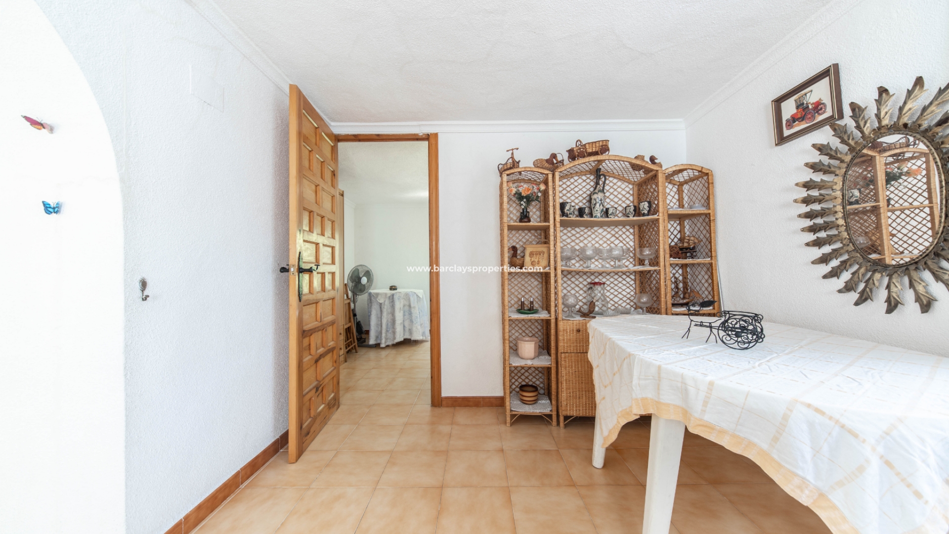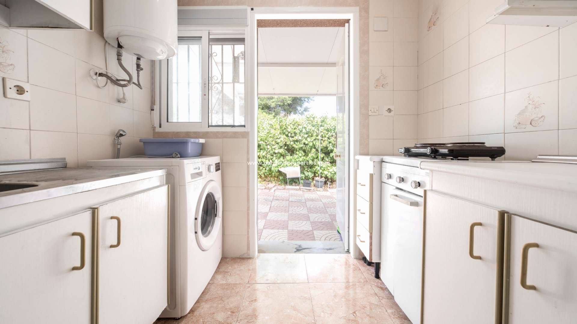 We vinden deze charmante vrijstaande villa gelegen in een zeer gewilde wijk van La Marina Urbanisatie. Het is een rustige maar centrale omgeving en grenst aan een groot dennenbos park. Een wandeling van zeven minuten in beide richtingen brengt u naar een commercieel gebied, een daarvan is de populaire Consum Square en de andere thuisbasis van de lokale arts chirurgie en het stadhuis samen met een apotheek en een sportcomplex met een groot zwembad. In beide gebieden vindt u supermarkten, een scala aan winkels en een eclectische mix van bars en restaurants met een scala aan verschillende keukens, waarvan vele het hele jaar door live entertainment bieden.