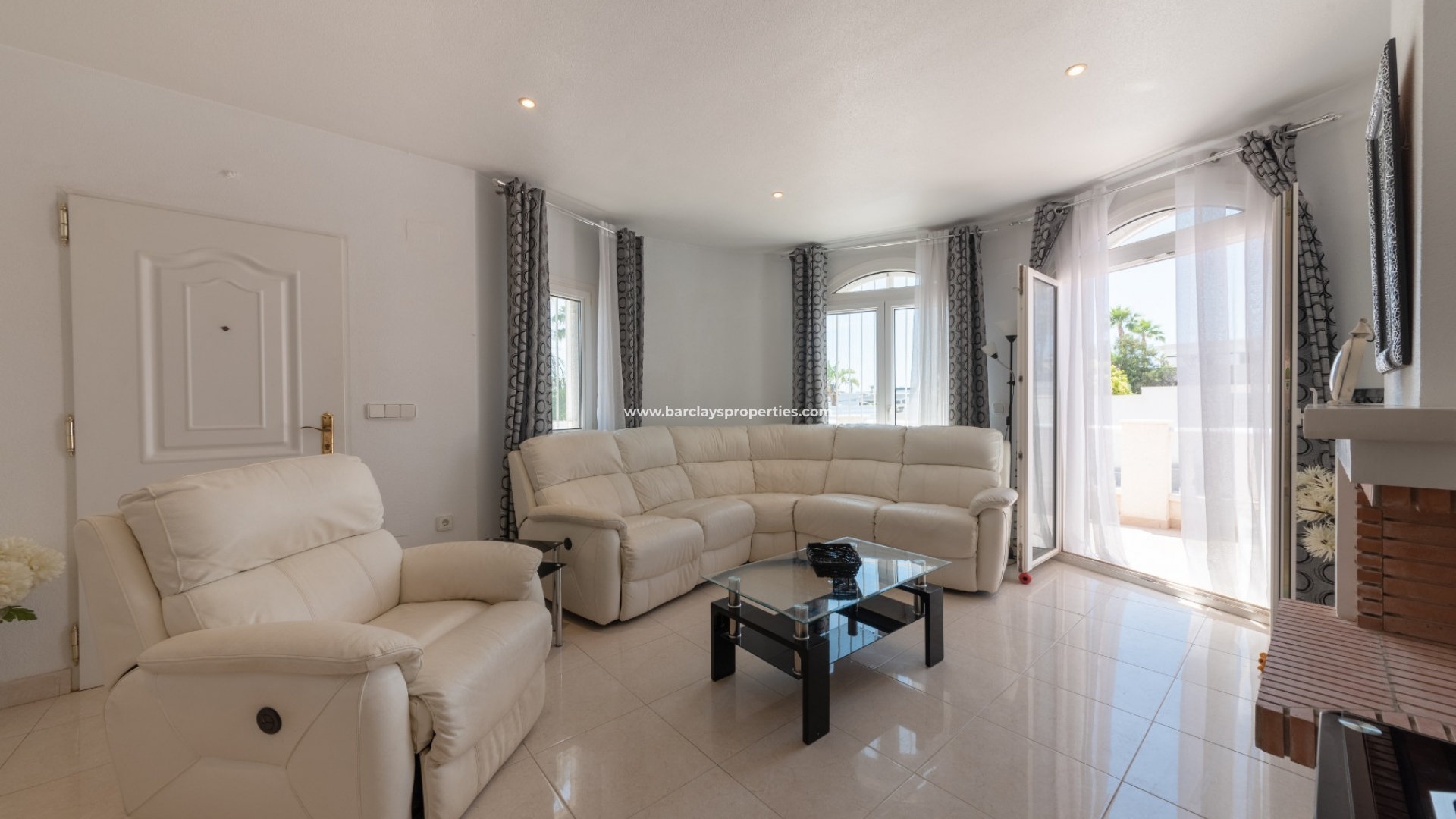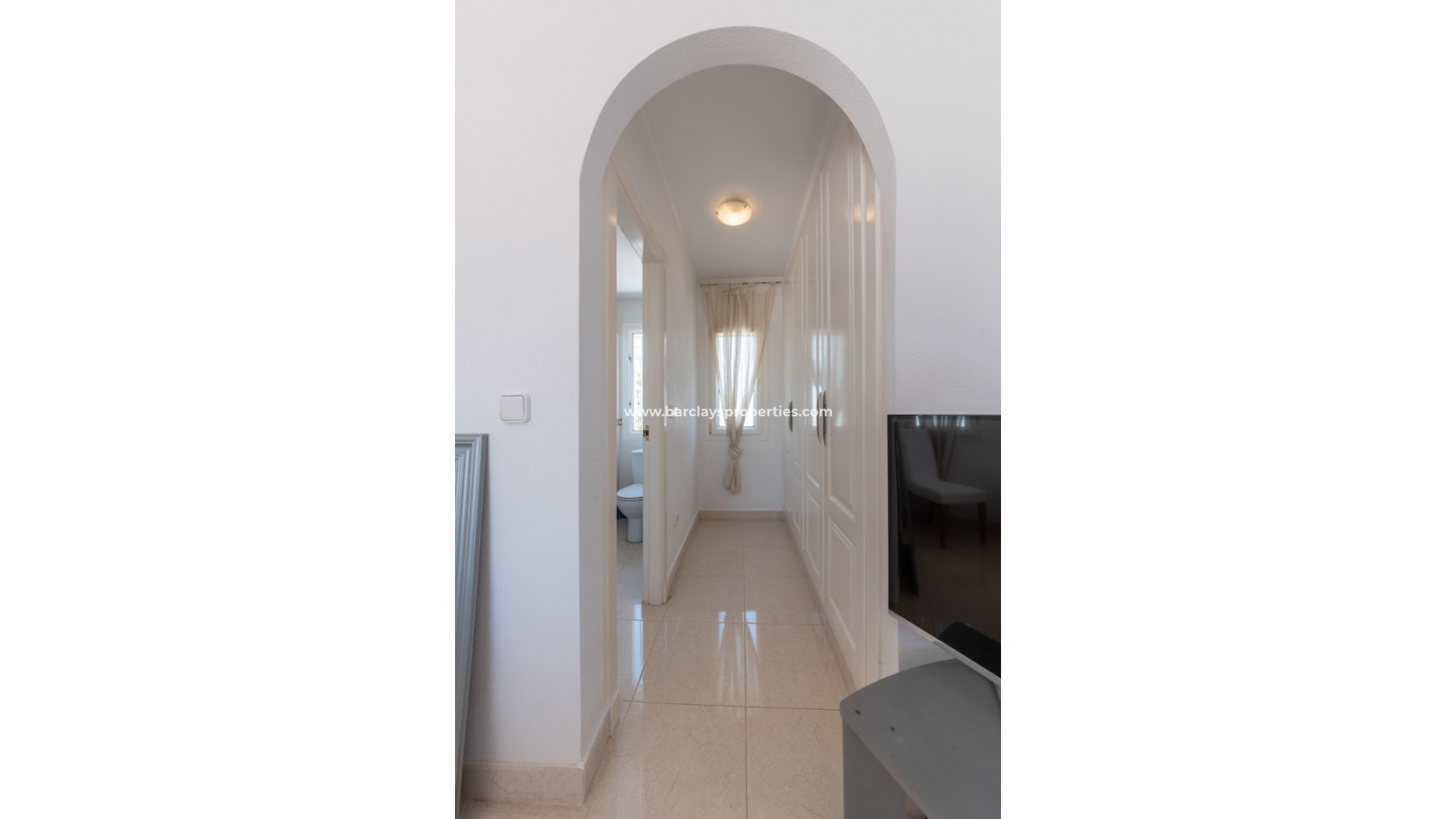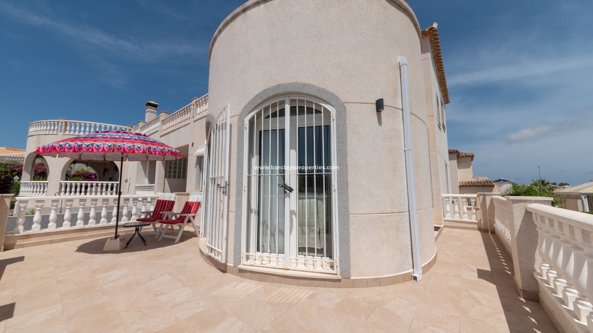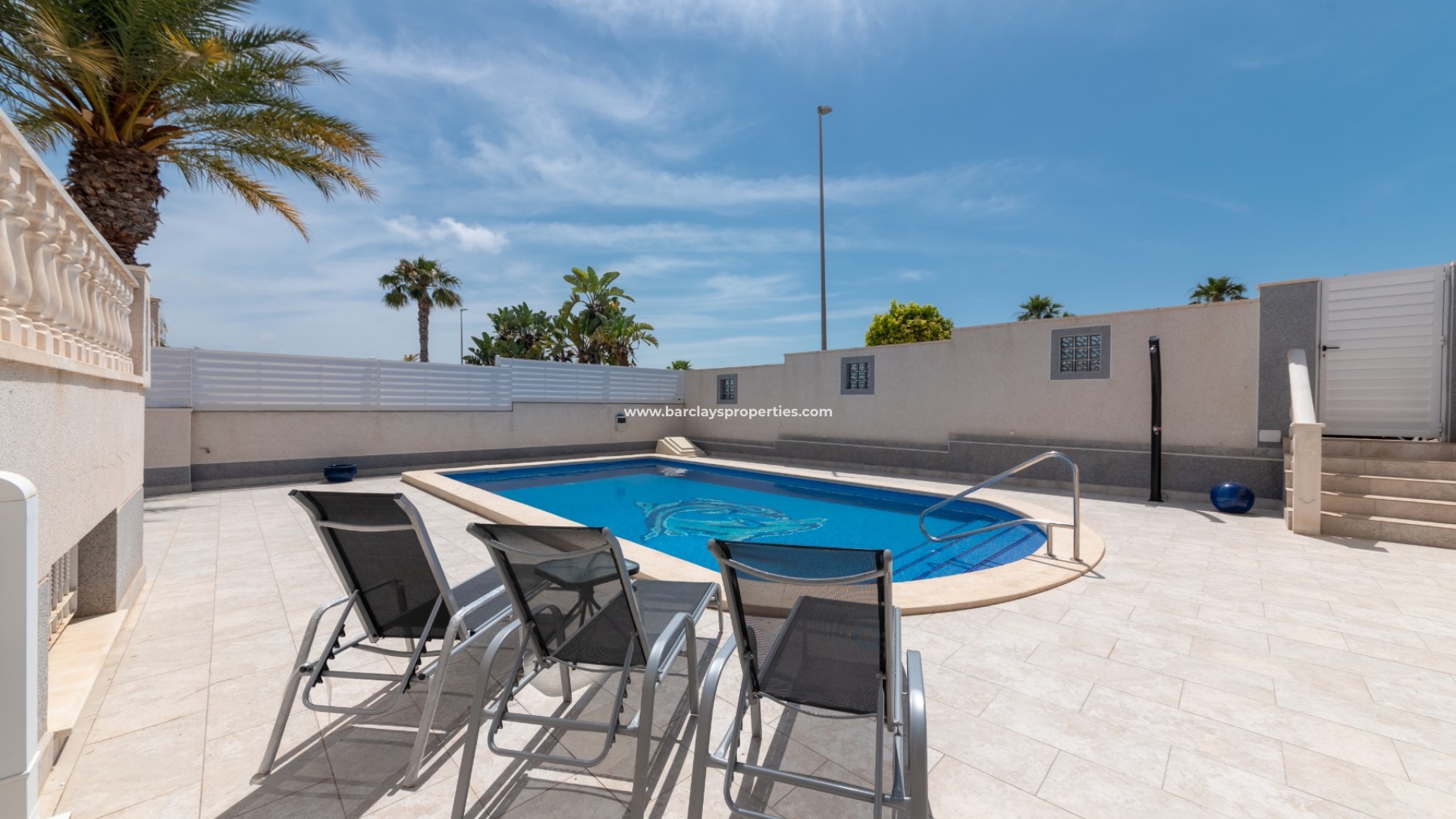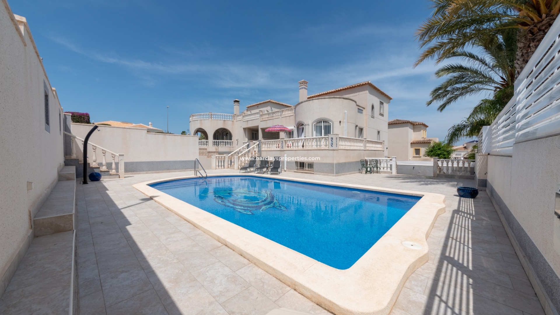 Gelegen in een goed formaat perceel van 510m2 is deze ruime zuid-westen gelegen 7 slaapkamer / 3 badkamer vrijstaande villa, een model "Ibiza" met leefruimte op drie verdiepingen. De villa heeft een prive zwembad van 5 x 9,5 binnen de verharde tuinen omgeven door hoge muren voor privacy. Dit is een prachtige eigenschap en een fantastische kans als er slechts een paar van dit type model gebouwd op de urbanisatie.