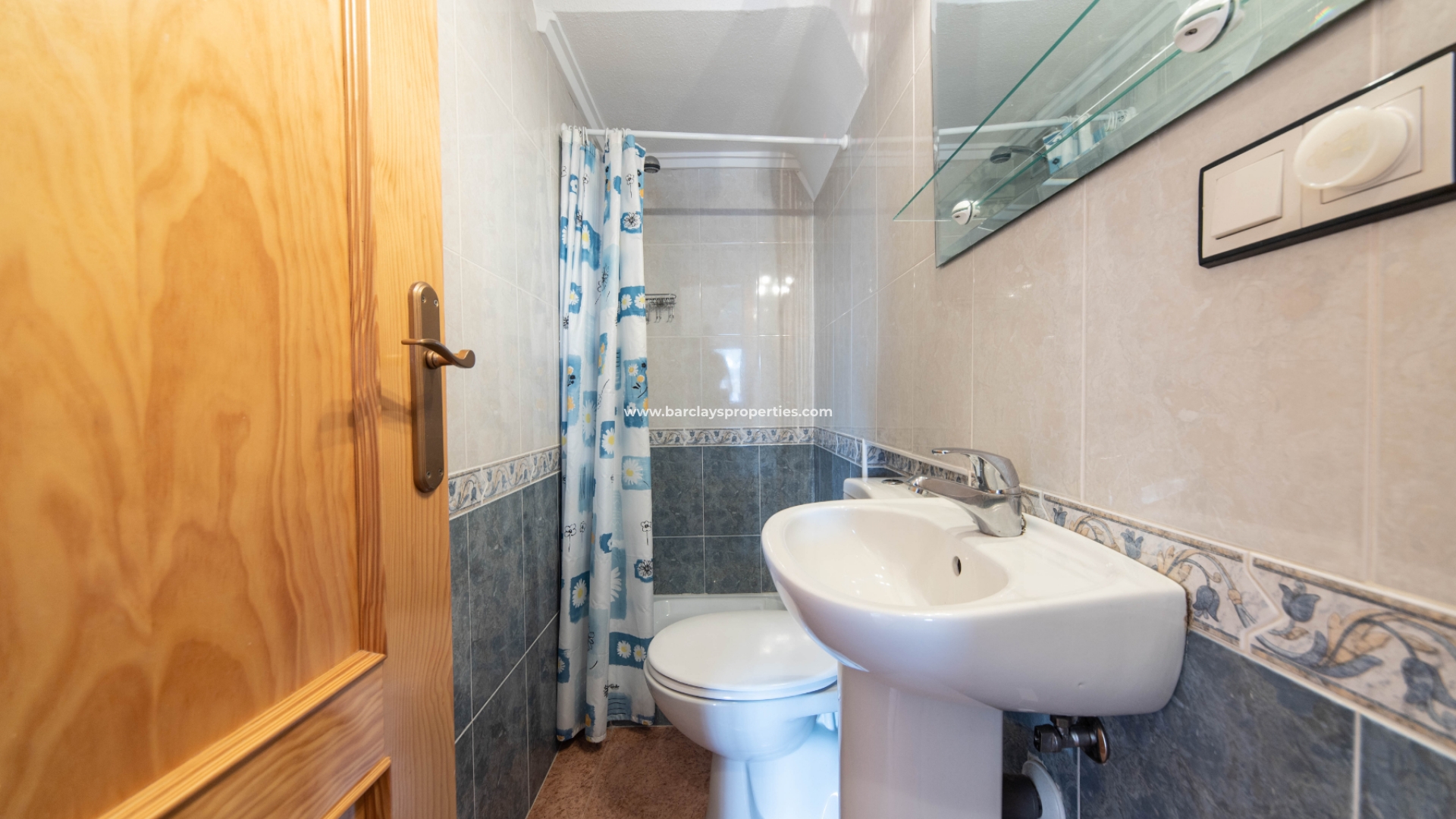 De veranda met zonnescherm leidt ons naar een zonneterras dat doorloopt aan de zijkant van het pand. Bij binnenkomst vinden we een mooi gepresenteerde woonkamer met eethoek. Vanaf hier vinden we de onafhankelijke nieuw ingerichte keuken met een toegangsdeur en een trap die leidt naar de zijtuin met gazebo en buiteneethoek. Naast de keuken is een tweepersoons slaapkamer met airconditioning, plafondventilator en inbouwkasten en een badkamer met douche van muur tot muur.