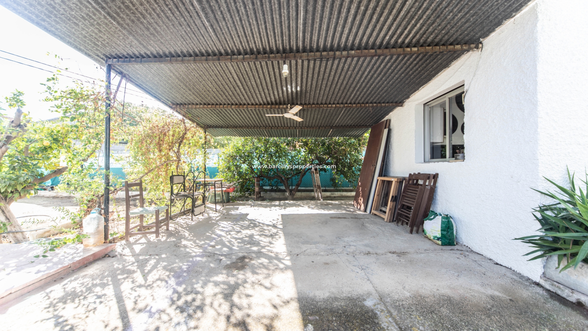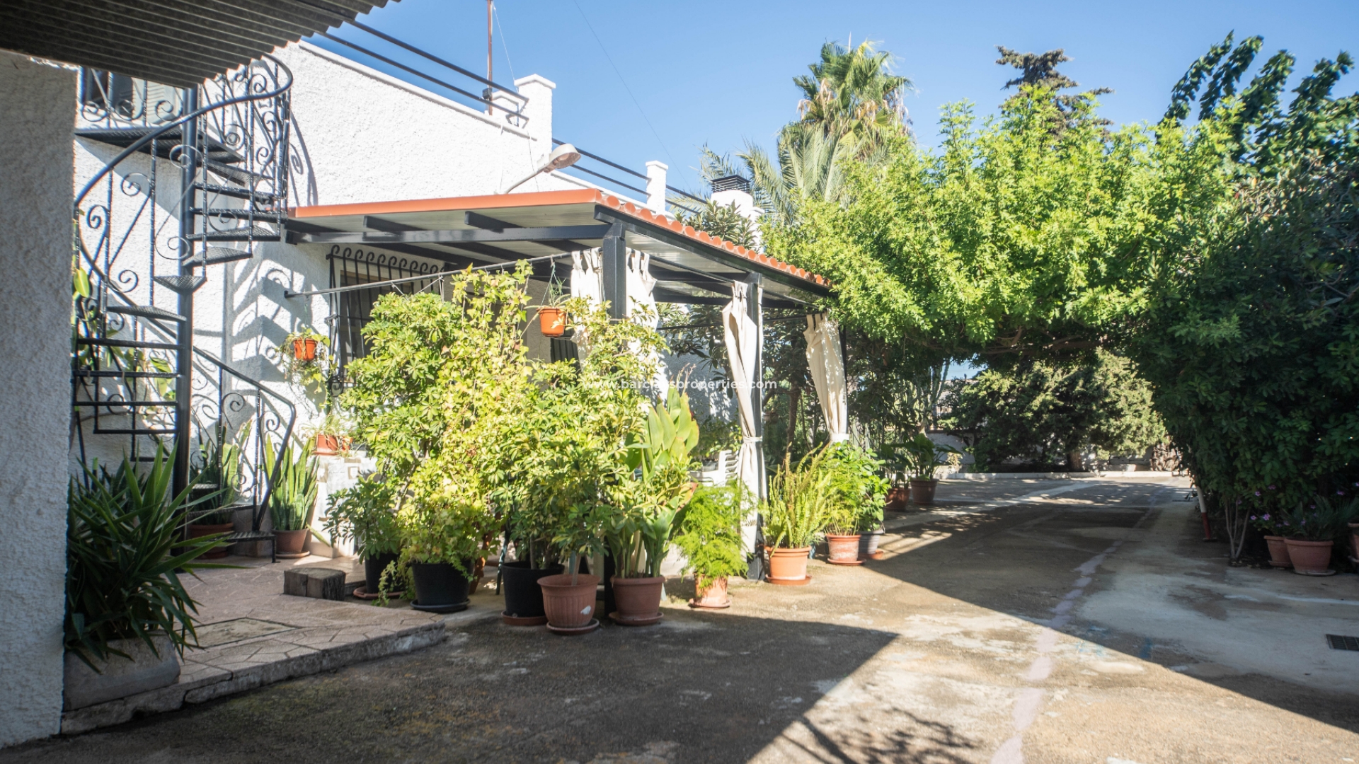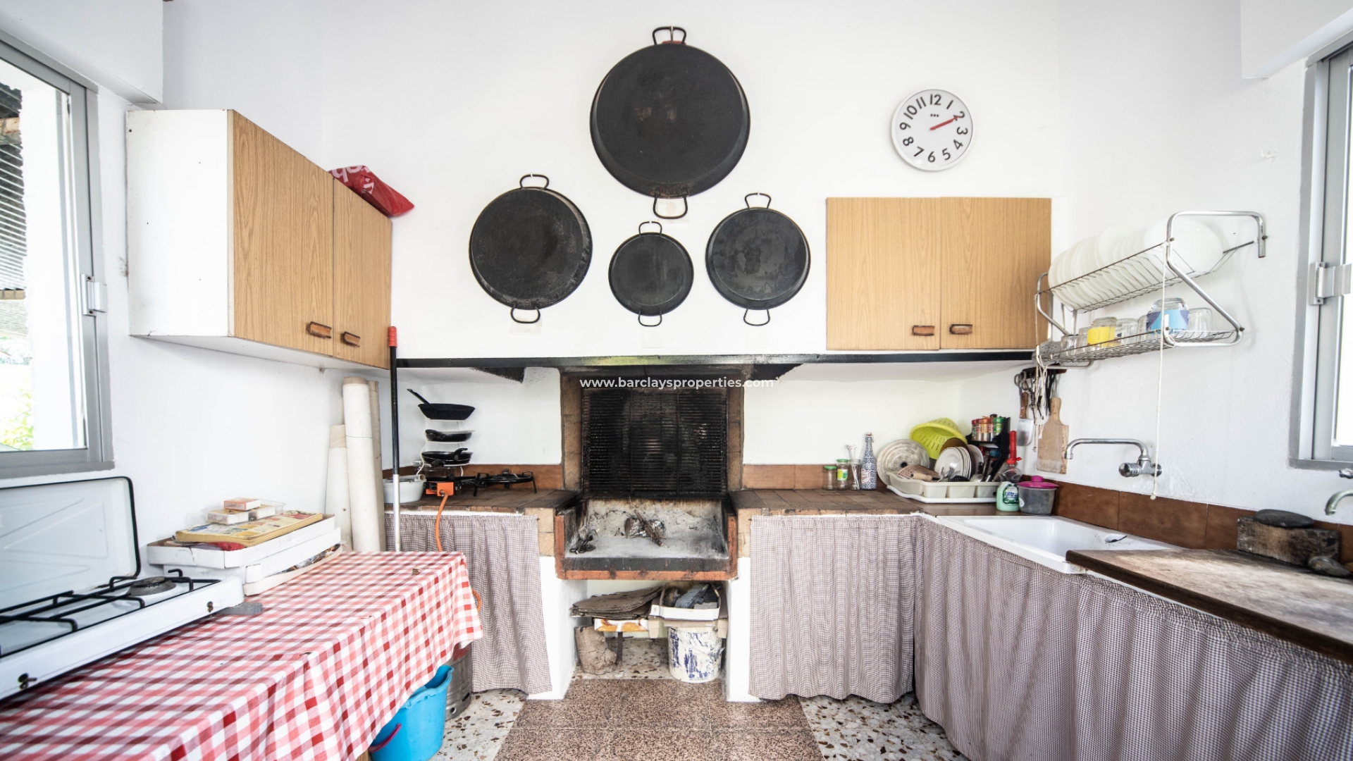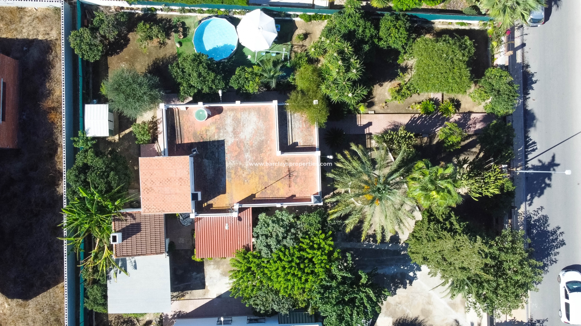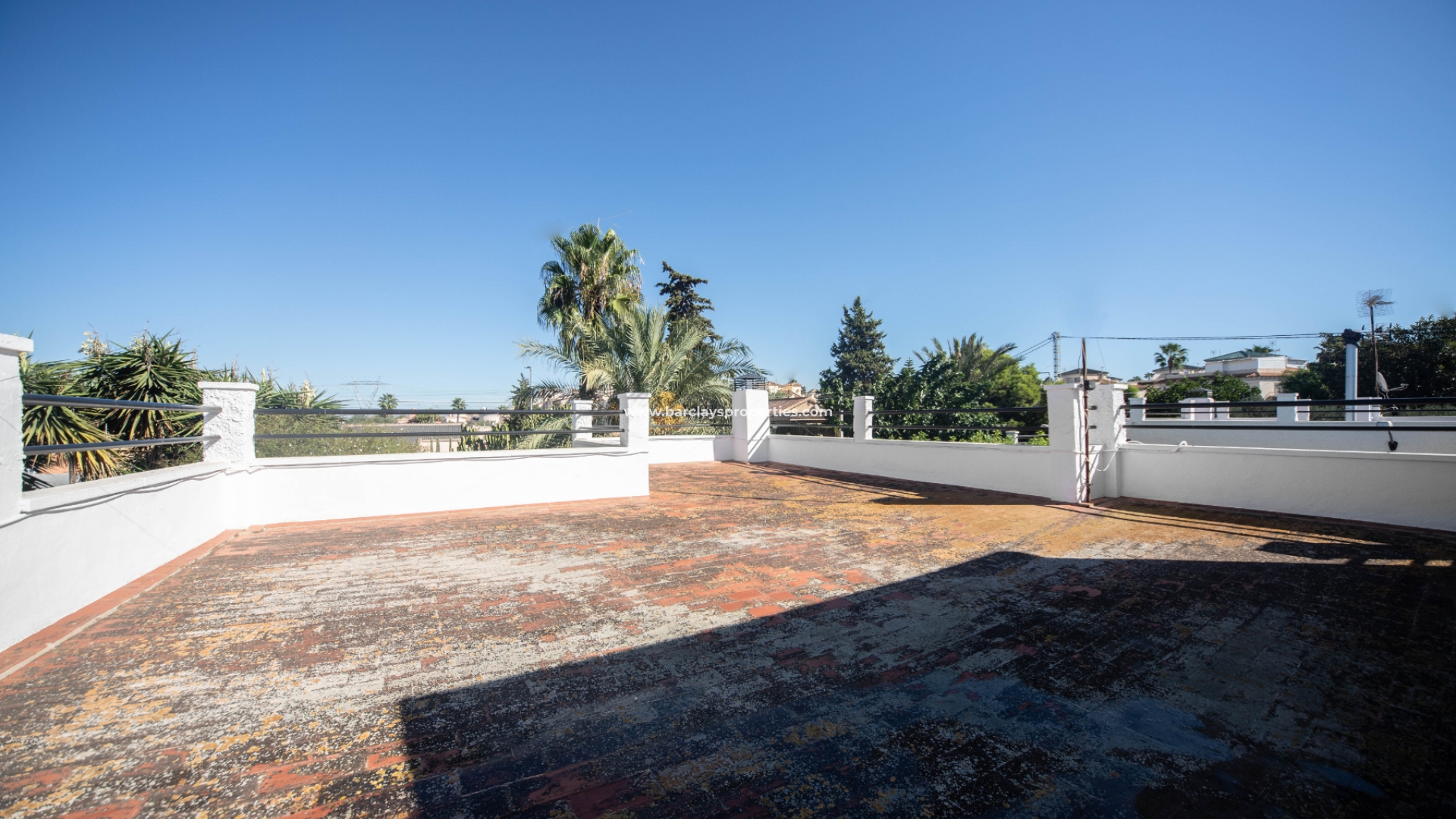 Het pand heeft een apart gebouw met een buitenkeuken en barbecue en vlakbij is er een wenteltrap die leidt naar een grote bergruimte die leidt naar het solarium op het dak met prachtig adembenemend uitzicht over de urbanisatie El Oasis en naar het platteland en de bergen.