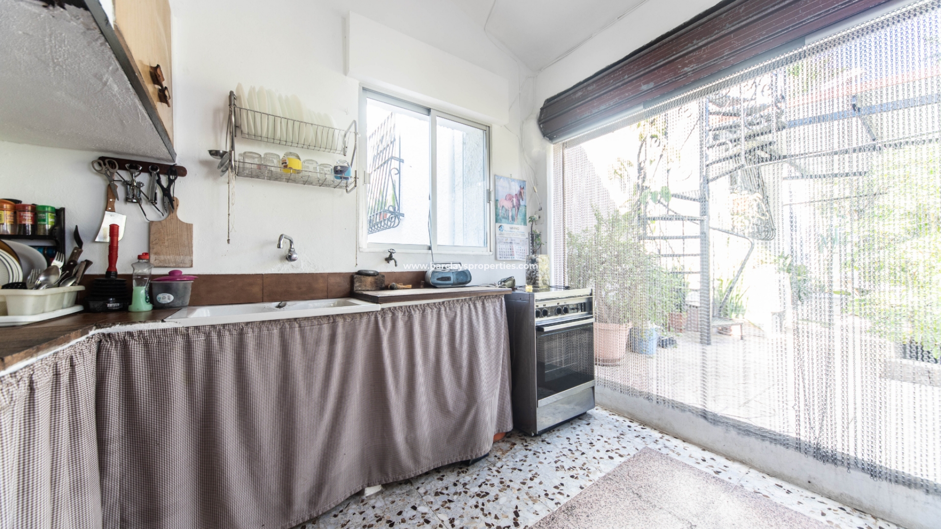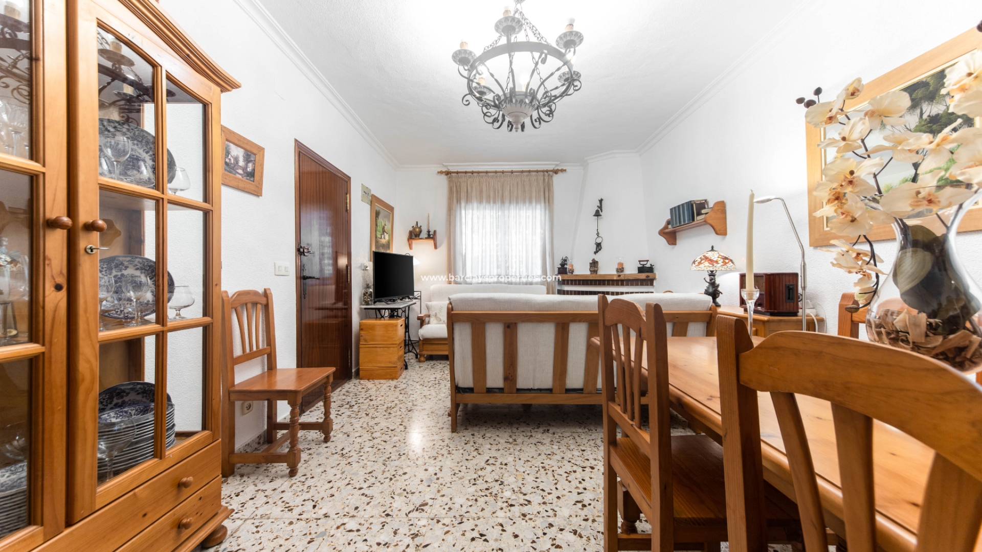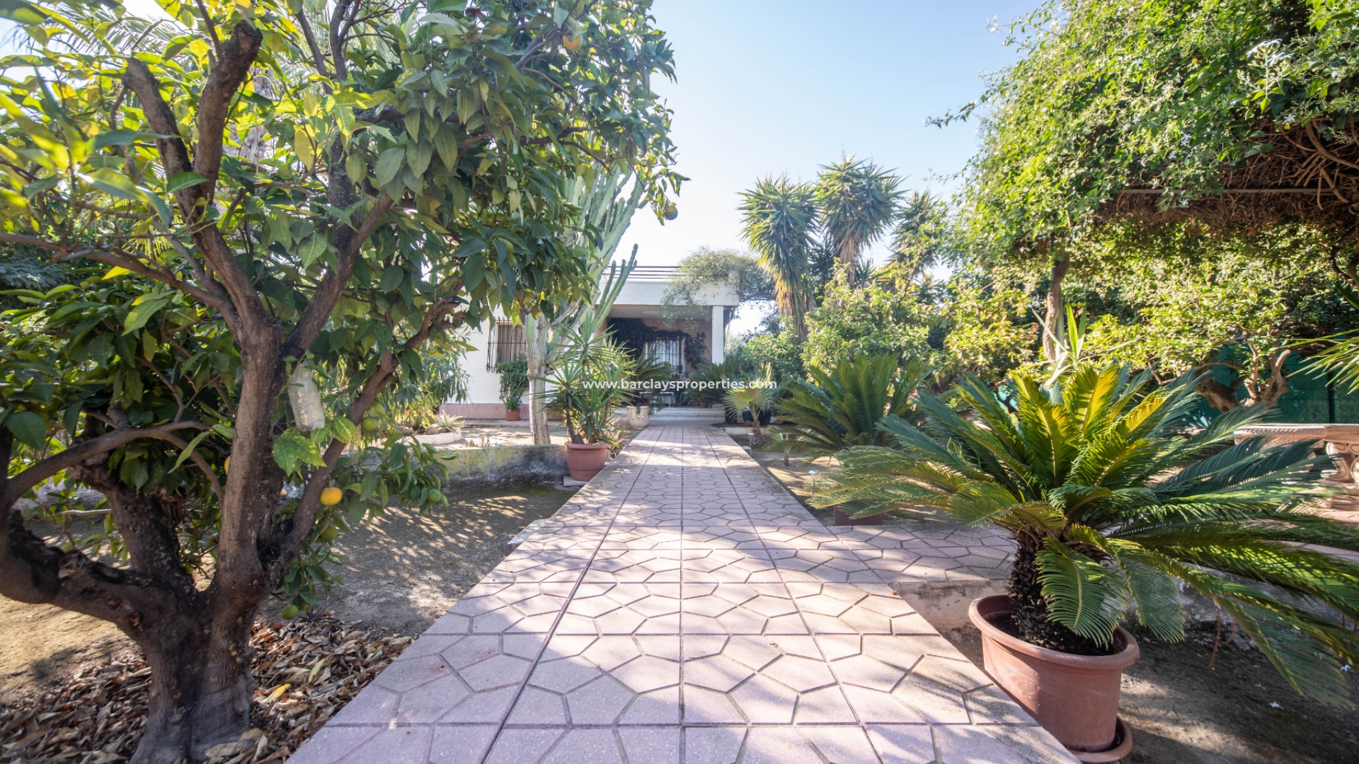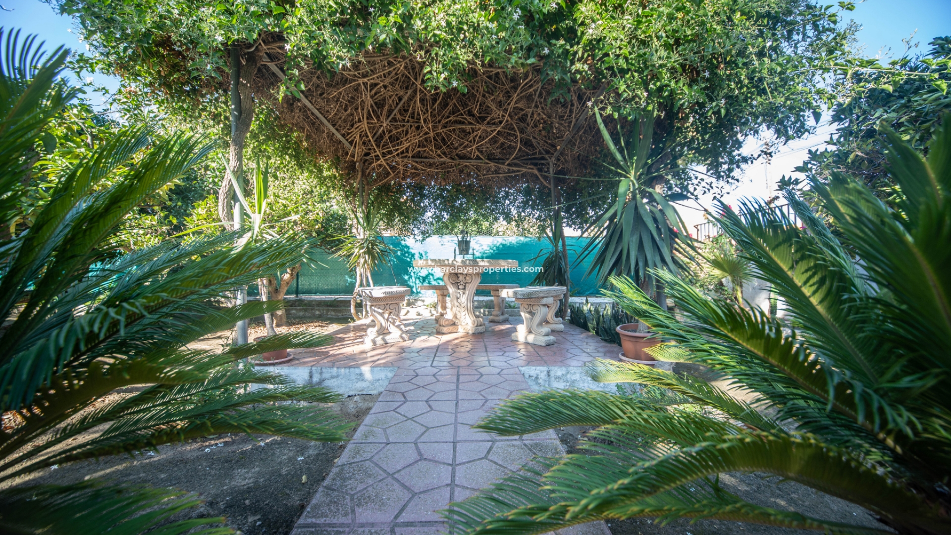 Gelegen op een rustige locatie in de urbanisatie El Oasis, San Fulgencio is deze vrijstaande woning in een 800m2, vlak perceel omgeven door veel groen met inbegrip van struiken, palmbomen en fruitbomen en planten waaronder citroenen en bananen het creëren van een weelderige tropische retraite met veel natuurlijke schaduwrijke gebieden om te ontspannen en te dineren.
