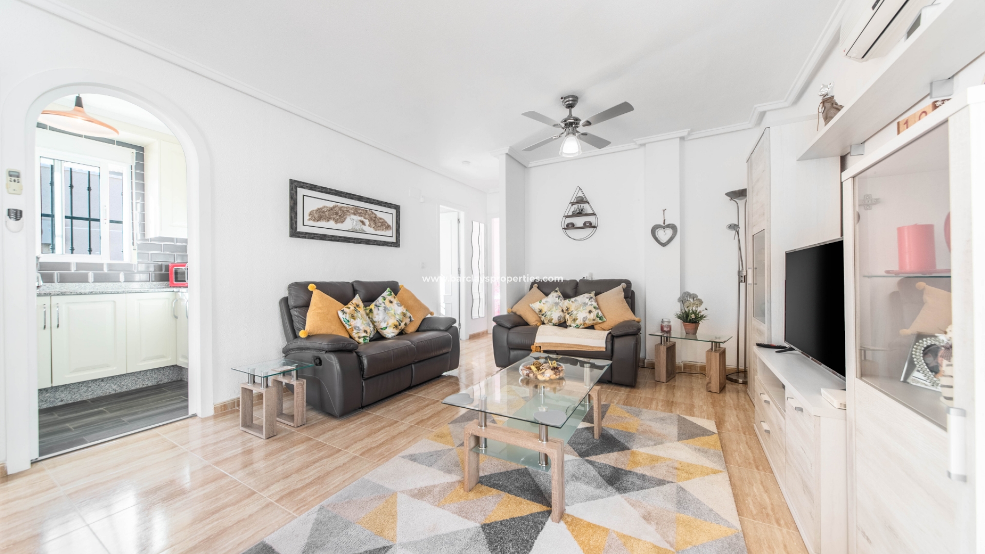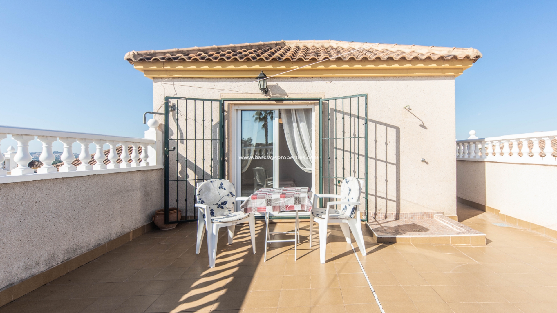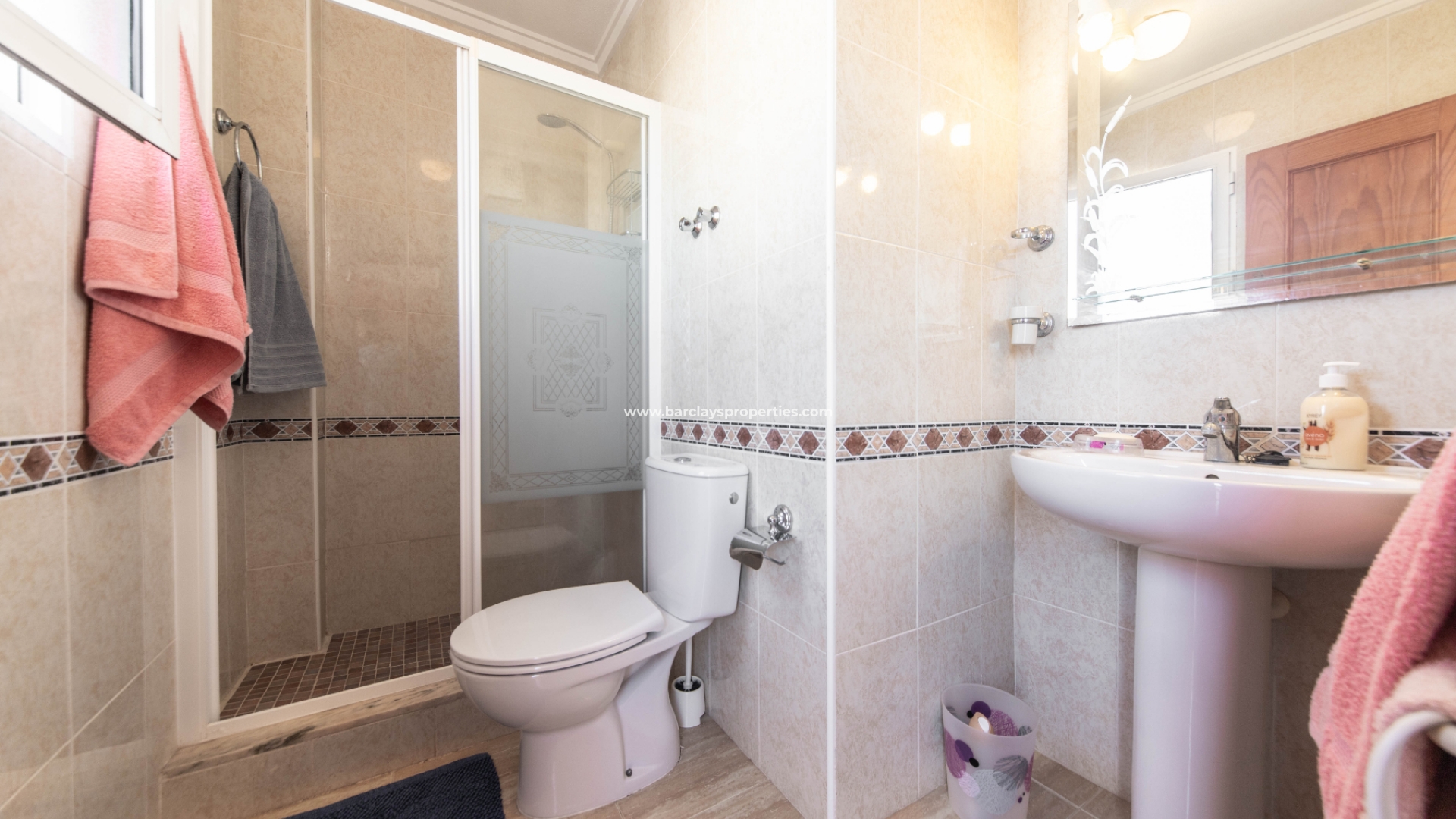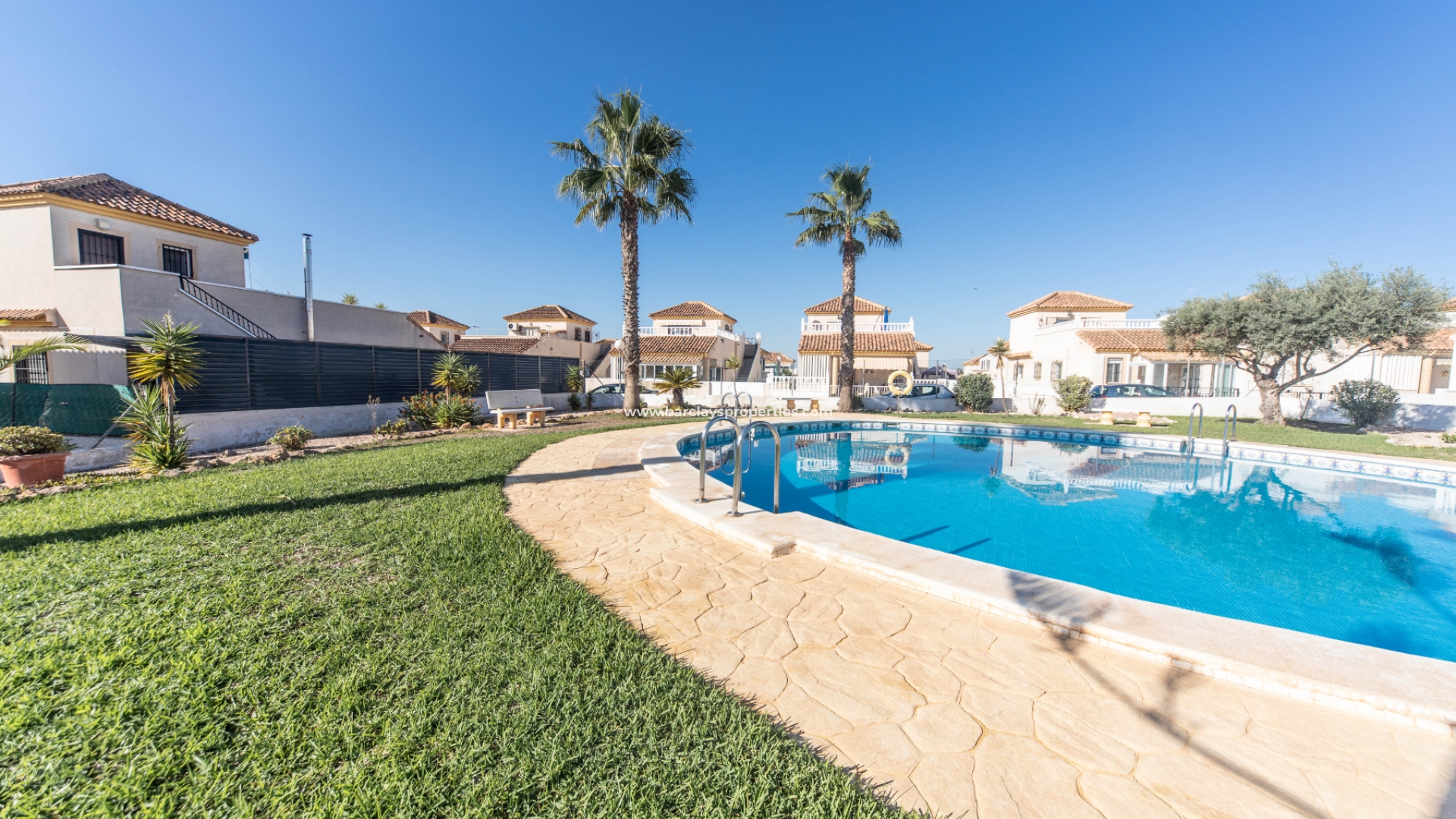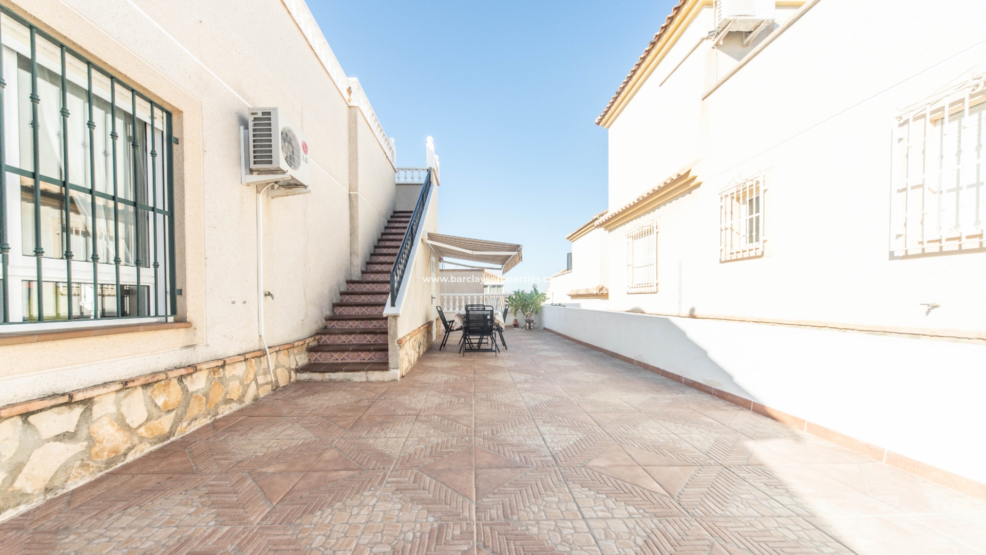 Introductie van deze fantastische vrijstaande woning, een model "Sierra Villas" te koop in de gewilde urbanisatie La Marina, provincie Alicante. De woning maakt deel uit van een besloten gemeenschap en ligt op slechts een steenworp afstand van het gemeenschappelijke zwembad en de tuinen. Bovendien biedt het een apart gastenverblijf met badkamer! Lokale voorzieningen zijn op 5 minuten loopafstand en het lokale sportveld op slechts een paar minuten afstand met tennis, voetbal, padel, outdoor gym en tafeltennis faciliteiten.