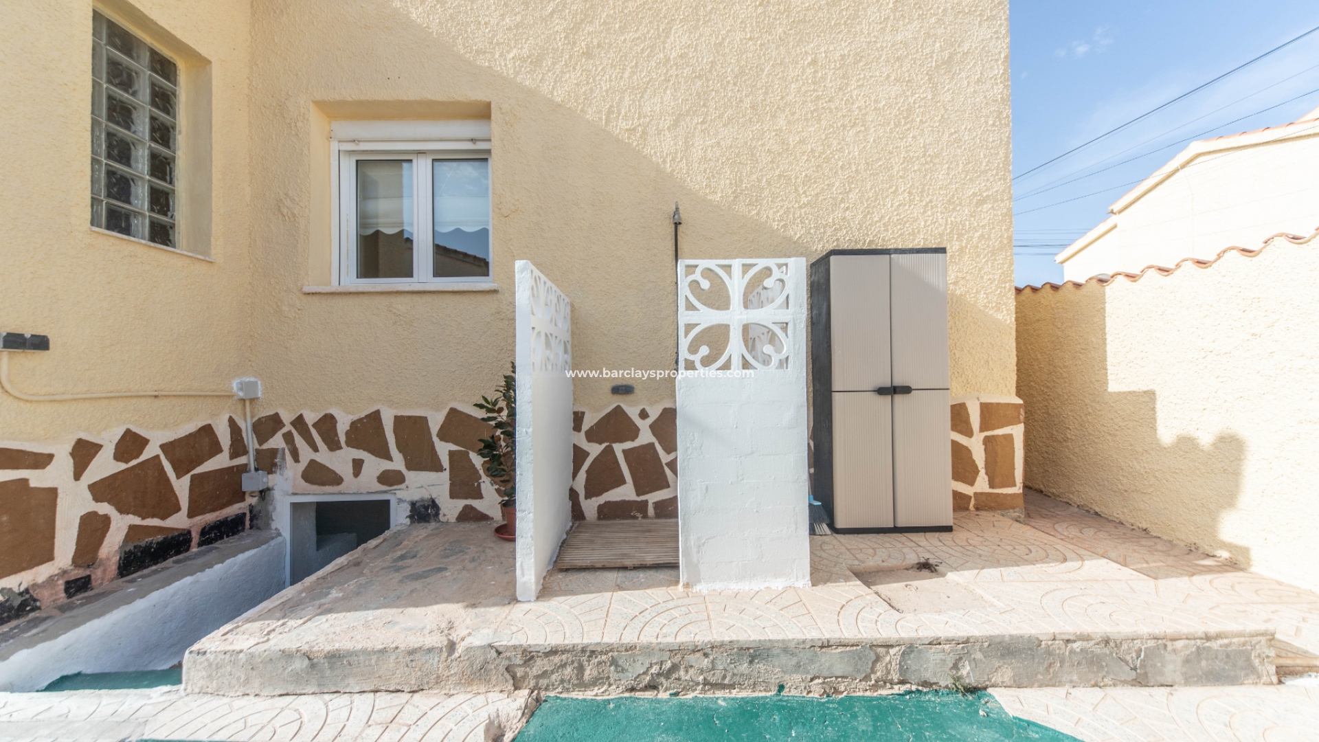Gelegen in een centraal deel van urbanisatie La Marina is deze vrijstaande villa, een model "Conchi" gelegen in een hoekperceel. De woning is slechts 5 minuten lopen naar voorzieningen en heeft de toegevoegde waarde van een grote onder-build opslag met elektriciteit.
