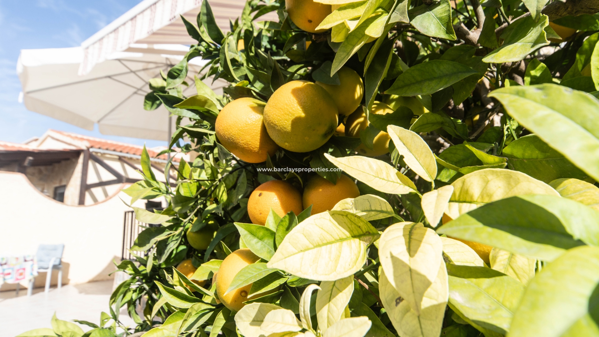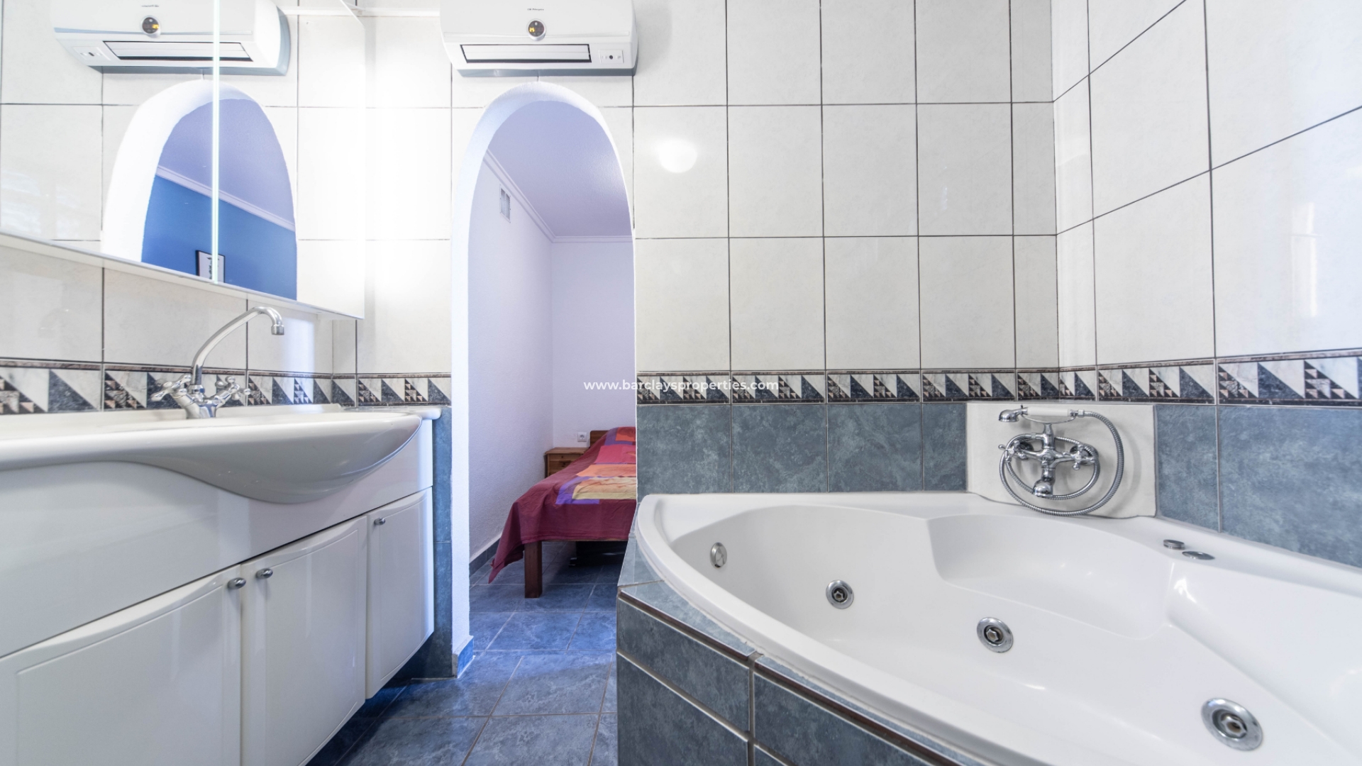 De keuken heeft toegang tot een grote bergruimte met deur naar de tuin, evenals toegang tot de derde slaapkamer met een grote en-suite badkamer met douche, airconditioning en een hoekjacuzzi. Een binnentrap leidt vanuit de berging naar het privé dakterras met zonnescherm, zitgedeelte buiten, buitendouche en dit gedeelte biedt uitzicht op het platteland en de bergen.