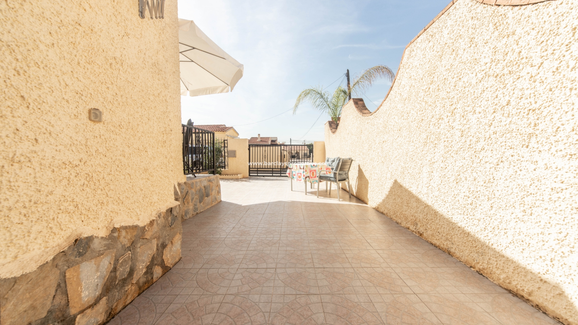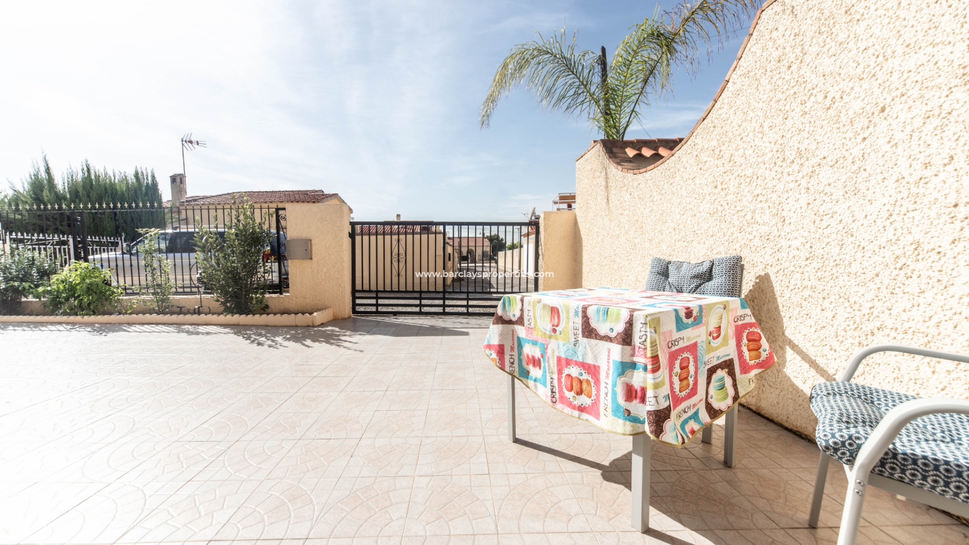 Te koop is deze ruime uitgebreide woning, een model "Lola" gelegen op slechts 5 minuten lopen van alle voorzieningen in de urbanisatie La Marina, San Fulgencio. De woning bevindt zich op een centrale locatie maar is gelegen in een rustige cul-de-sac en door de ligging op het zuiden profiteert u de hele dag van de zon.
