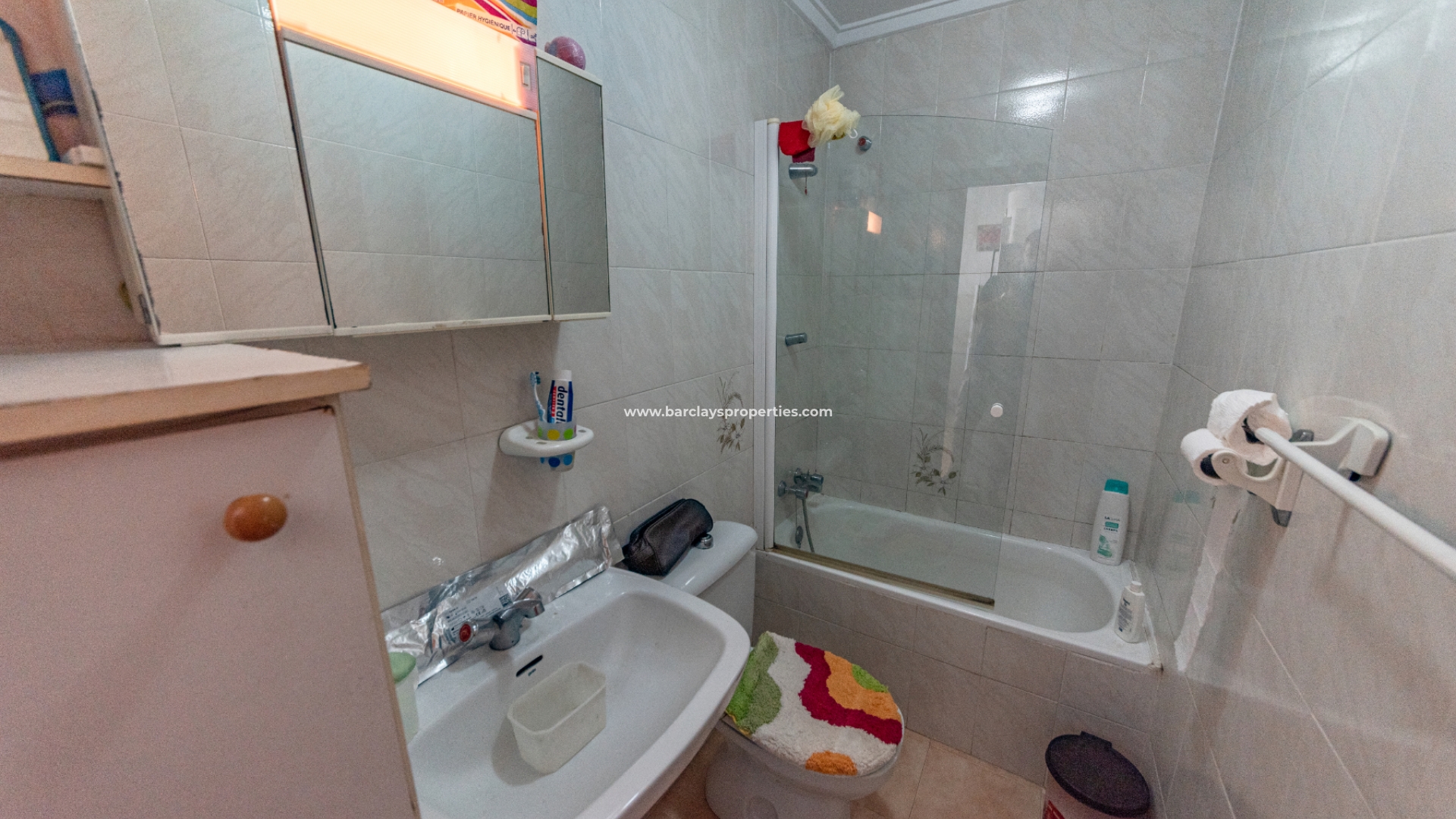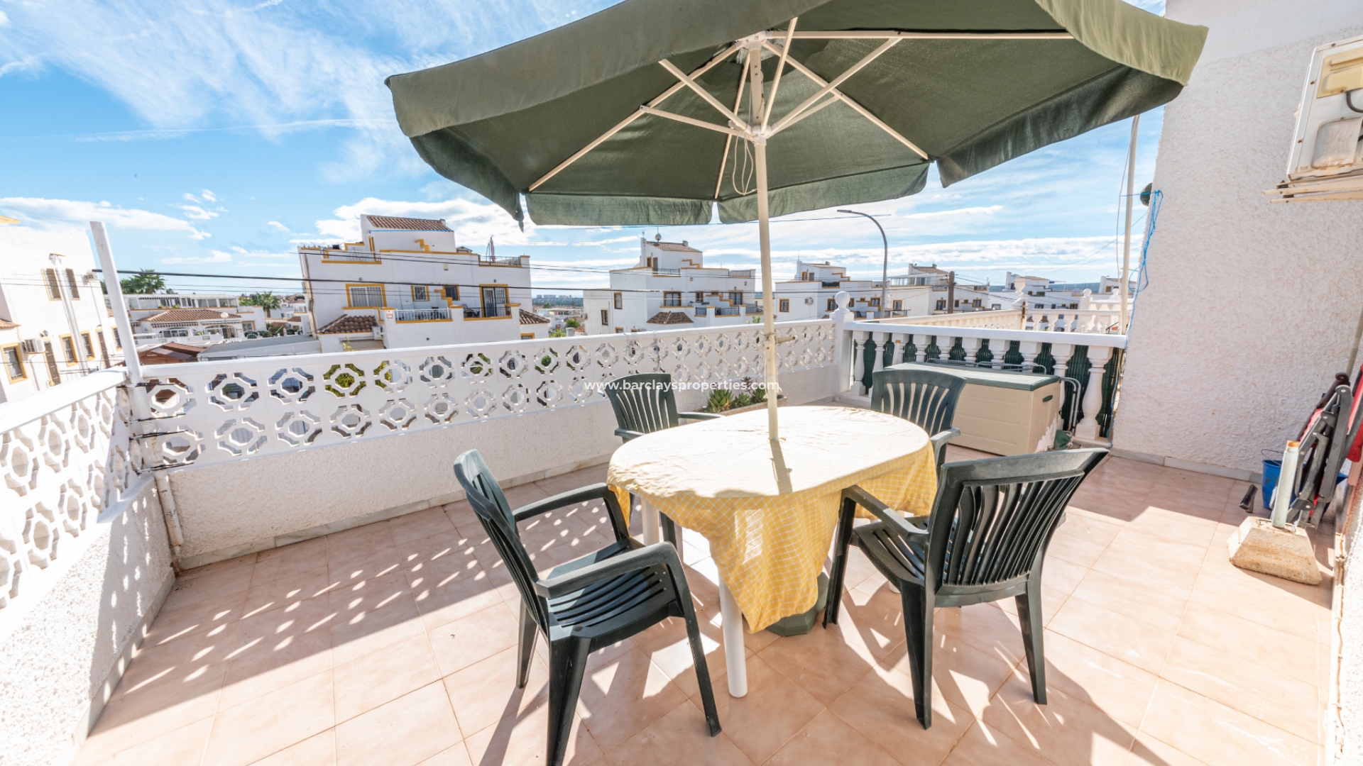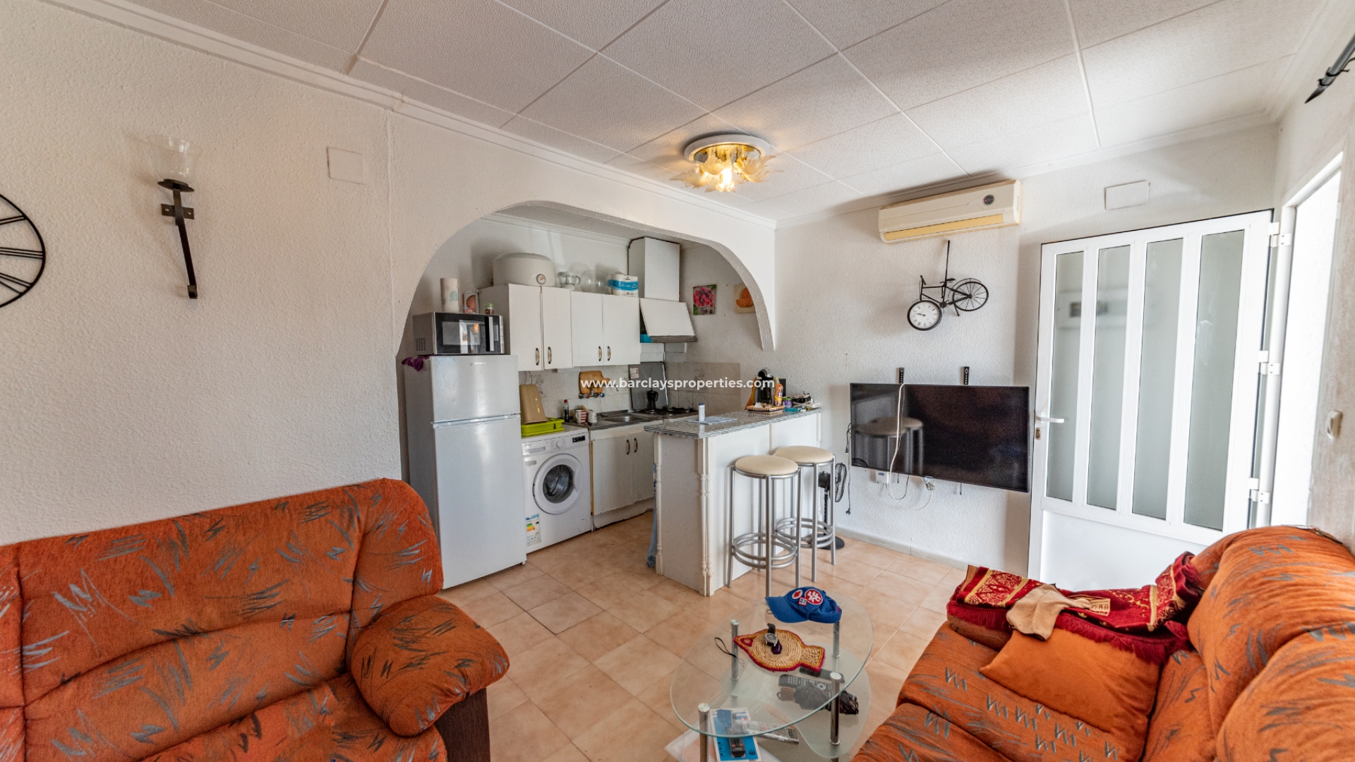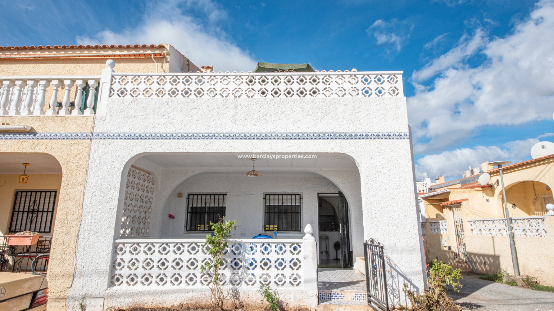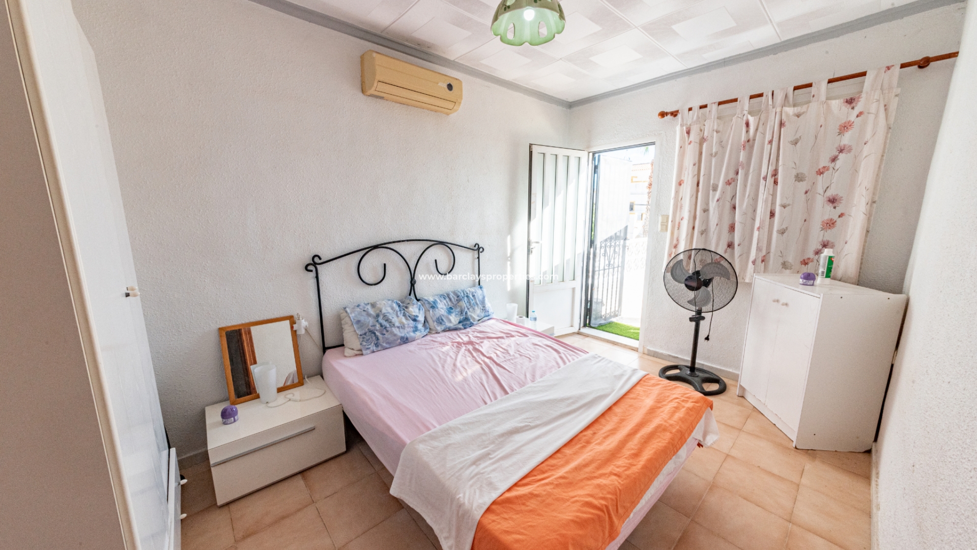 Een ruim overdekt zonneterras begroet ons wanneer we aankomen bij deze schilderachtige hoekwoning. Bij binnenkomst vinden we een woon/eetkamer met een open keuken. Er is een airconditioning unit om lekker koel te blijven op een warme zomerdag. Op dezelfde verdieping vinden we een volledig ingerichte badkamer en een kleine trap die ons naar de tweede verdieping leidt waar we een eenpersoonskamer en een tweepersoonskamer vinden, beide met hun eigen airconditioning. De grote slaapkamer heeft ook een eigen zonneterras met een mooi uitzicht op Guardamar en het platteland, waar men kan ontspannen en zonnebaden onder de Spaanse zon.