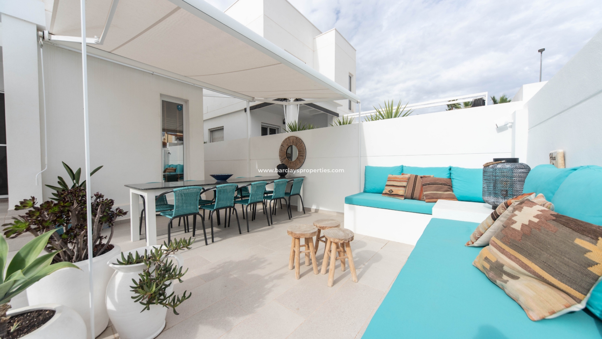 Introductie van deze fantastische nieuwbouw stijl vrijstaande woning met toegang tot een gemeenschappelijk zwembad in urbanisatie La Marina. De woning is gelegen in een gemeenschap van 21 woningen op slechts 10 minuten lopen naar alle voorzieningen.