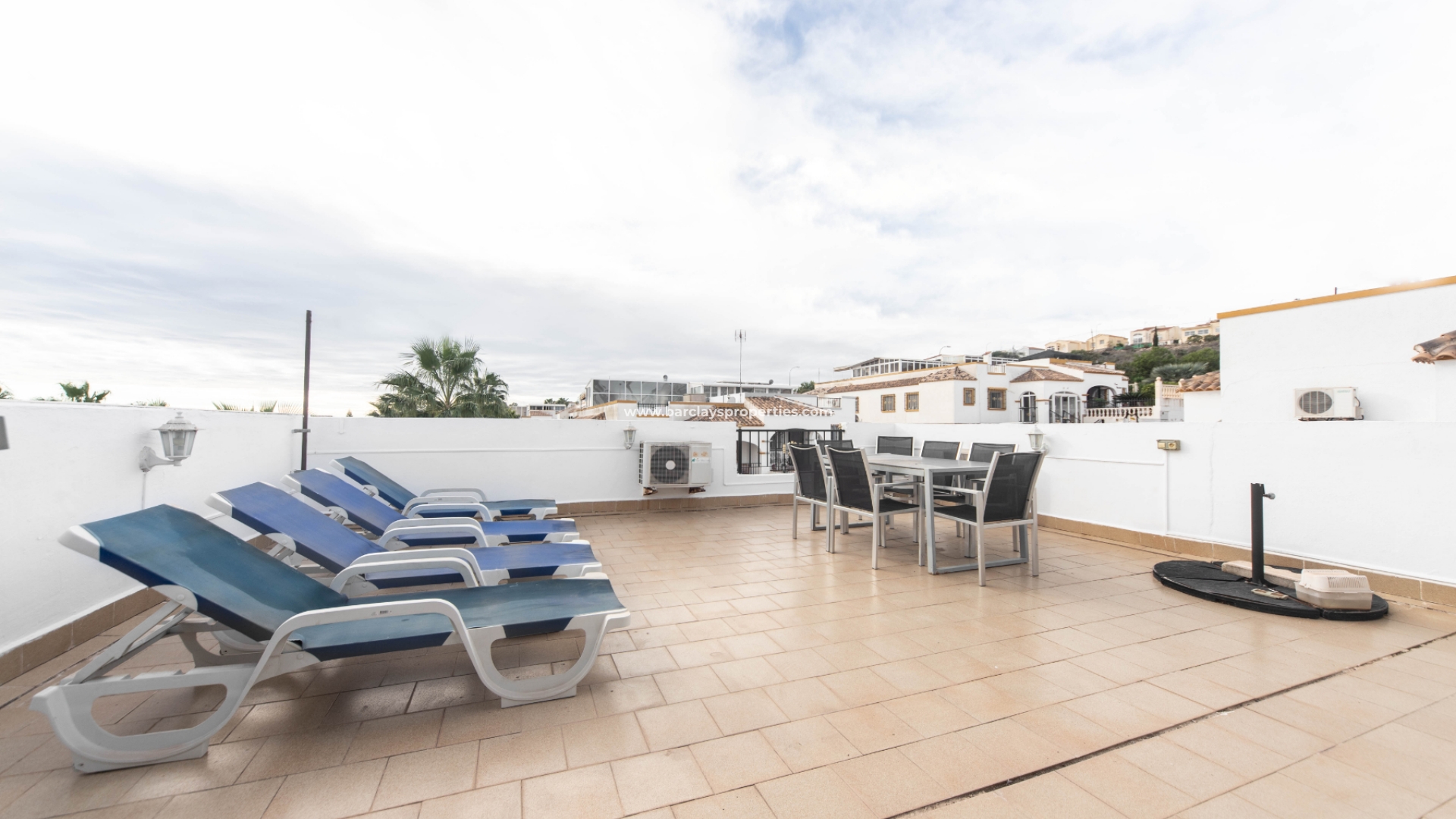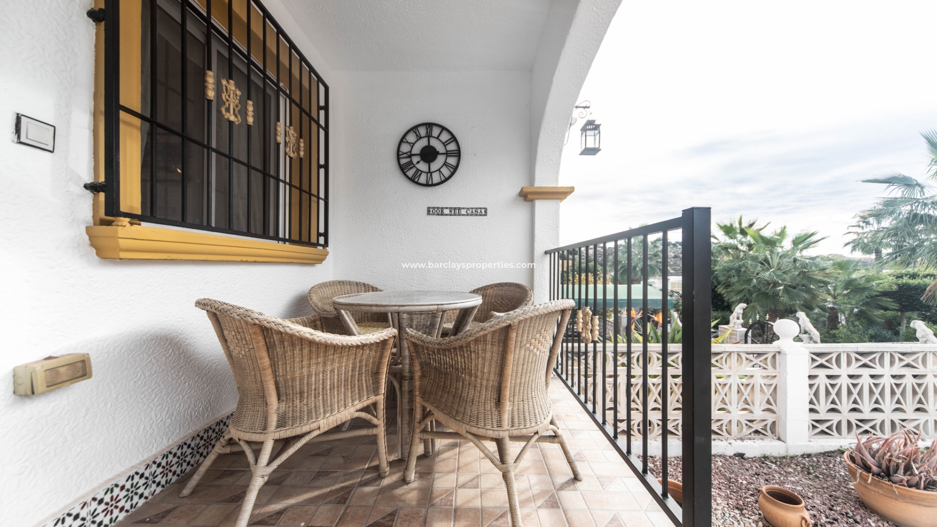 Gelegen in het hart van deze particuliere gemeenschap is deze mooie quad woning, een model "Julia" gelegen direct tegenover een mooie gemeenschappelijke tuin, tussen de twee gemakkelijk toegankelijke gemeenschappelijke zwembaden en tuinen en op slechts 10 minuten lopen naar voorzieningen, supermarkten en een grote selectie van bars en restaurants.