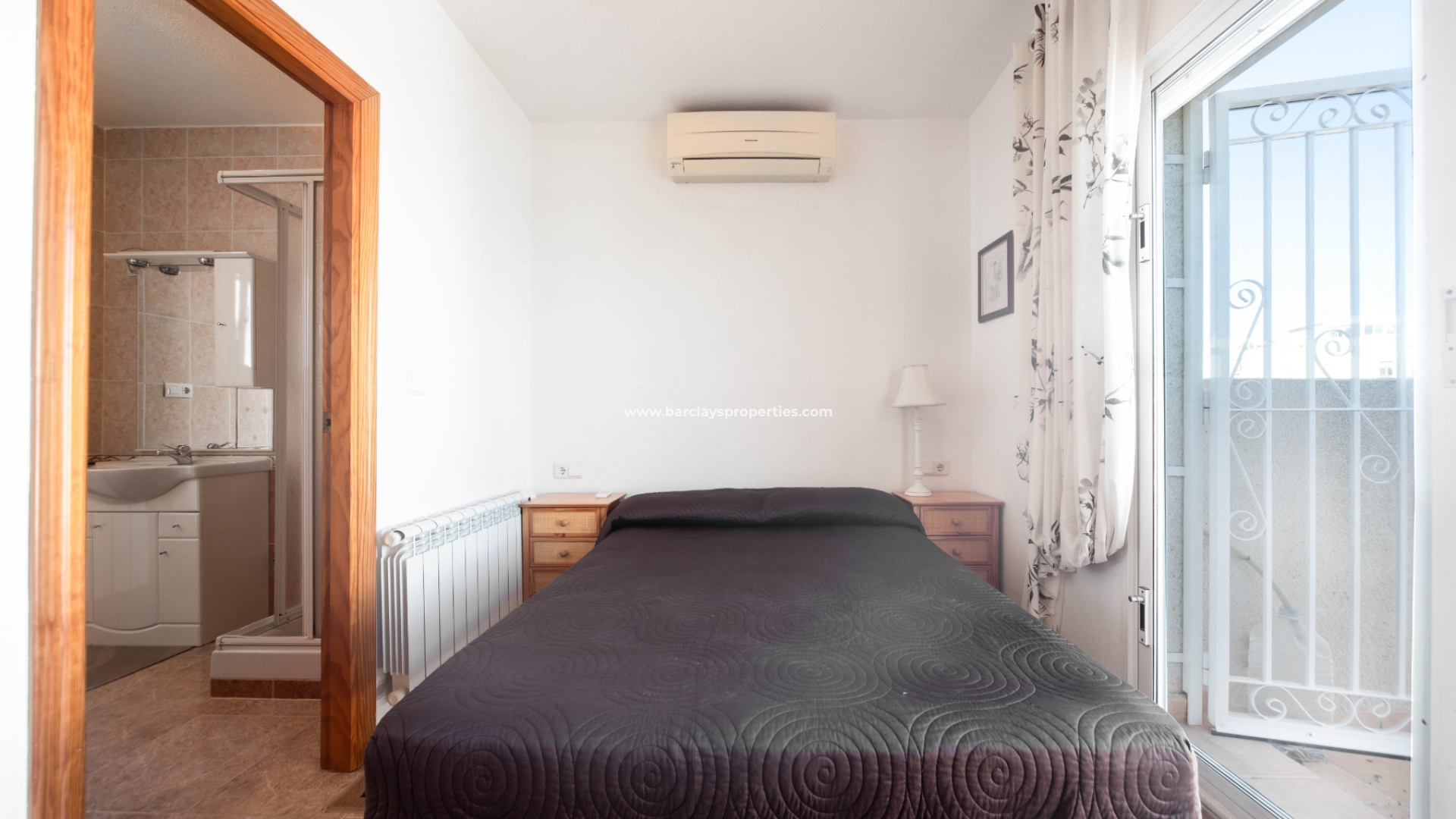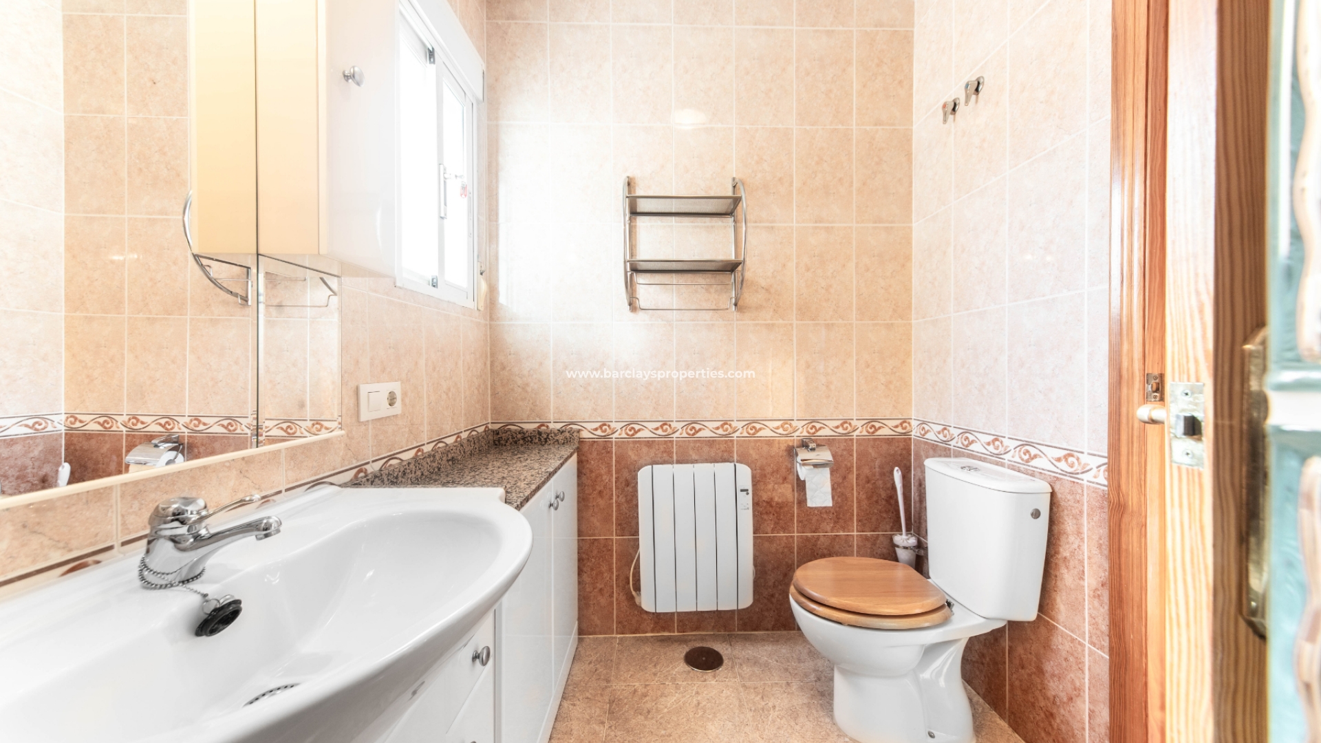 Een marmeren trap leidt naar de eerste verdieping waar we een derde tweepersoonsslaapkamer vinden (de master) met airconditioning, een en-suite badkamer met hoekdouche - deze slaapkamer heeft zijn eigen zonneterras met prachtig uitzicht op de bergen en het platteland.