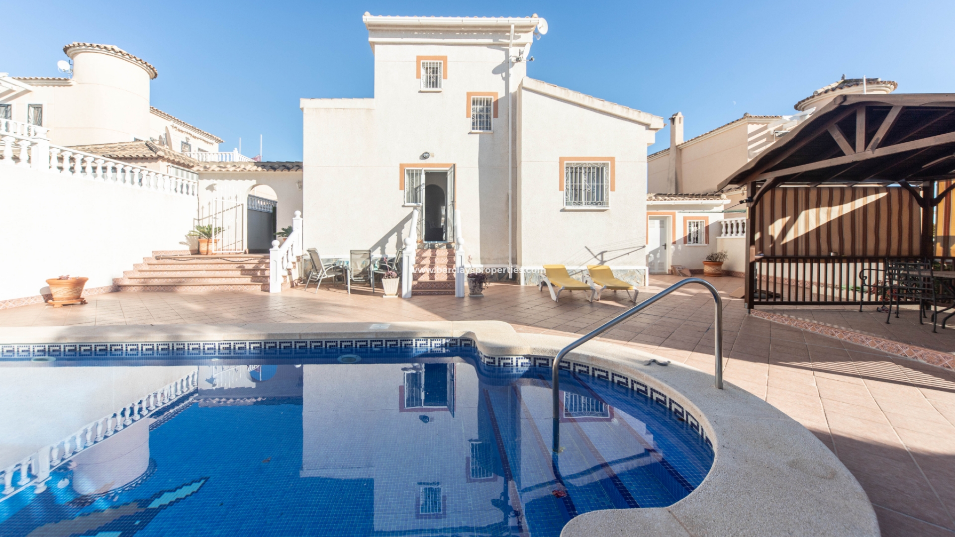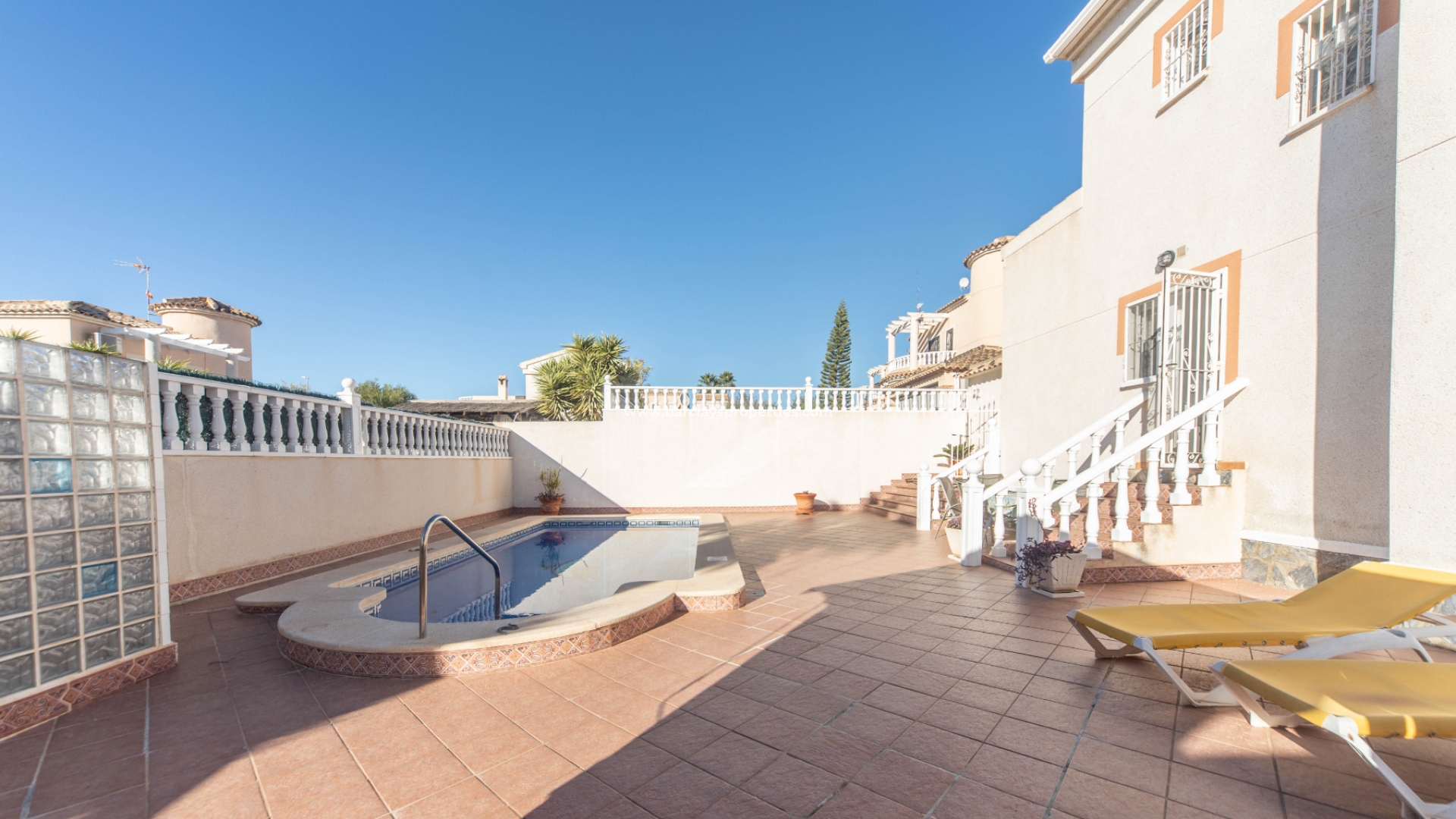 Met trots presenteren wij u deze prachtige vrijstaande villa, model "Dama Blanca" gelegen in La Marina urbanisatie in de provincie Alicante op slechts een paar minuten lopen naar de populaire "Consum Square" commerciële zone met winkels, supermarkten en een scala aan bars, cafés en restaurants.
