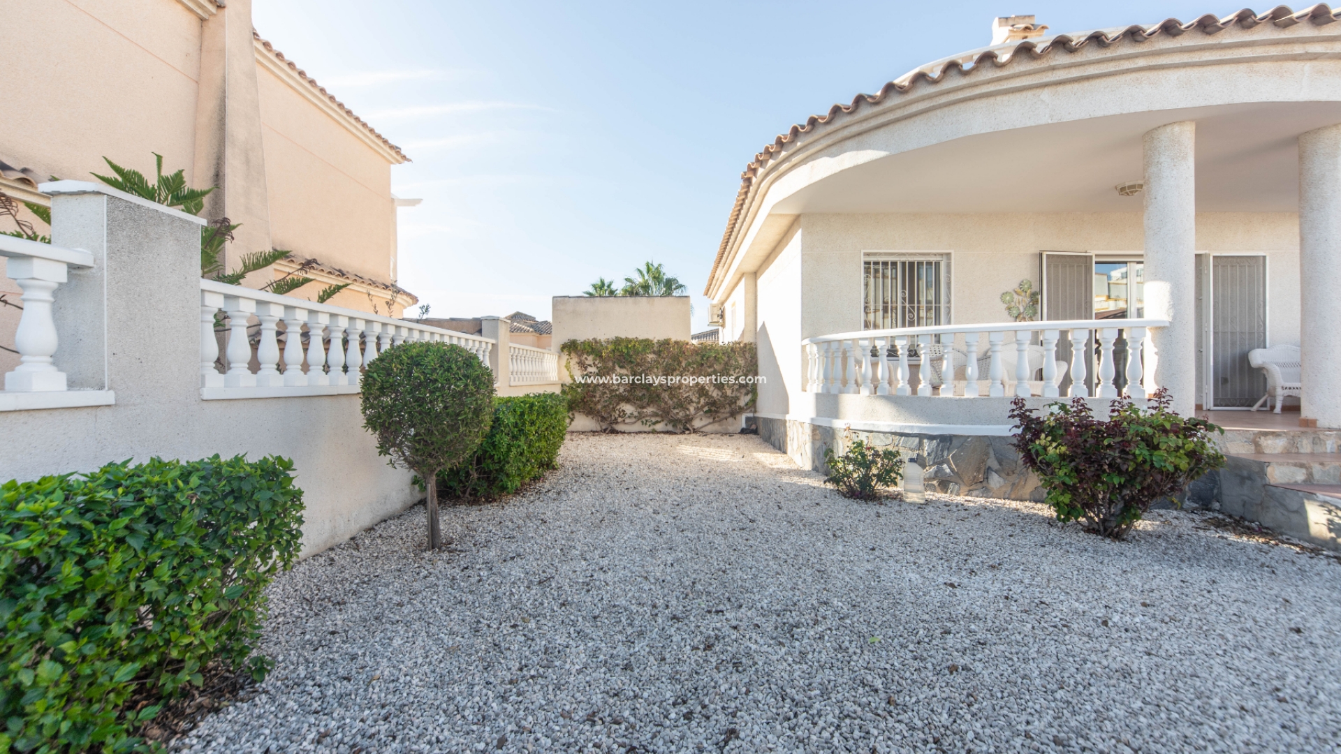 De op het oosten gelegen woning is gelegen in een grote, vlakke tuin van 516m2 die is bestraat en met grind omgeven door hoge muren met gote gran en balaustrade ontwerp biedt off-road parking met carport aan de voorzijde van het pand en een fantastisch 8 x 4 prive zwembad aan de achterzijde met buitendouche, een gazebo en exterieur eethoek met plafond ventilator, zit-en zonnebaden gebieden en een berging is gevonden in de buurt.