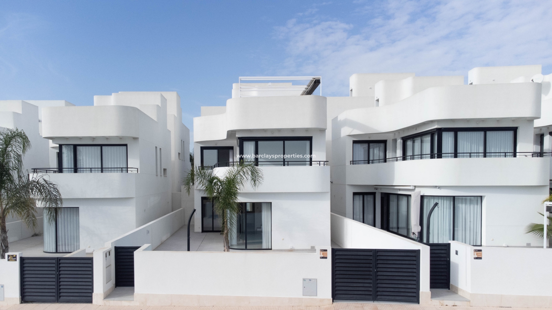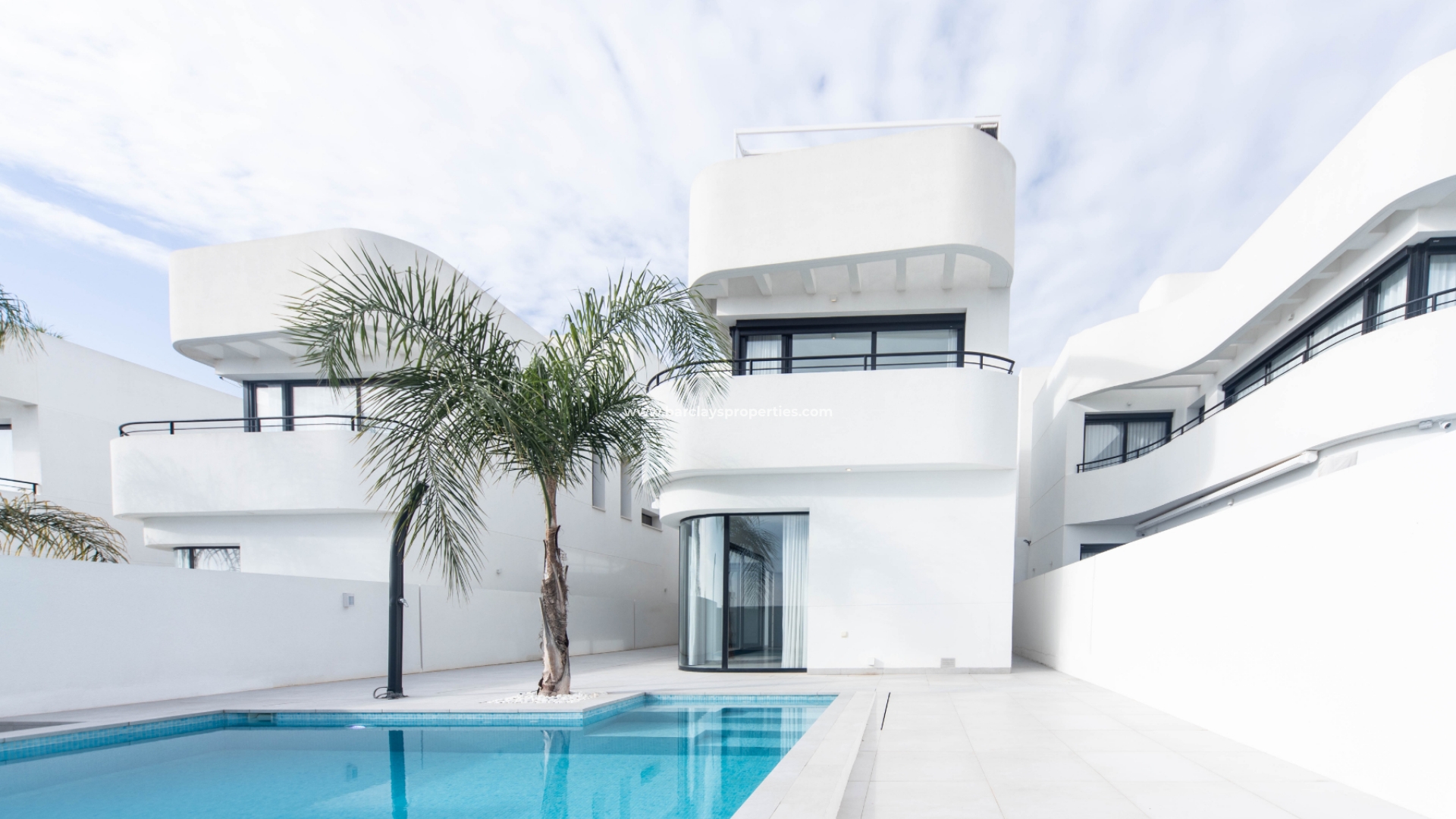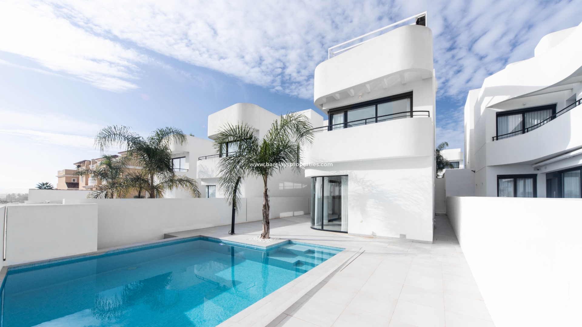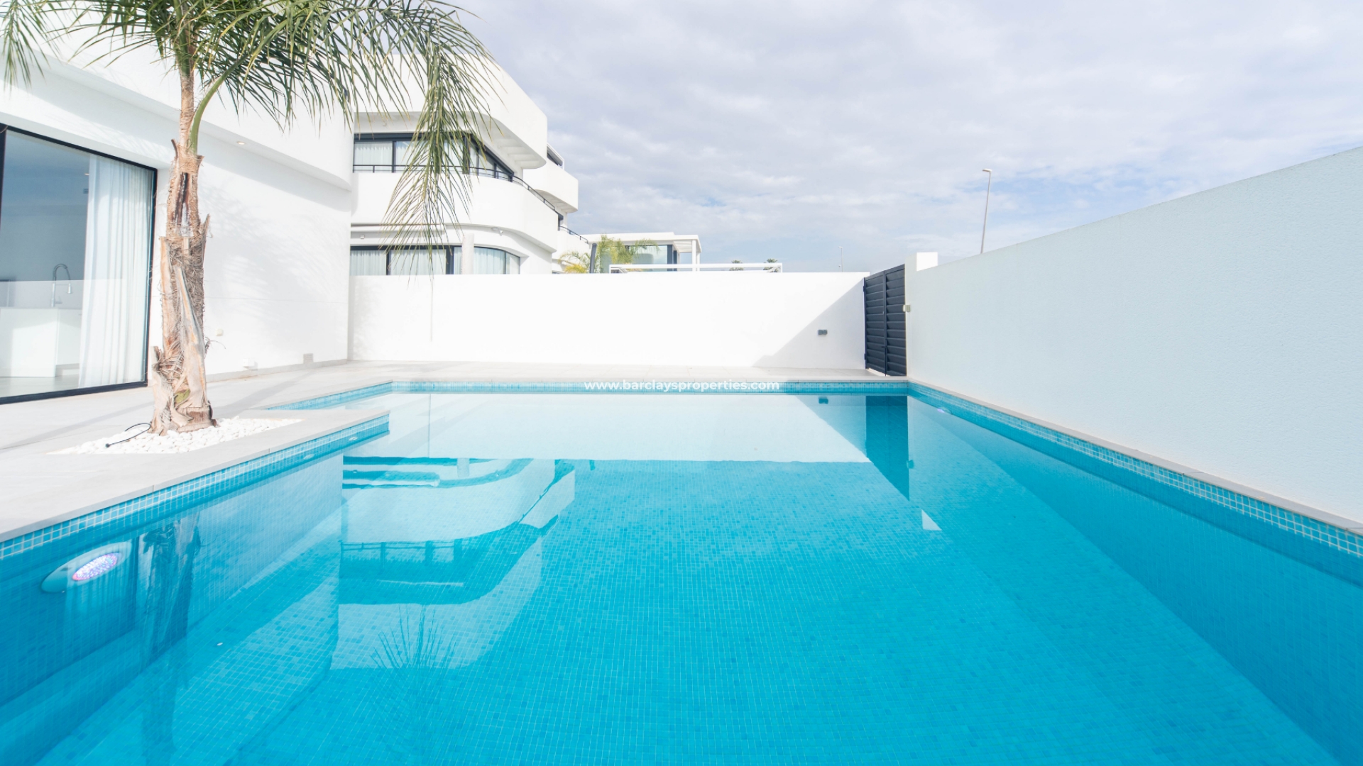 We introduceren deze prachtige moderne vrijstaande villa, een model "Nimbus" met een fantastisch 4.5 x 6 privé zwembad met zout water in de urbanisatie La Marina, San Fulgencio. De villa is gelegen op een ruim perceel van 204 m2 en biedt parkeergelegenheid en een prachtig betegelde, onderhoudsvriendelijke tuin met veel ruimte om te zitten, te dineren en in het algemeen te genieten van het buitenleven aan de Costa Blanca.