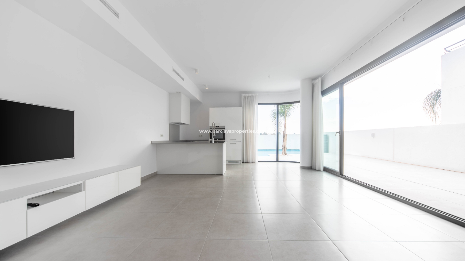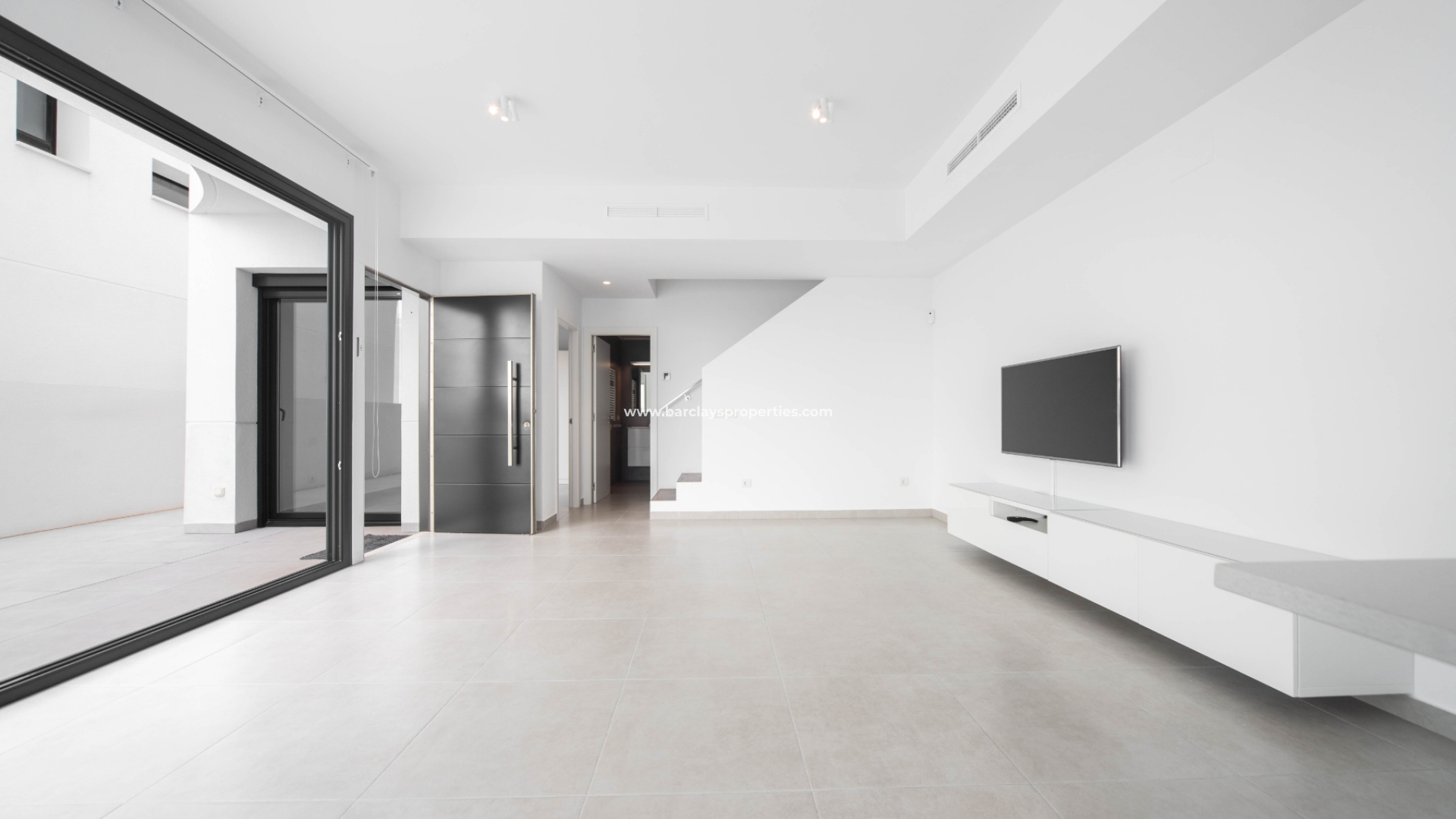 Deze woning heeft vele speciale functies, zoals geïntegreerde airconditioning (warm en koud) in de gehele woning met individuele bediening in elke kamer, buiten en binnen veiligheidsalarmsysteem, elektrische zonneschermen, elektrische zonneschermen, veranderende gekleurde zwembadverlichting met afstandsbediening etc etc en wordt gedeeltelijk gemeubileerd aangeboden met witgoed van hoge kwaliteit. Dit is een fantastische kans om een nieuwbouwwoning in La Marina te kopen.