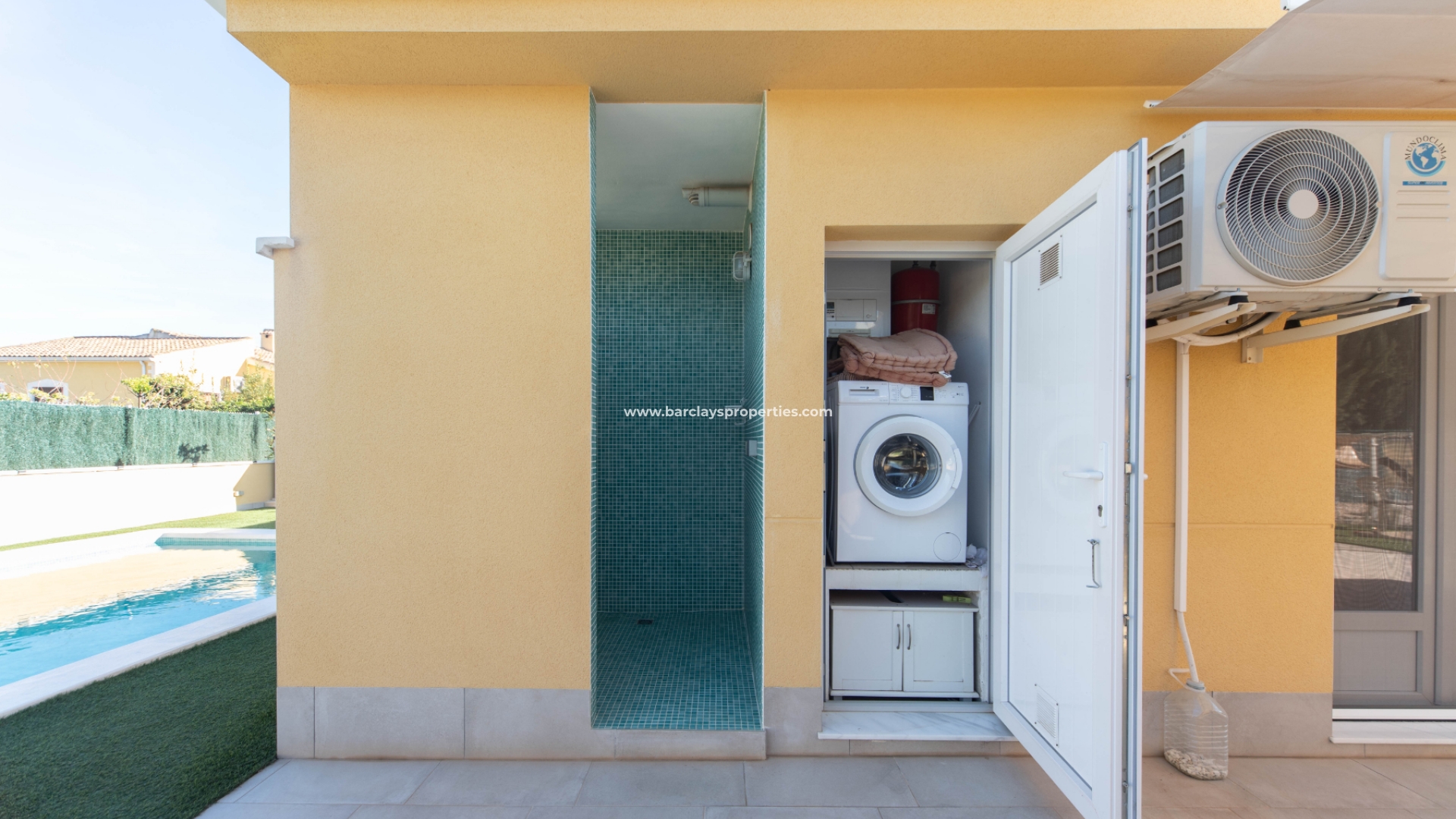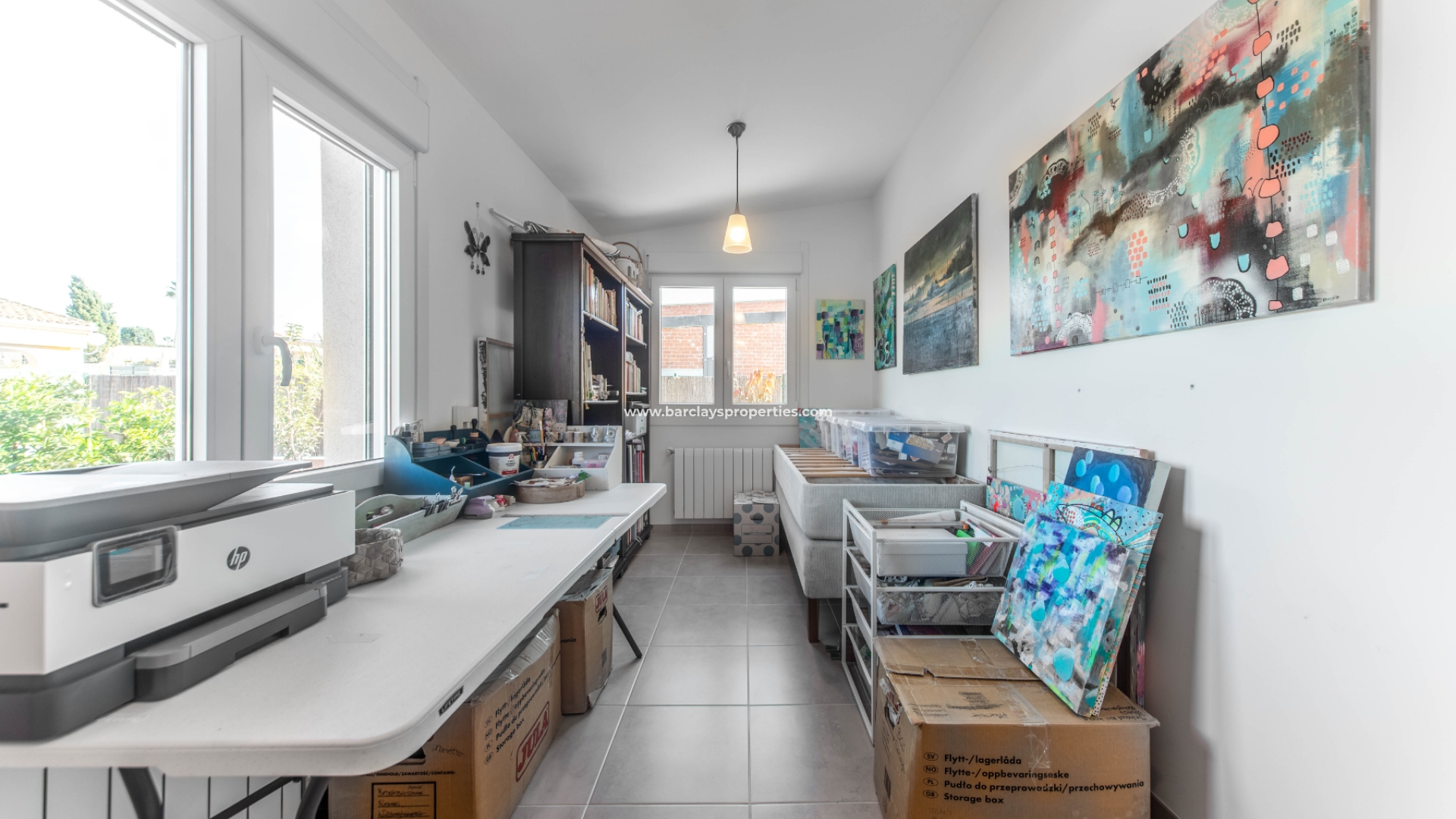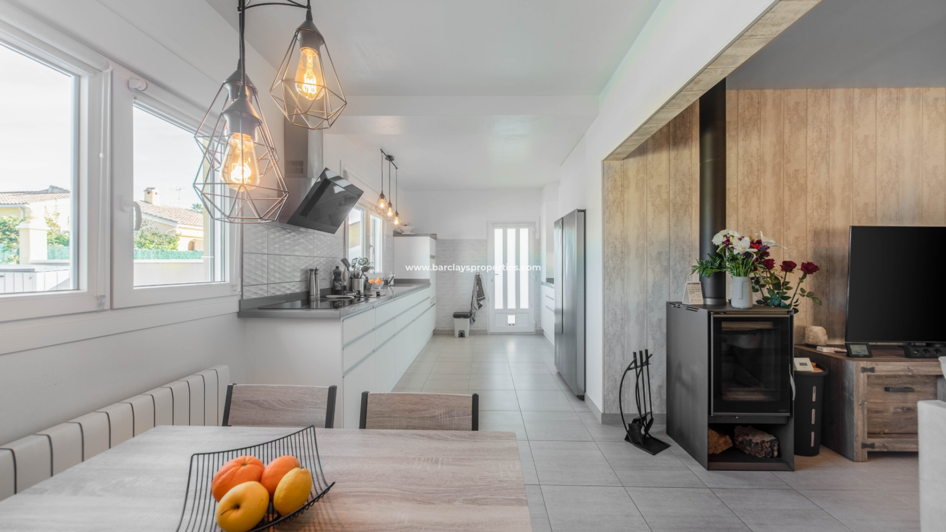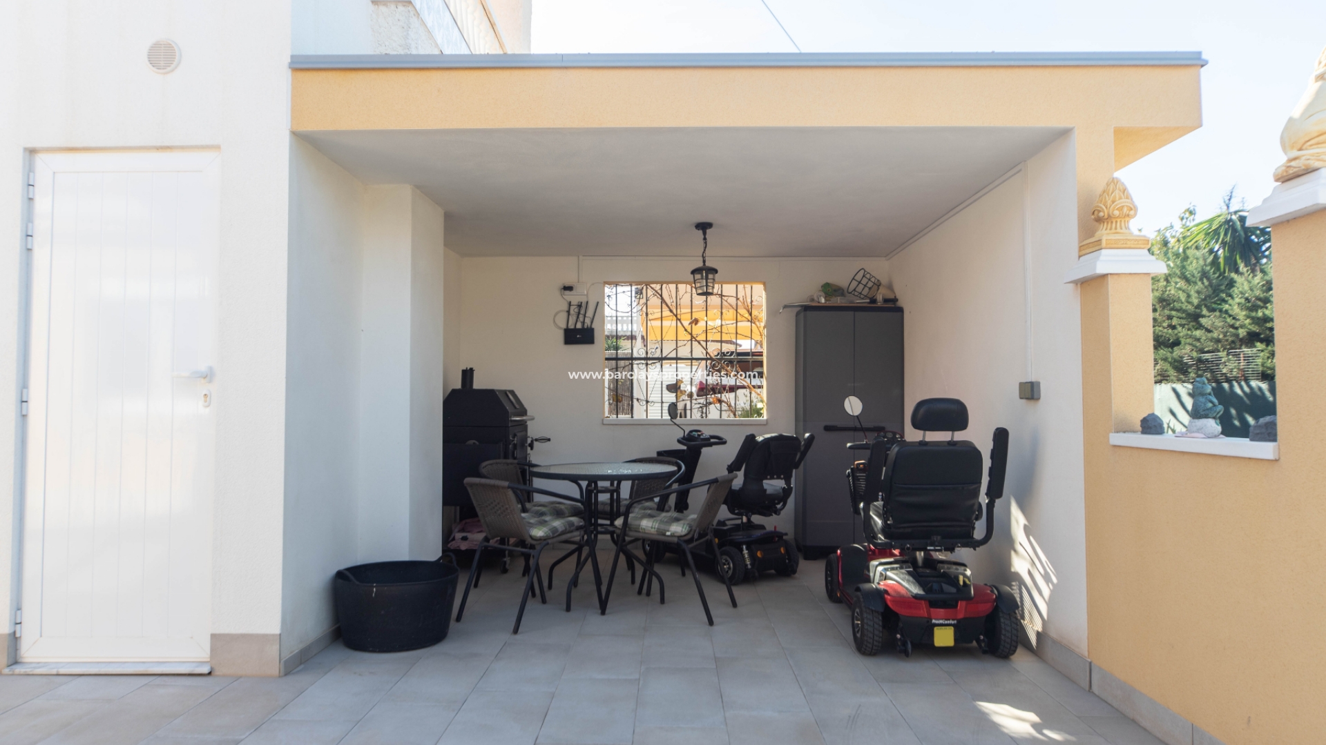 Deze villa met een grote overdekte voorporch met zithoek en plafondventilator leidt naar het interieur van het pand met een grote open woonkamer / moderne keuken met split-level oven en kookplaat / eethoek, deze ruimte heeft veel ramen waardoor een overvloed aan licht het pand binnenkomt en wordt verwarmd en gekoeld met airconditioning en een plafondventilator. Dicht bij de woonkamer ligt een tweepersoonsslaapkamer met inbouwkasten, airconditioning, een plafondventilator en een en-suite moderne badkamer met badmeubel met LED-verlichting en een hoekdouche. Aan het einde van de gang is nog een slaapkamer met inbouwkasten en daarnaast een familiebadkamer met hoekdouche. Deze villa is voorzien van centrale verwarming op gas en wordt gedeeltelijk gemeubileerd aangeboden.