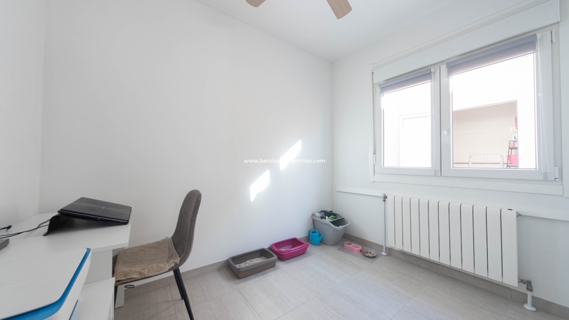 Vanuit de hal vinden we een tweede tweepersoons slaapkamer met inbouwkasten en plafondventilator, een derde tweepersoons slaapkamer die momenteel wordt gebruikt als studeerkamer en een badkamer met hoekdouche. Deze prachtige woning heeft centrale verwarming op gas, is volledig gerenoveerd en is verhuurd op een lange termijn basis wat een geweldige verhuur investering bewijst.