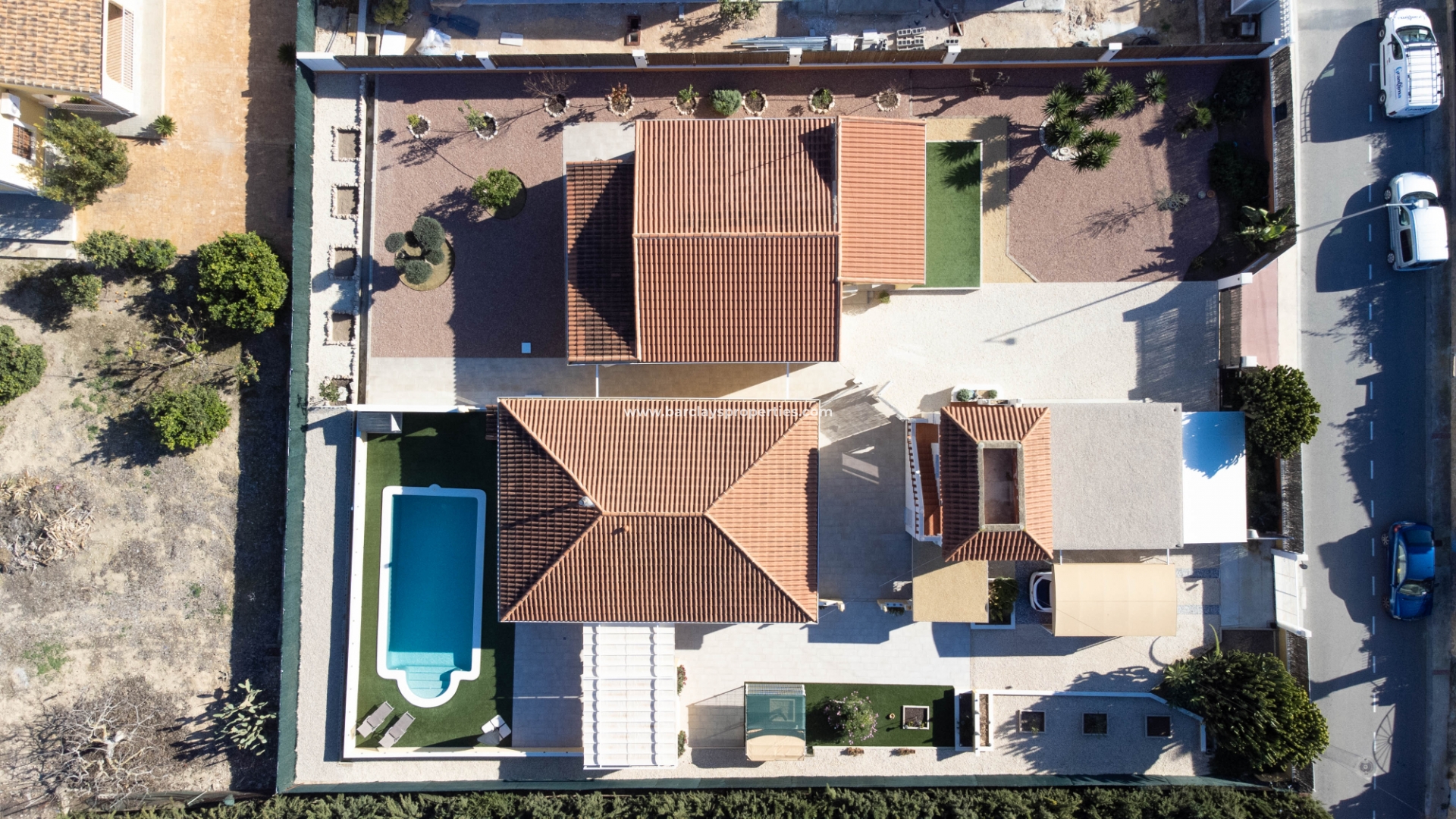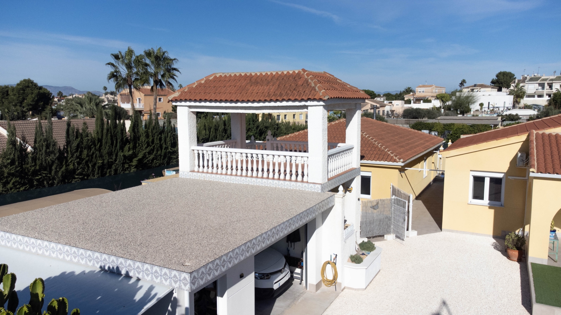 Met trots introduceren wij een unieke kans om deze twee grote vrijstaande villa's op een groot perceel van 1484m2 gelegen in de urbanisatie El Oasis, San Fulgencio te verwerven. Op slechts een paar minuten lopen van de commerciële zone "Monte Victoria" waar men een supermarkt, een verscheidenheid aan winkels en een grote keuze aan bars en restaurants kan vinden. Alles is gemakkelijk te bereiken vanaf het huis, inclusief het gouden strand van La Marina dat zich uitstrekt tot Guardamar in het zuiden en Santa Pola in het noorden.