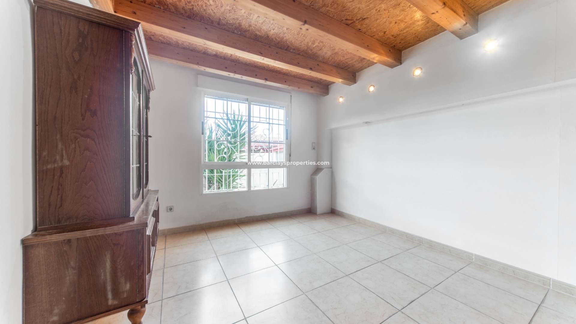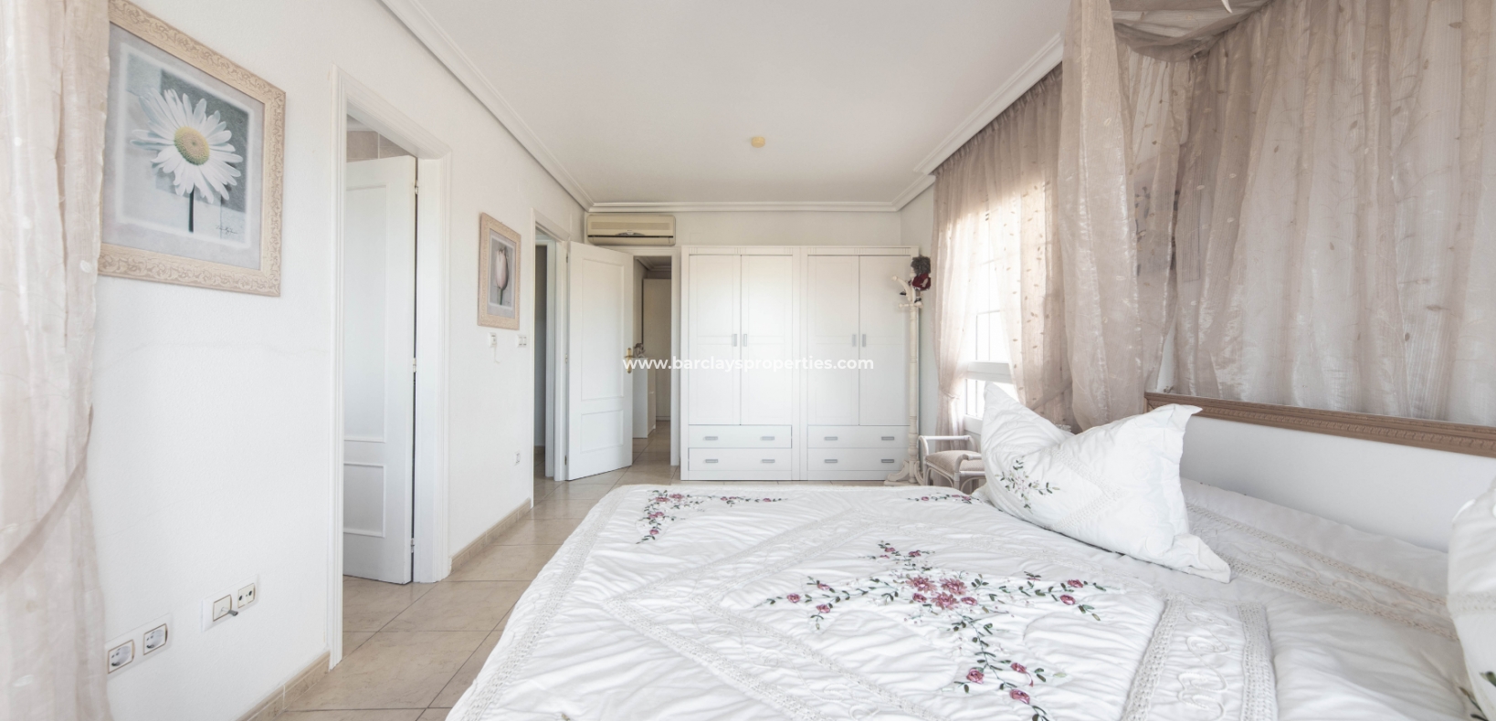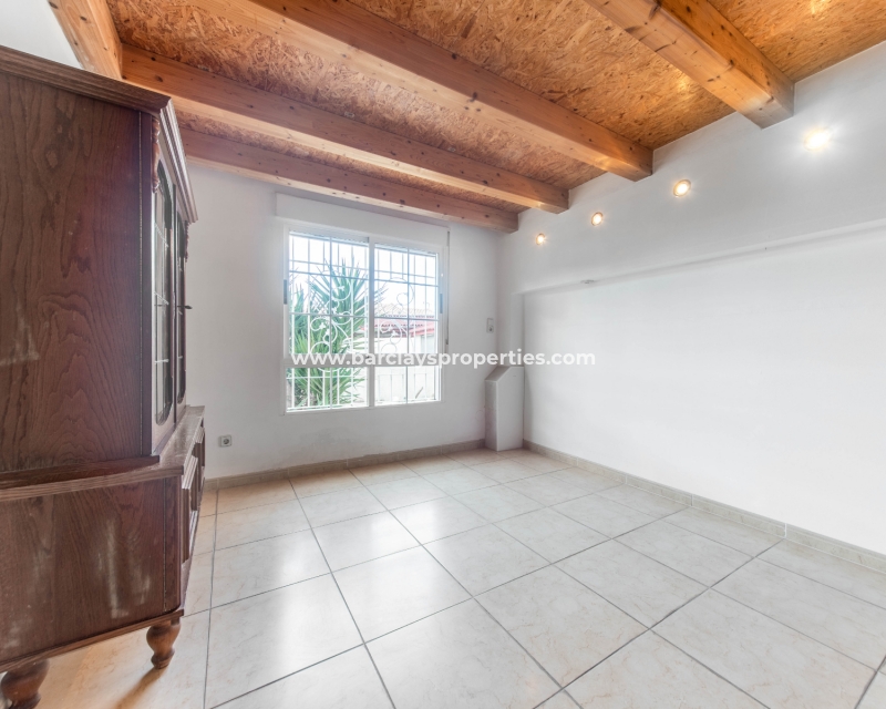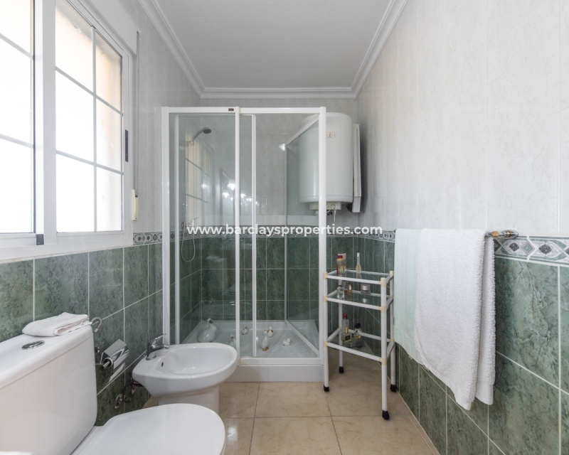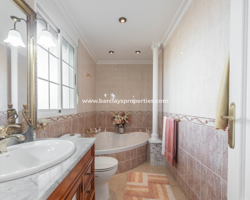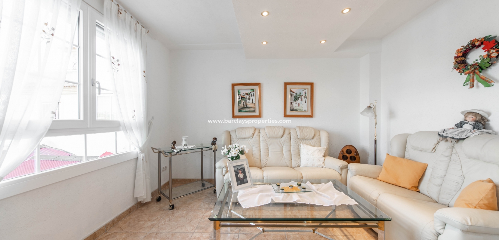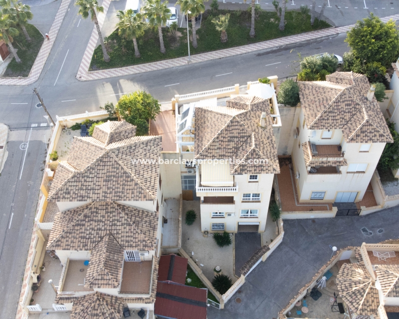 Presentatie van deze villa te koop in La Marina, gelegen in een rustige omgeving van La Marina Urbanisation maar toch op korte loopafstand van de dichtstbijzijnde voorzieningen. Op de bovenste verdieping van het pand vinden we de hoofdingang, maar niet voordat we door de netjes geplaveide tuin met zijn eigen 6,5 bij 3,5 meter overdekt verwarmd zwembad zijn gegaan! De zonneschermen net boven de zuilen van de veranda zorgen voor extra schaduw aan deze weelderige buitenkant. Er is een overdekte zithoek bij het zwembad met prachtig uitzicht op het landschap en een andere zithoek aan de voorkant van het pand, zodat u de hele dag die warme mediterrane zon kunt volgen.