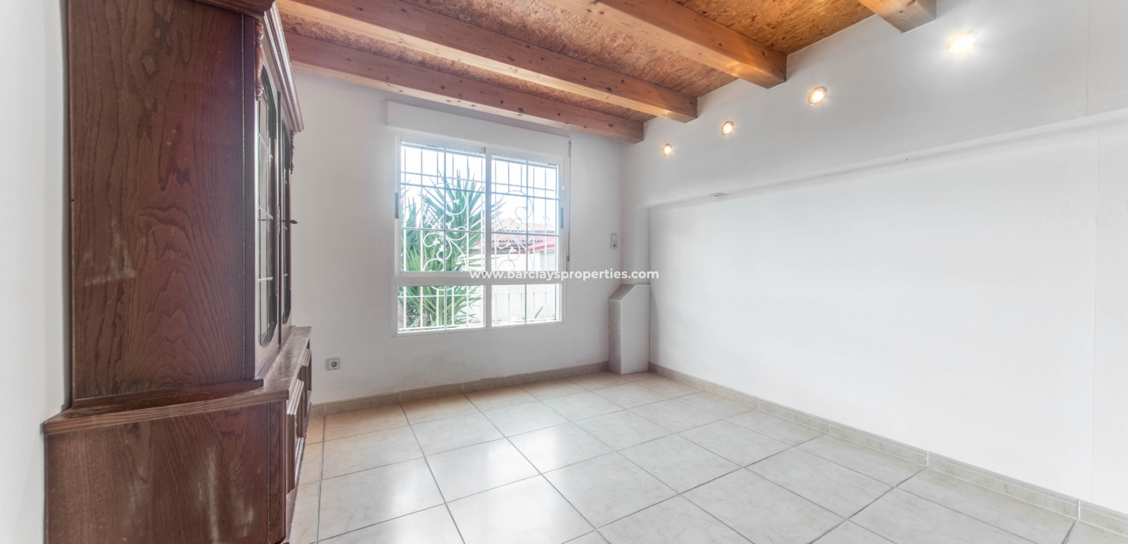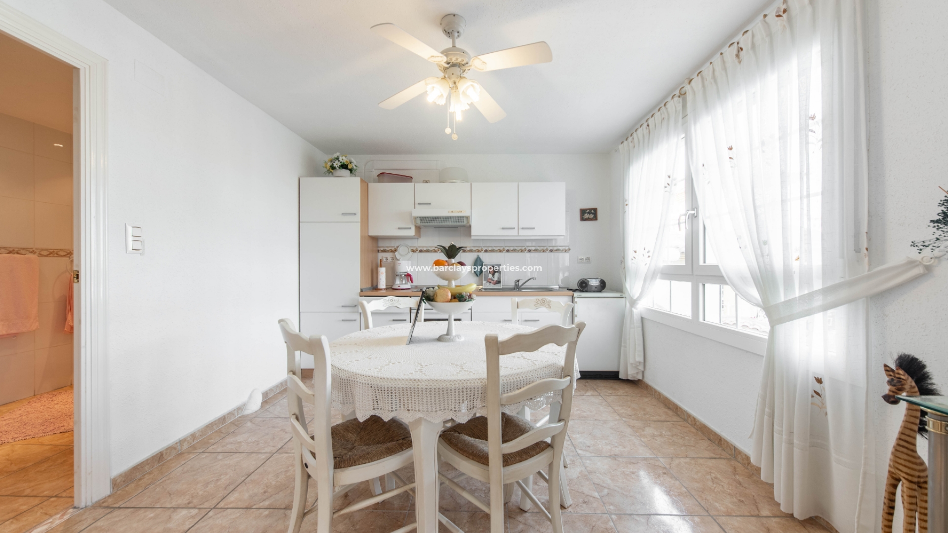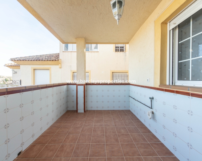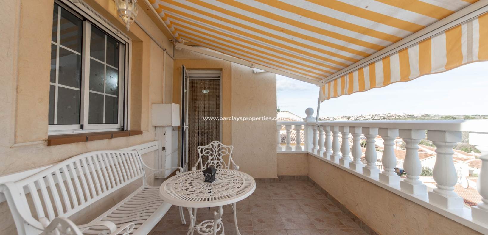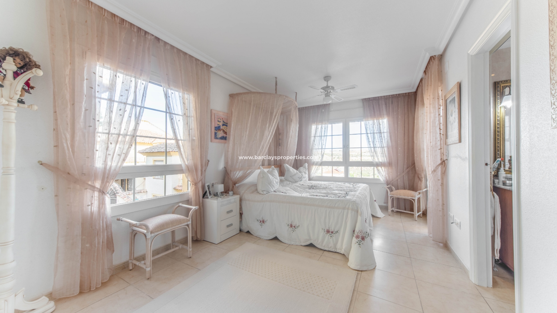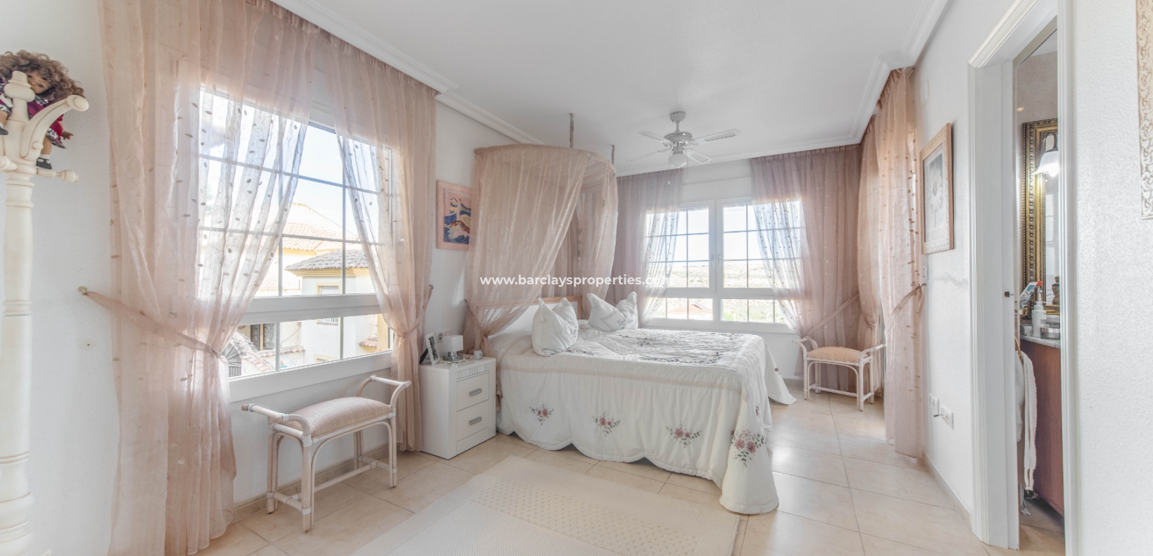 Presentatie van deze villa te koop in La Marina, gelegen in een rustige omgeving van La Marina Urbanisation maar toch op korte loopafstand van de dichtstbijzijnde voorzieningen. Op de bovenste verdieping van het pand vinden we de hoofdingang, maar niet voordat we door de netjes geplaveide tuin met zijn eigen 6,5 bij 3,5 meter overdekt verwarmd zwembad zijn gegaan! De zonneschermen net boven de zuilen van de veranda zorgen voor extra schaduw aan deze weelderige buitenkant. Er is een overdekte zithoek bij het zwembad met prachtig uitzicht op het landschap en een andere zithoek aan de voorkant van het pand, zodat u de hele dag die warme mediterrane zon kunt volgen.