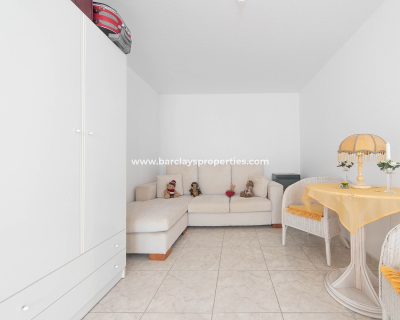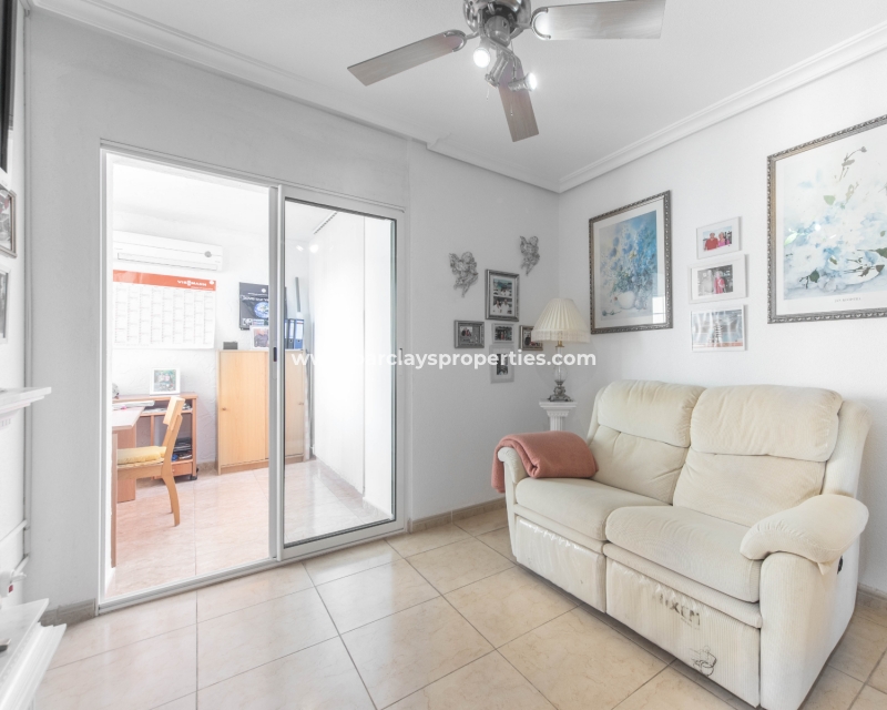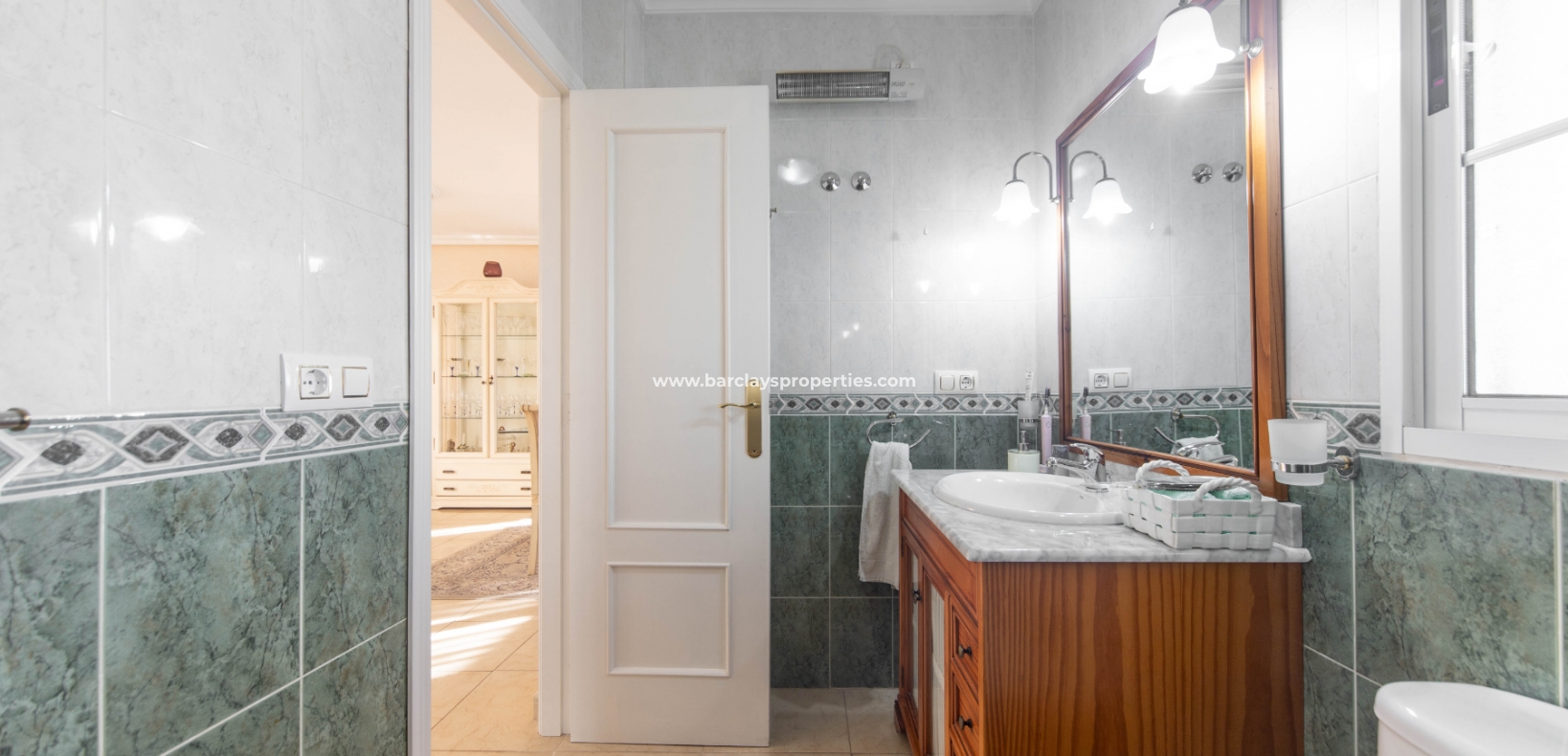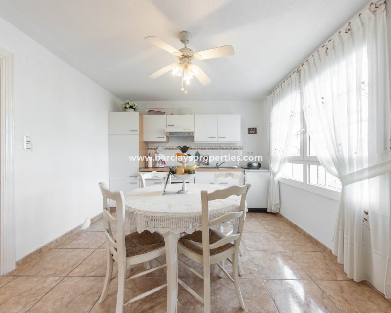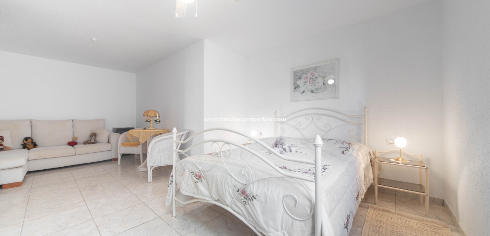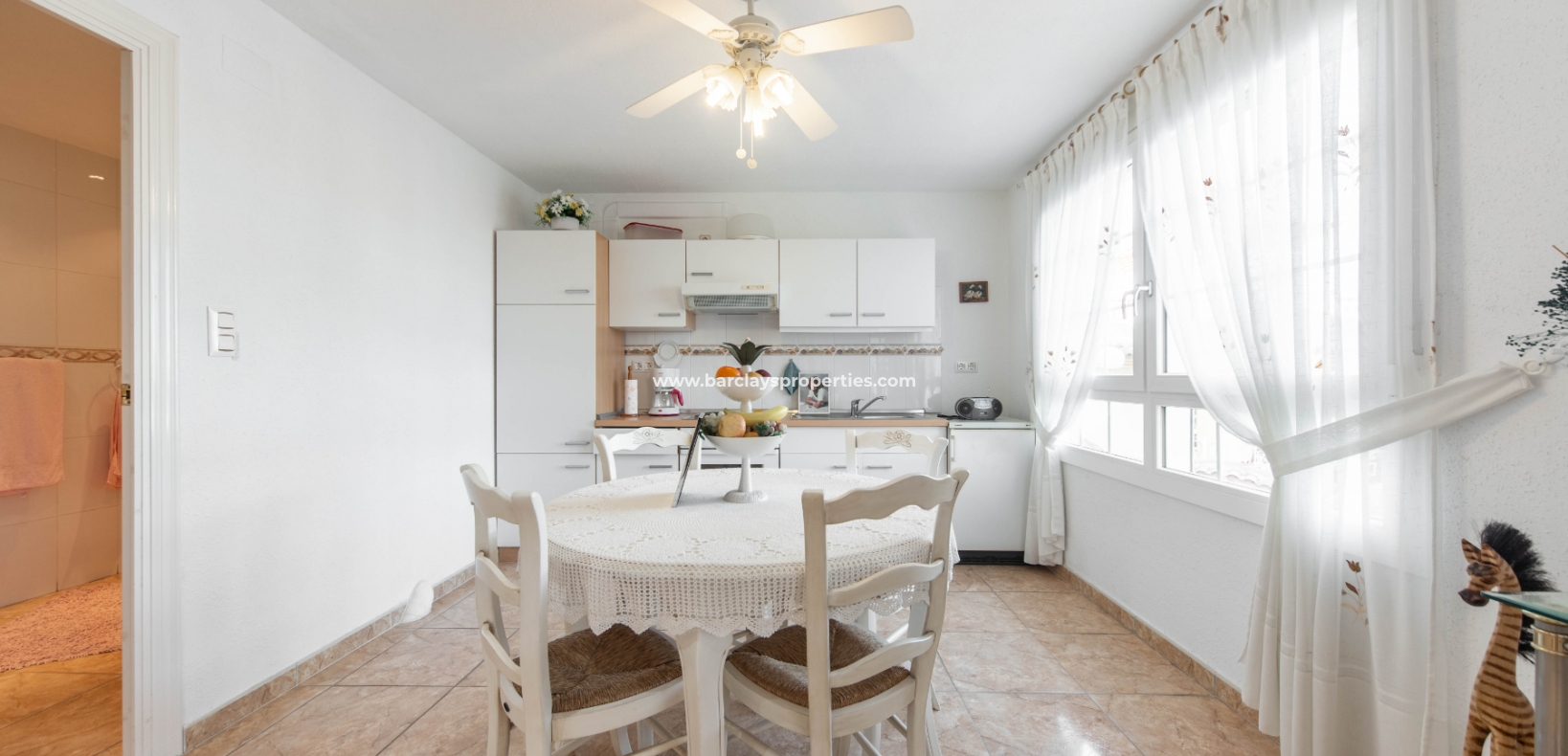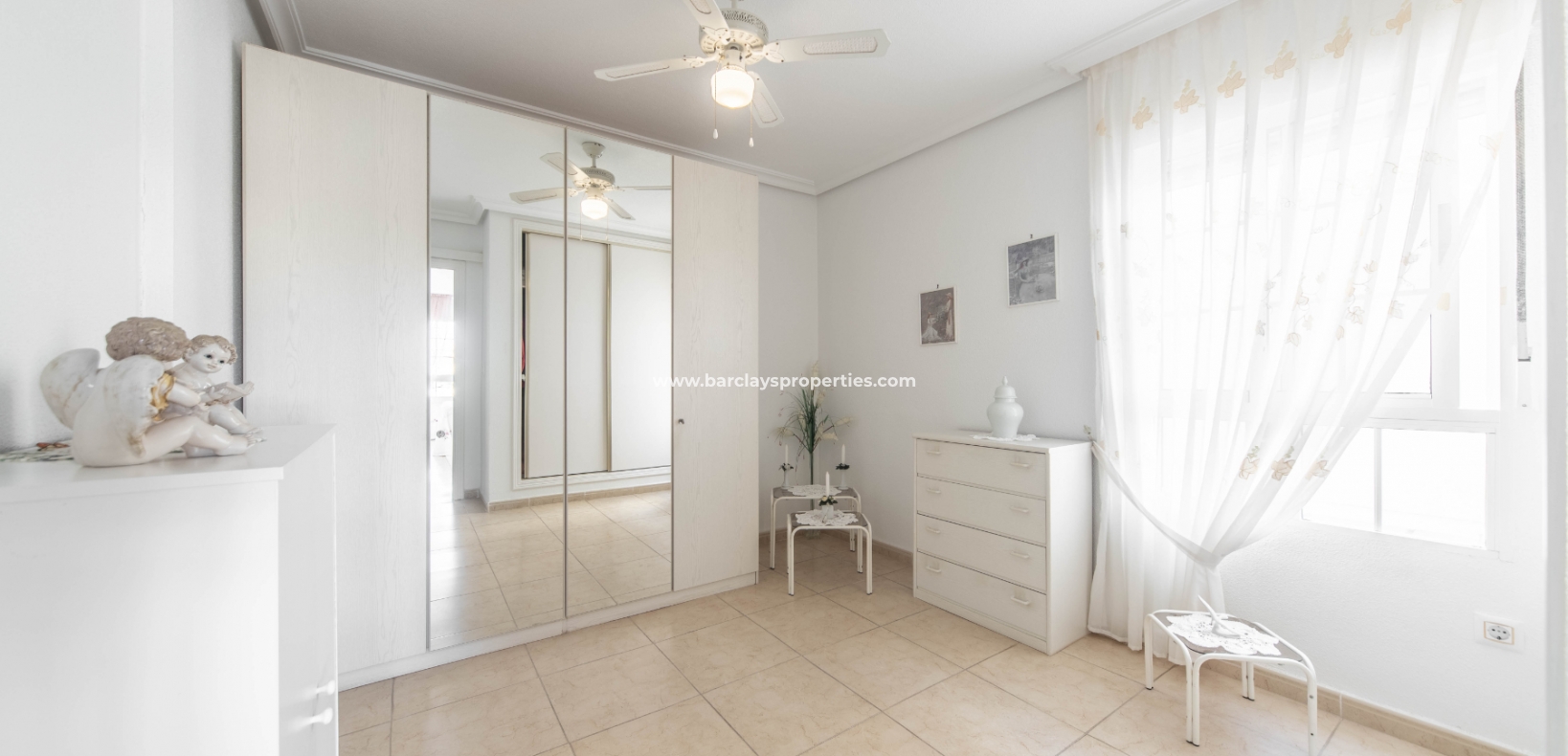 Presentatie van deze villa te koop in La Marina, gelegen in een rustige omgeving van La Marina Urbanisation maar toch op korte loopafstand van de dichtstbijzijnde voorzieningen. Op de bovenste verdieping van het pand vinden we de hoofdingang, maar niet voordat we door de netjes geplaveide tuin met zijn eigen 6,5 bij 3,5 meter overdekt verwarmd zwembad zijn gegaan! De zonneschermen net boven de zuilen van de veranda zorgen voor extra schaduw aan deze weelderige buitenkant. Er is een overdekte zithoek bij het zwembad met prachtig uitzicht op het landschap en een andere zithoek aan de voorkant van het pand, zodat u de hele dag die warme mediterrane zon kunt volgen.