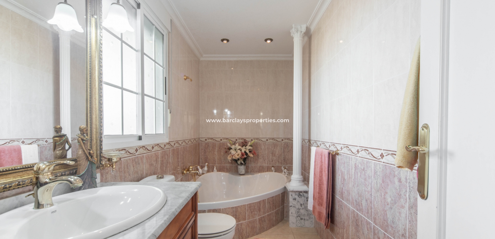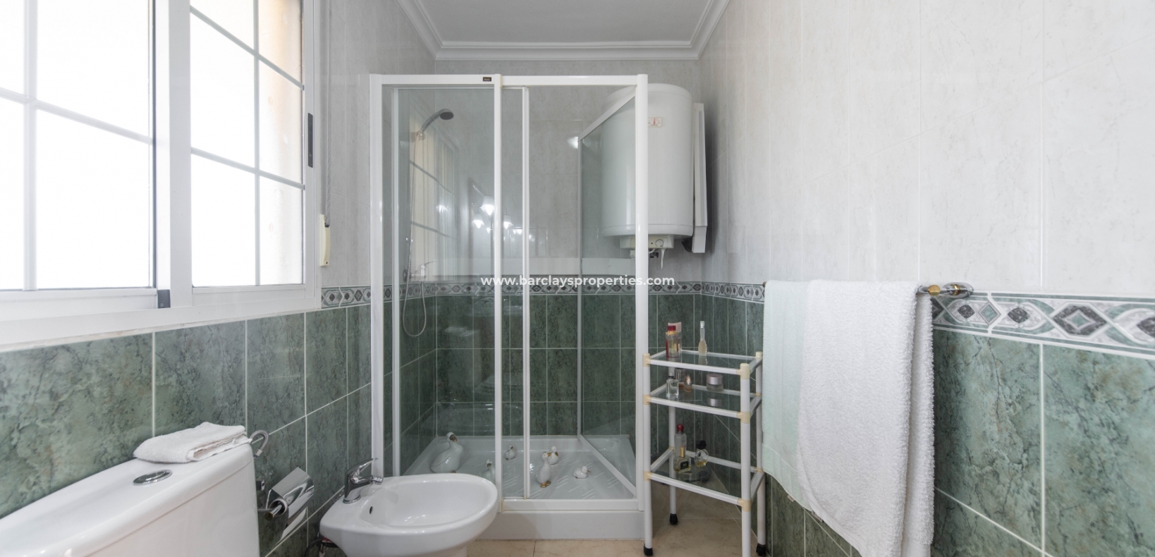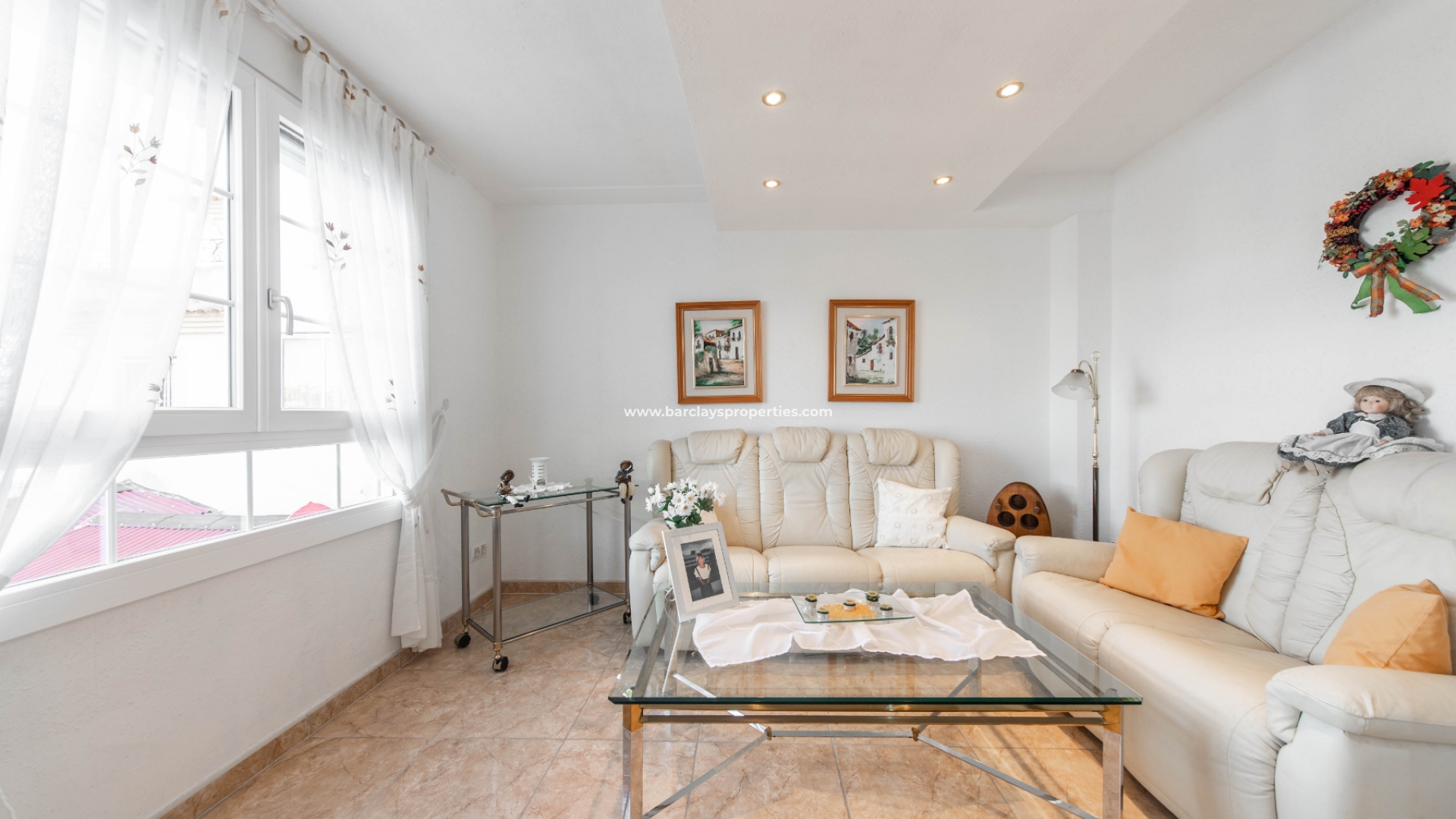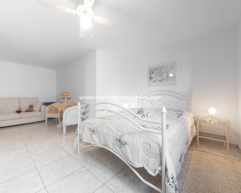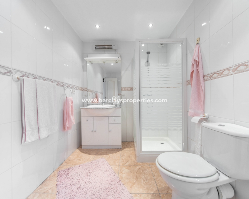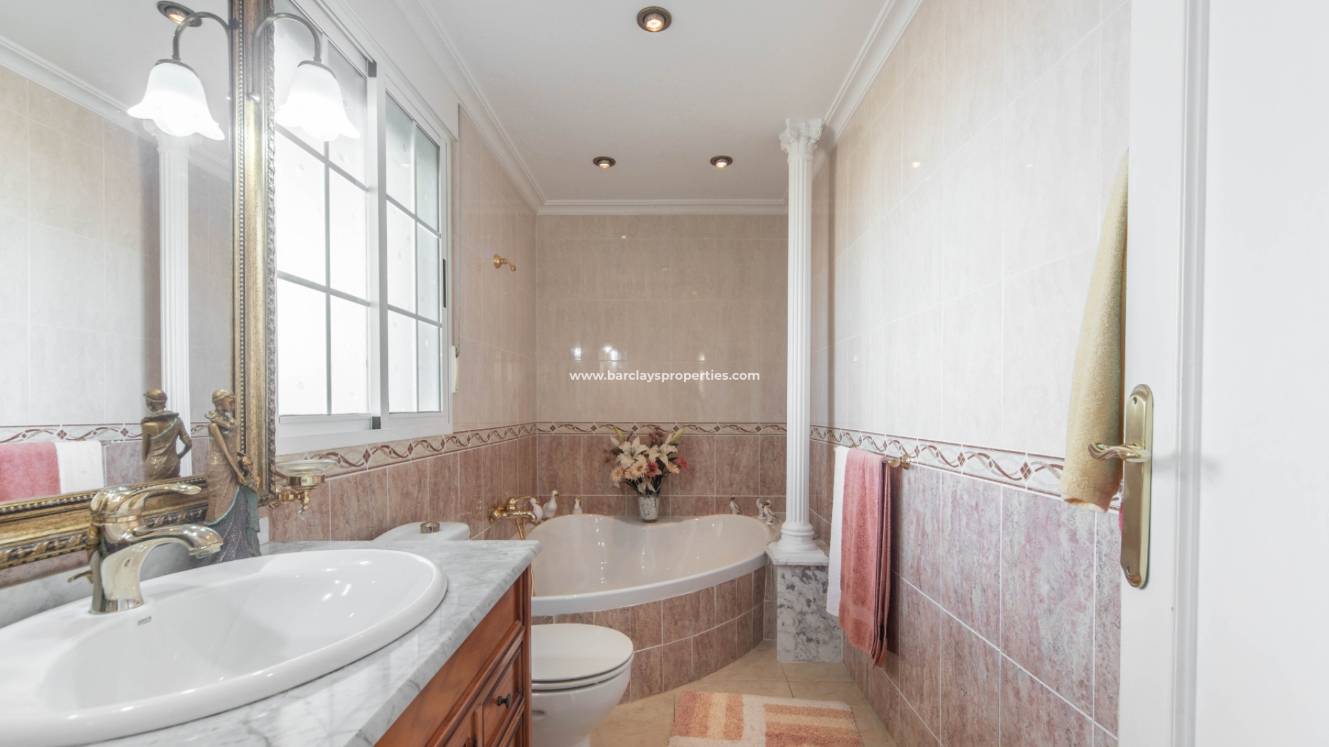 Presentatie van deze villa te koop in La Marina, gelegen in een rustige omgeving van La Marina Urbanisation maar toch op korte loopafstand van de dichtstbijzijnde voorzieningen. Op de bovenste verdieping van het pand vinden we de hoofdingang, maar niet voordat we door de netjes geplaveide tuin met zijn eigen 6,5 bij 3,5 meter overdekt verwarmd zwembad zijn gegaan! De zonneschermen net boven de zuilen van de veranda zorgen voor extra schaduw aan deze weelderige buitenkant. Er is een overdekte zithoek bij het zwembad met prachtig uitzicht op het landschap en een andere zithoek aan de voorkant van het pand, zodat u de hele dag die warme mediterrane zon kunt volgen.