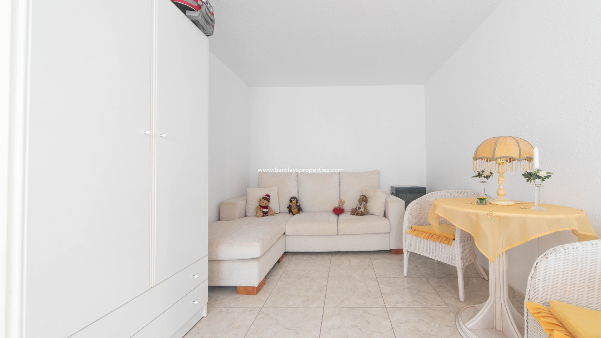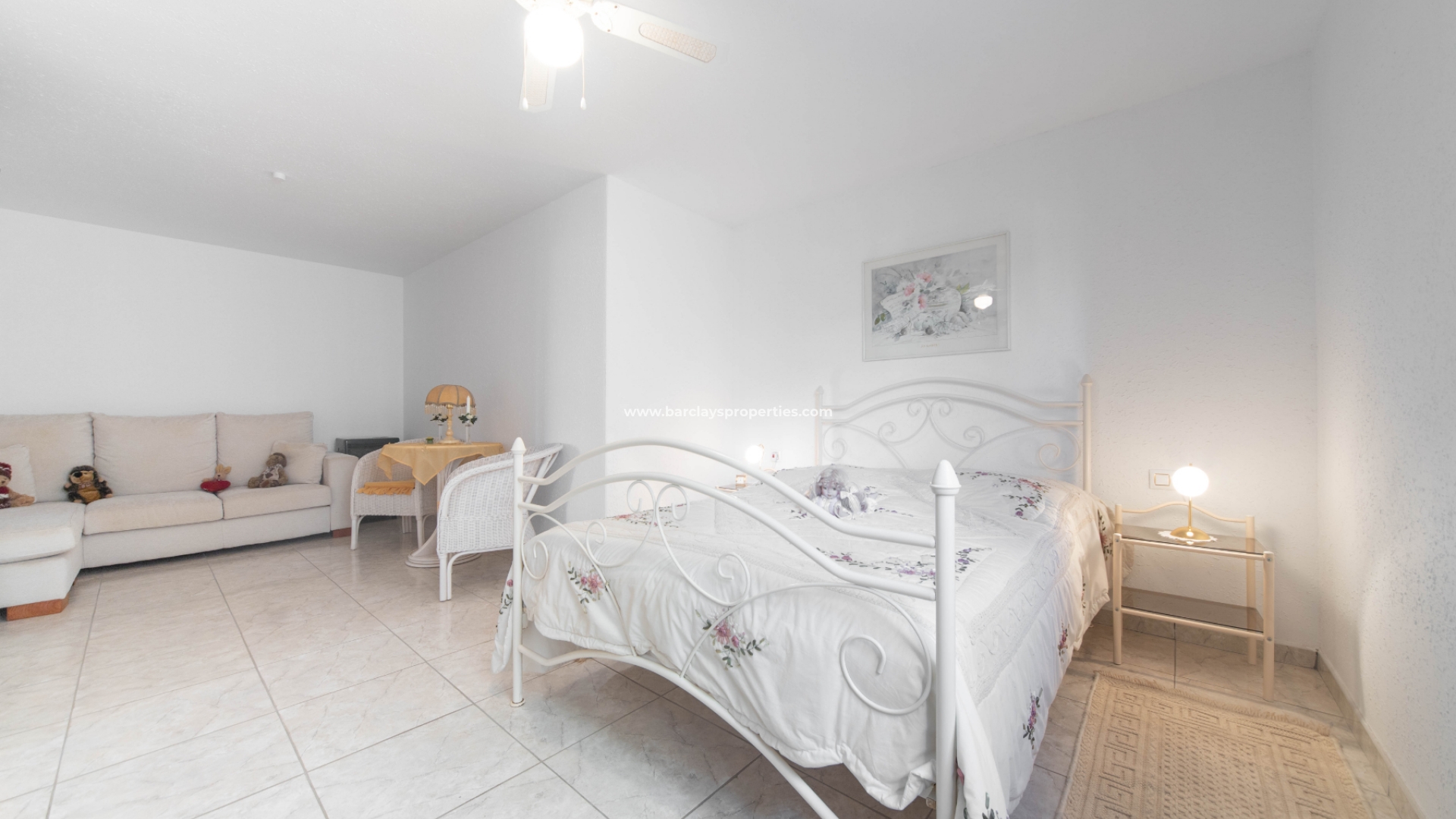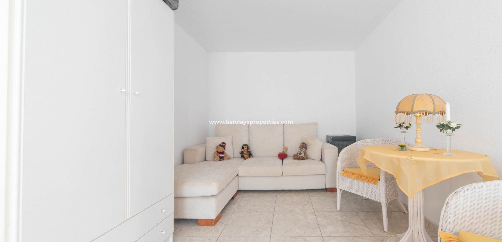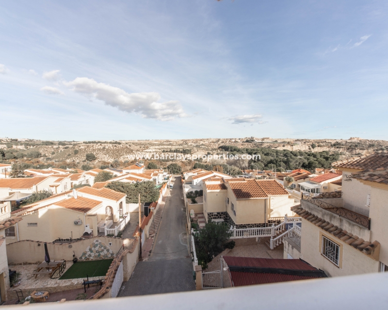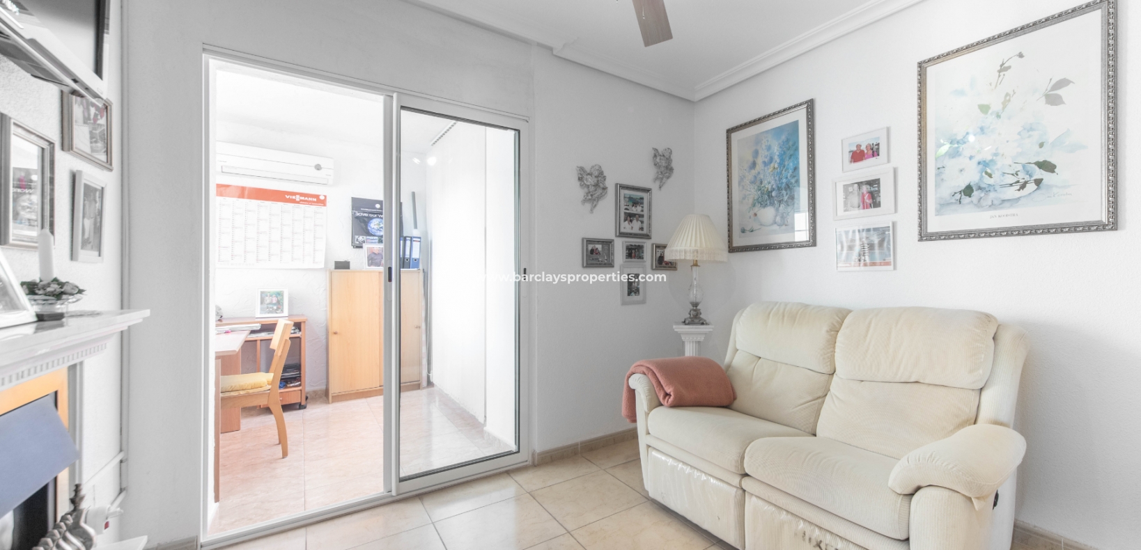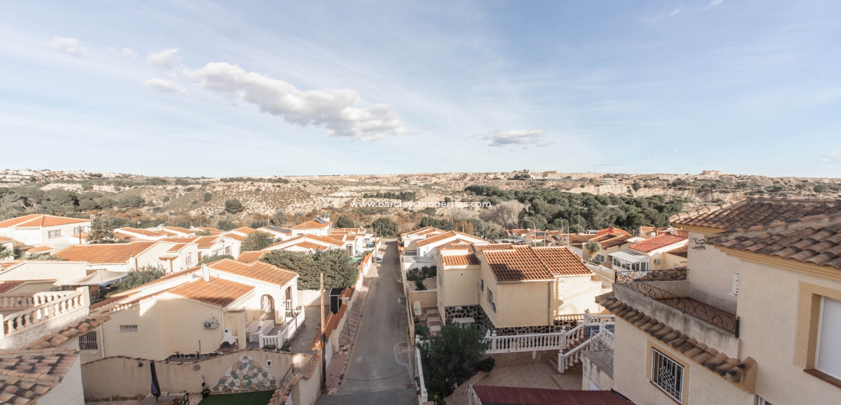Presentatie van deze villa te koop in La Marina, gelegen in een rustige omgeving van La Marina Urbanisation maar toch op korte loopafstand van de dichtstbijzijnde voorzieningen. Op de bovenste verdieping van het pand vinden we de hoofdingang, maar niet voordat we door de netjes geplaveide tuin met zijn eigen 6,5 bij 3,5 meter overdekt verwarmd zwembad zijn gegaan! De zonneschermen net boven de zuilen van de veranda zorgen voor extra schaduw aan deze weelderige buitenkant. Er is een overdekte zithoek bij het zwembad met prachtig uitzicht op het landschap en een andere zithoek aan de voorkant van het pand, zodat u de hele dag die warme mediterrane zon kunt volgen.