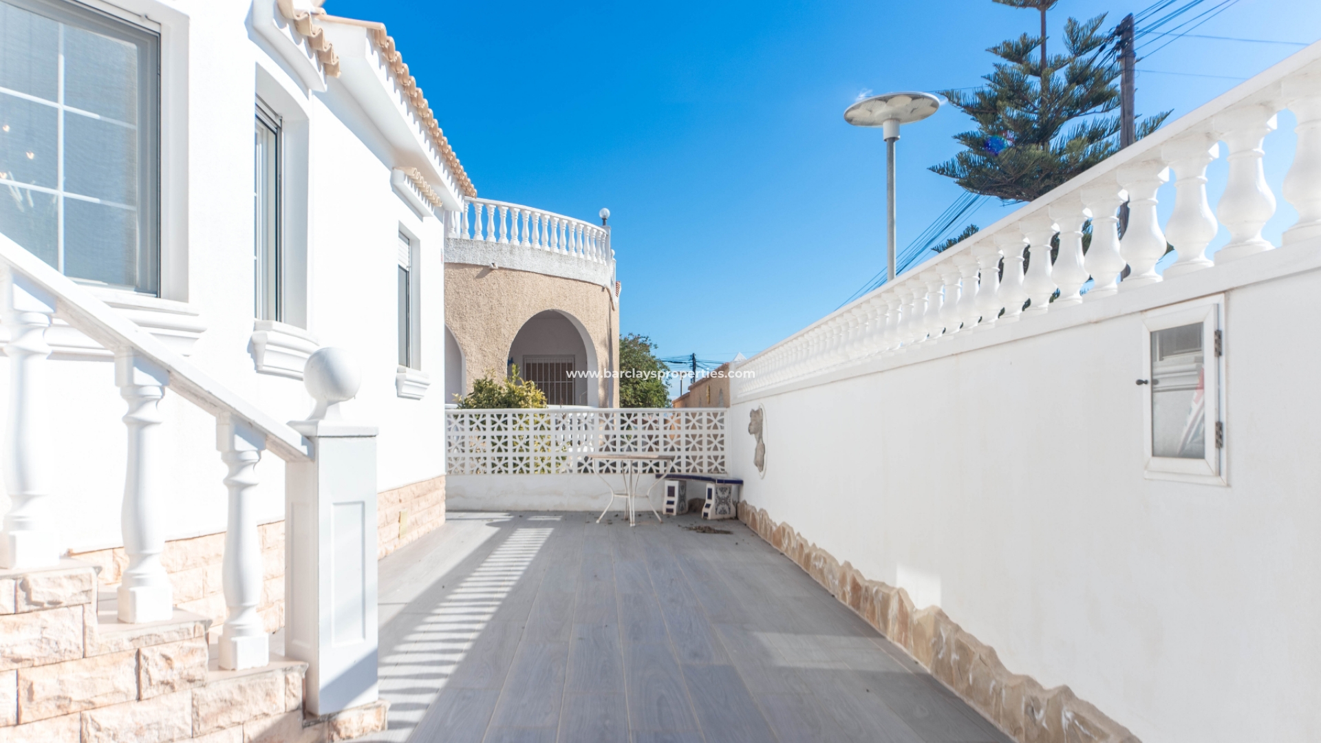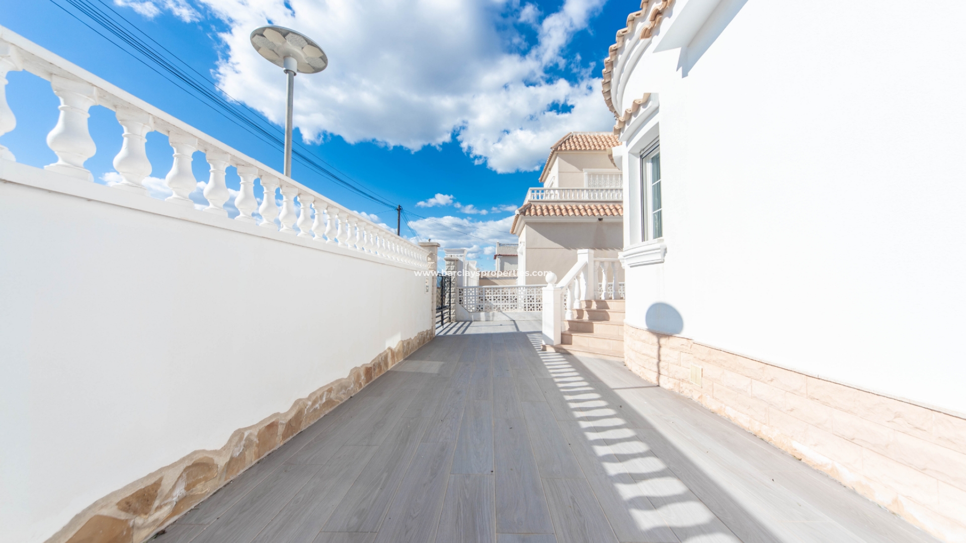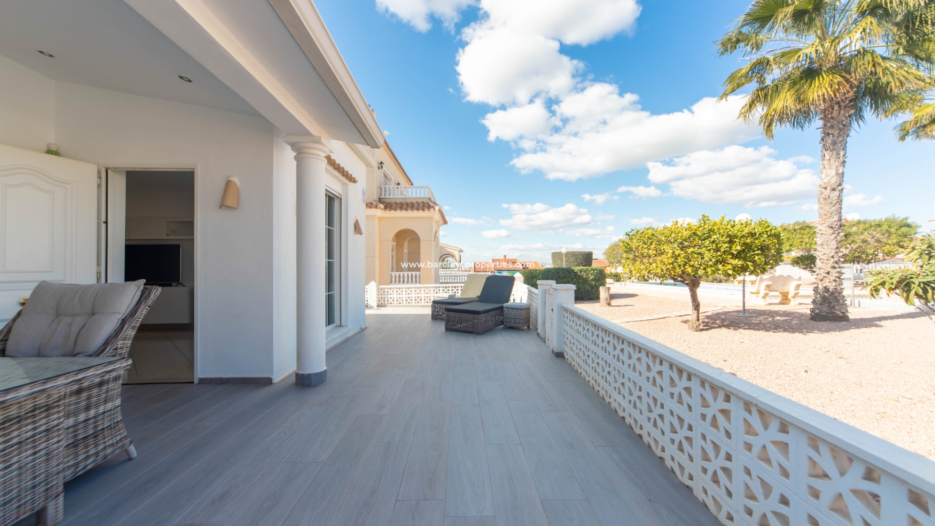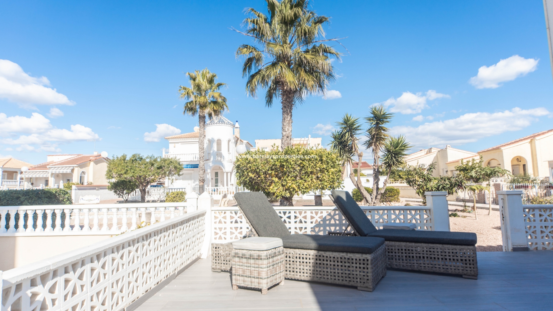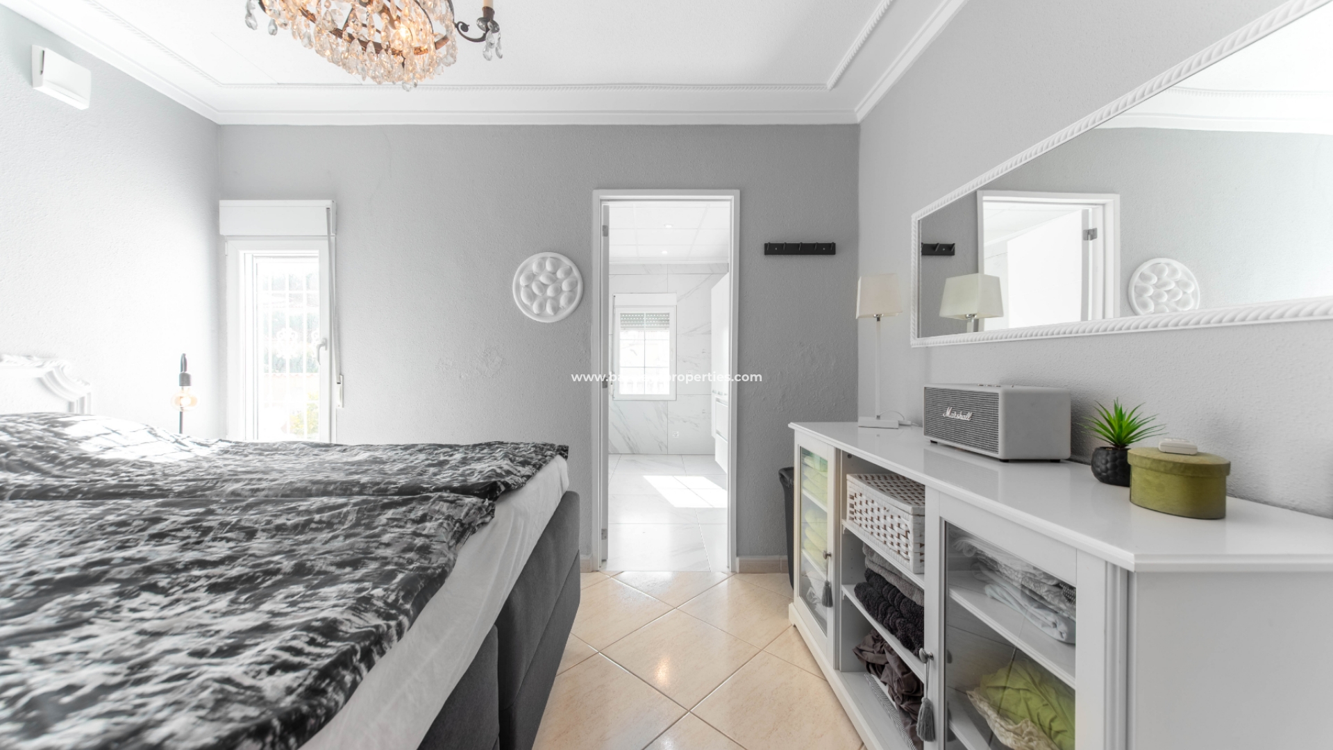 Trots introduceren deze prachtige unieke en volledig gerenoveerde vrijstaande villa die is gevonden in een toplocatie in Urb La Marina, San Fulgencio. Het maakt deel uit van een aantrekkelijke gemeenschap van 14 huizen met toegang tot een goed onderhouden gemeenschappelijk zwembad en onberispelijke tuinen met diverse zonnige en schaduwrijke zitjes. Deze vrijstaande villa, een model "Lola" is uitgebreid en gerenoveerd tot een fantastisch huis.