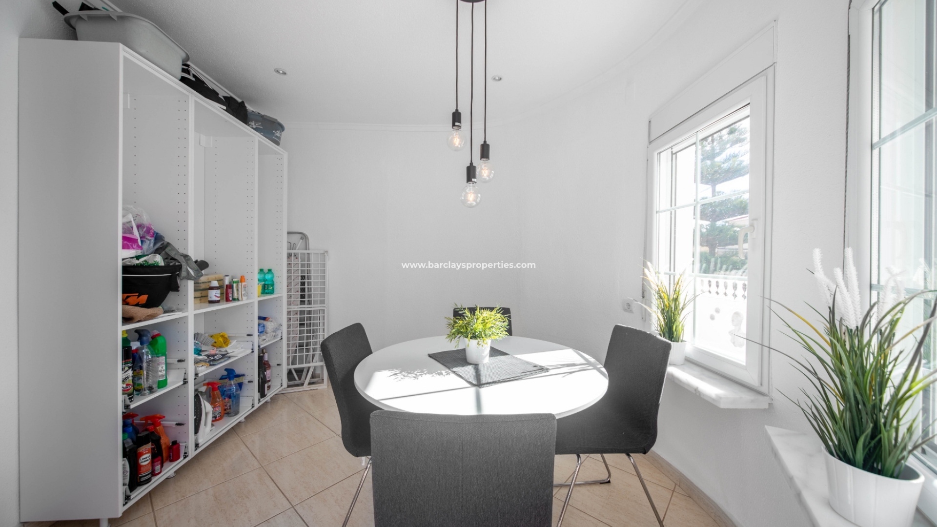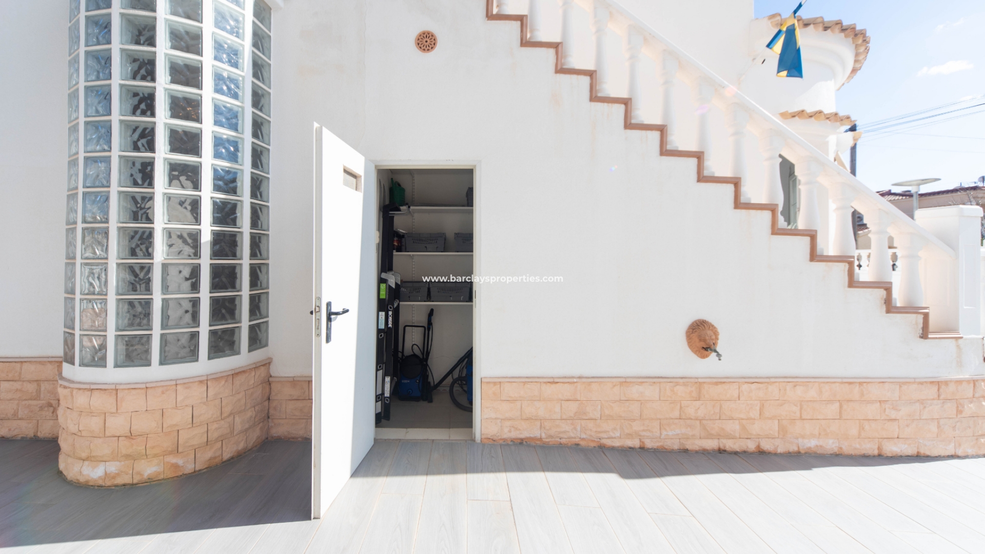 De woning is te vinden op een vlak verhard, groter perceel in een rustige cul-de-sac op slechts een paar minuten lopen naar alle voorzieningen en een prachtige selectie van bars, cafés en restaurants met internationale keuken. Voor strandliefhebbers die de dag willen doorbrengen onder de Spaanse zon is het dichtstbijzijnde strand slechts vijf minuten rijden met de auto! De urbanisatie La Marina in het zuiden van de provincie Alicante is zelfvoorzienend en biedt een verscheidenheid aan voorzieningen, maar de naburige steden zijn bereikbaar per bus, auto en fiets (sommige via veilige fietspaden). De dichtstbijzijnde luchthaven Alicante-Elche ligt op slechts 25 minuten rijden langs de kustweg, de N-332.