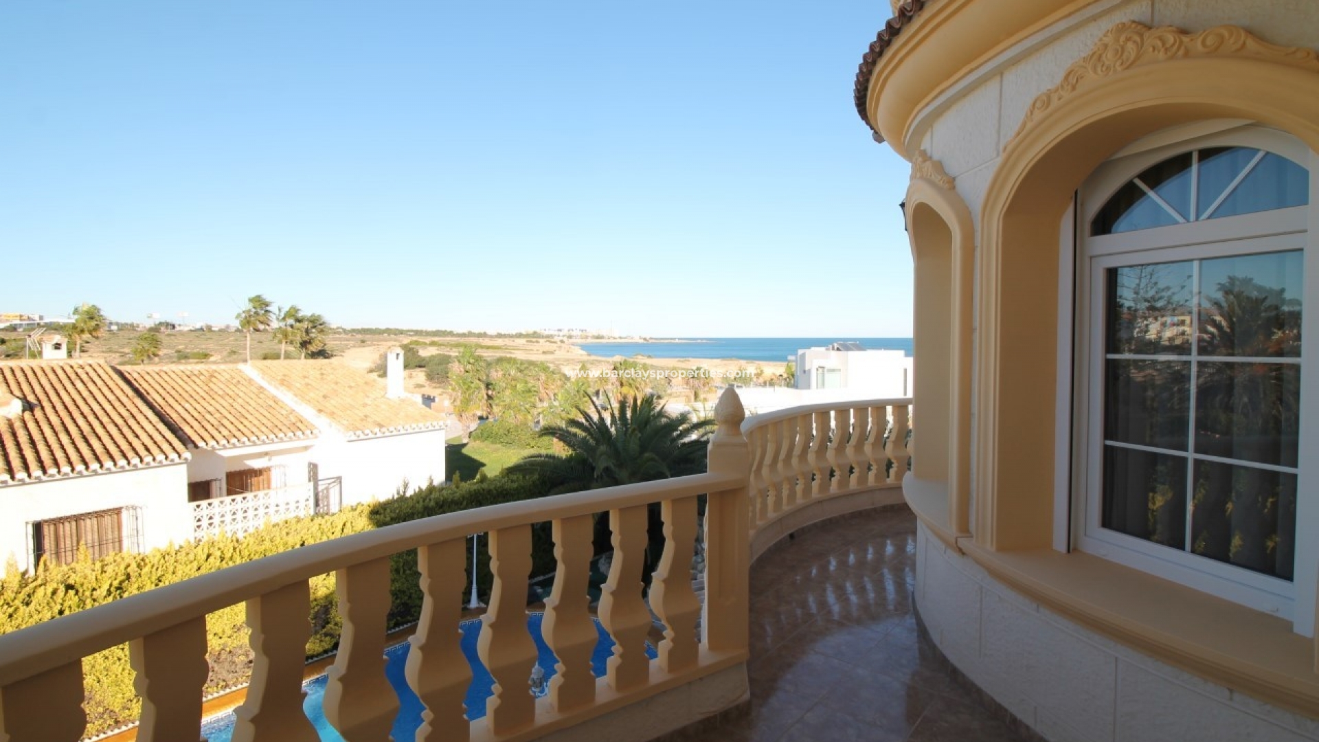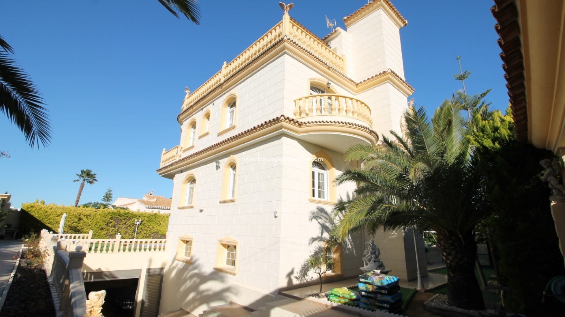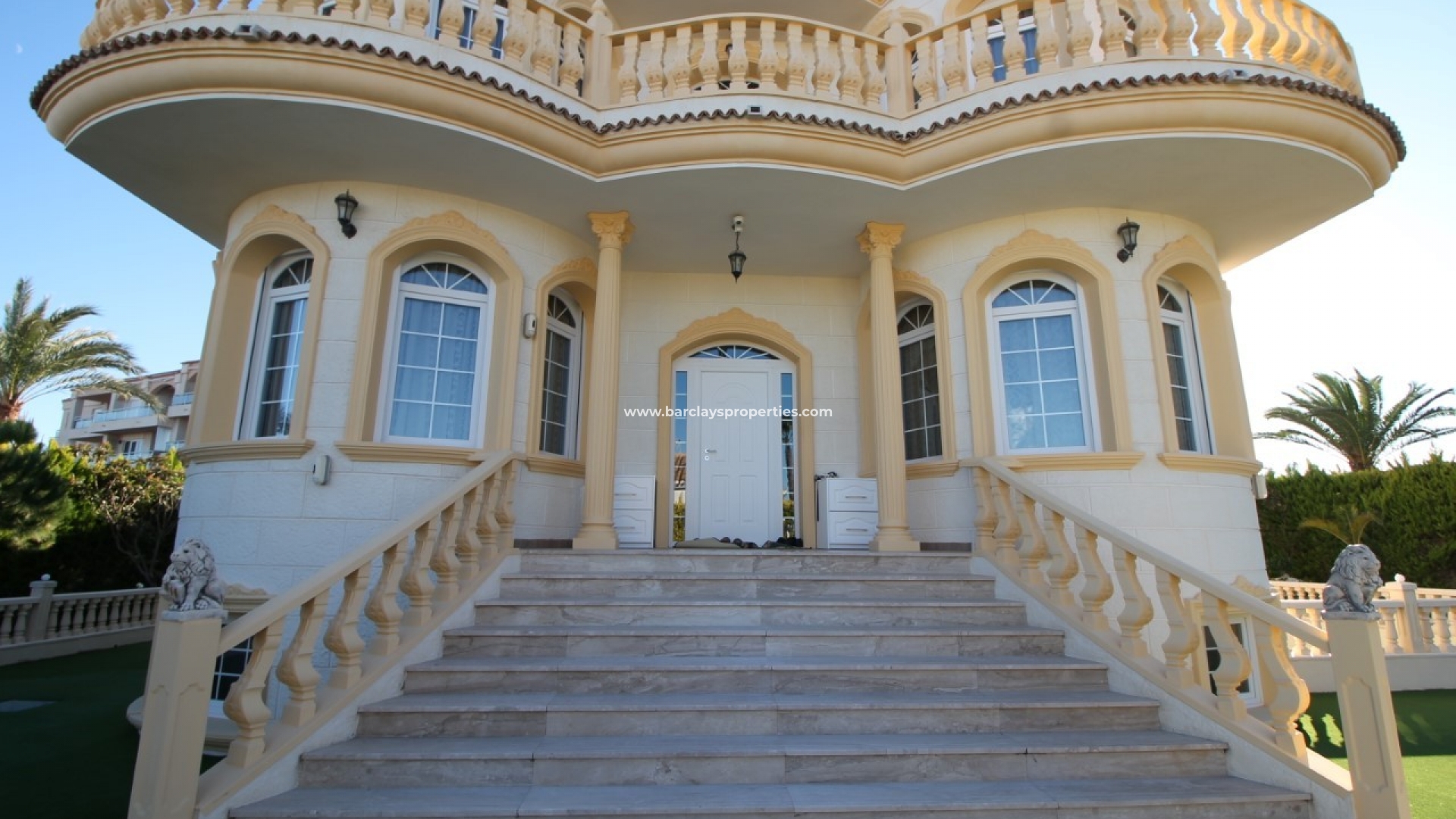 Deze prachtige villa met vier verdiepingen heeft alles wat u nodig heeft om te genieten van een luxe levensstijl, van een overdekte spa met een 7 x 4m zwembad, 2 sauna's, een Italiaanse jacuzzi en een massagedouche, tot 5 tweepersoonsslaapkamers, allemaal met en-suite badkamers en allemaal met uitzicht op de kust van Playa Flamenca.
