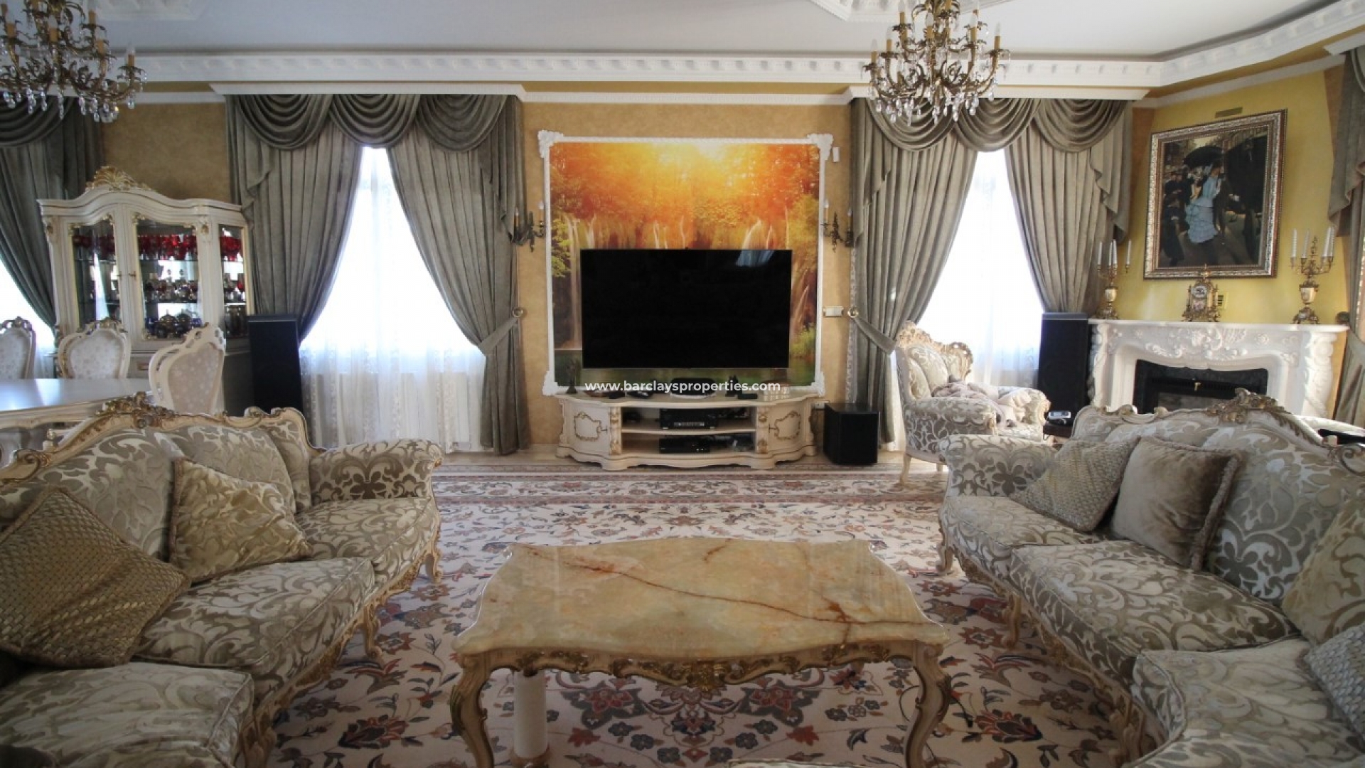 Op de begane grond, na het betreden van een grote en veilige voordeur, vindt u een ruime woonkamer met handgemaakte Italiaanse meubels, hoogwaardige handgemaakte gordijnen, koperen kroonluchters en marmeren vloeren. Deze woonkamer is ook uitgerust met RGB-verlichting met plafondverlichting en een krachtig entertainmentsysteem, waardoor het de perfecte ruimte is voor privéfeesten en / of om te genieten van een echte bioscoopervaring!