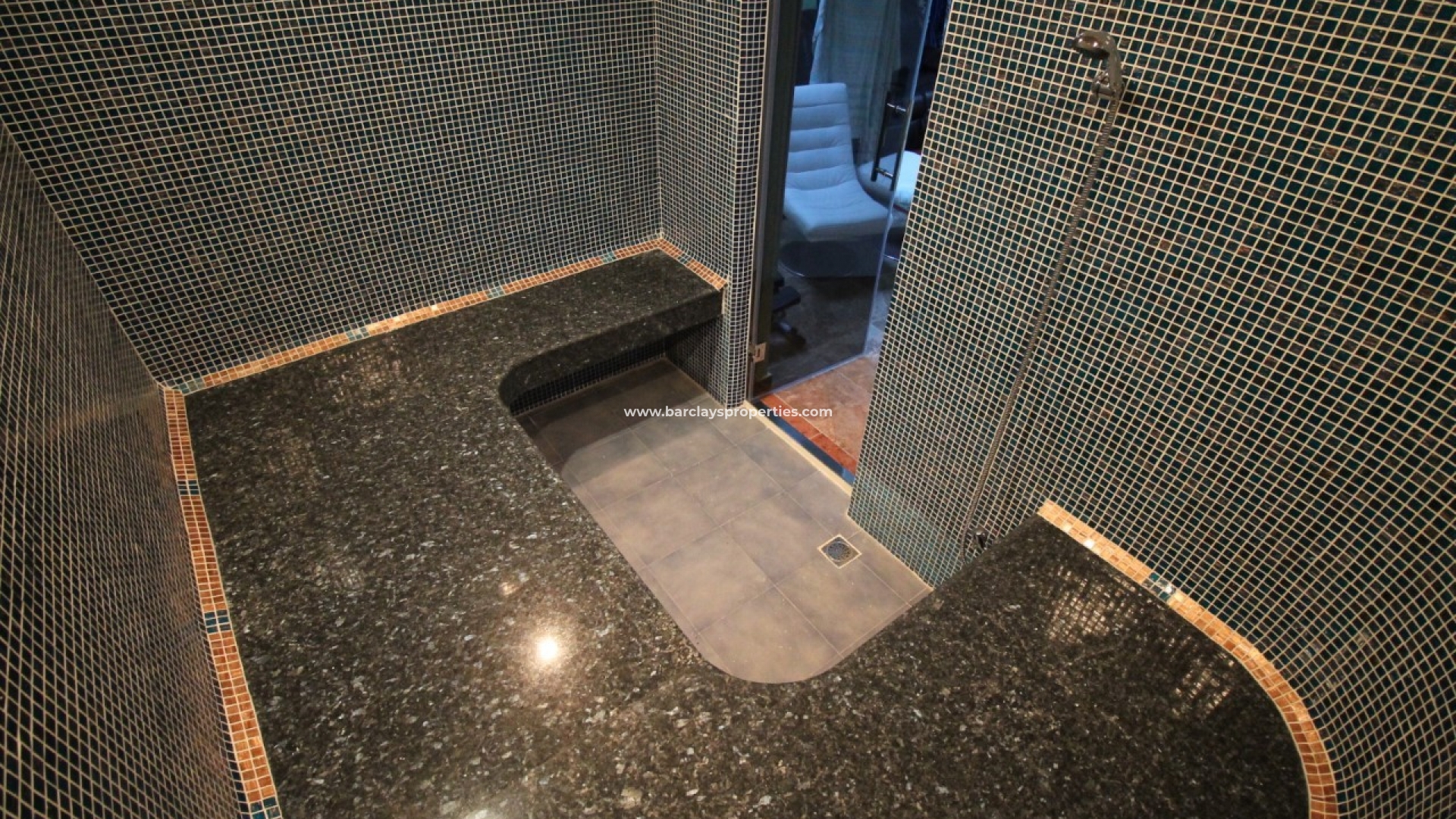 De onderbouw wordt momenteel gebruikt als een SPA met een Arabisch betegeld binnenzwembad, twee sauna's (de een is een traditionele houten sauna en de andere een gemarmerde sauna), een Italiaanse jacuzzi en een massagedouchekamer. De onderbouw biedt ook een grote entertainmentkamer die momenteel is uitgerust met een prachtige pooltafel, een bar en een surround sound-systeem.
