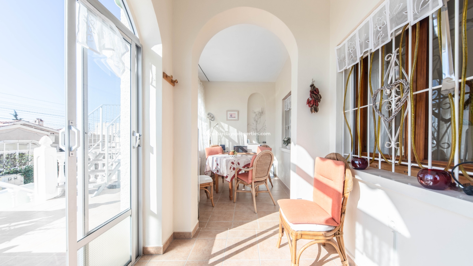 Te koop in de urbanisatie La Marina in de provincie Alicante is deze mooie uitgebreide vrijstaande woning met apart gastenverblijf, een model "Lola" gelegen op een hoekperceel in een rustige cul-de-sac op slechts 10 minuten lopen naar het dichtstbijzijnde commerciële centrum waar men alle voorzieningen kan vinden met inbegrip van een verscheidenheid aan winkels, bars en restaurants met een grote selectie van internationale en lokale gerechten.