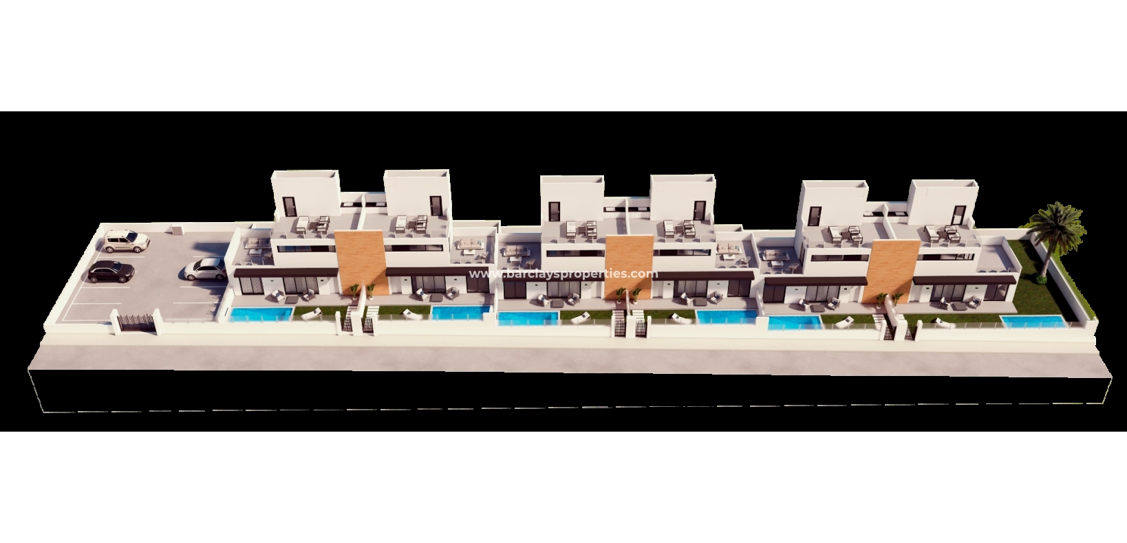 A complex of only 13 villas for sale in Orihuela Costa, more specifically in the area around Villamartin, a privileged enclave surrounded by three magnificent golf courses (Villamartin, Las Ramblas and Campoamor),only five minutes from Orihuela Costa’s best beaches and 40 minutes from Alicante Airport. Only a few minutes' walk we can find all manner of services such as bars, restaurants and all kinds of shops, not to mention the “La Fuente” shopping centre.