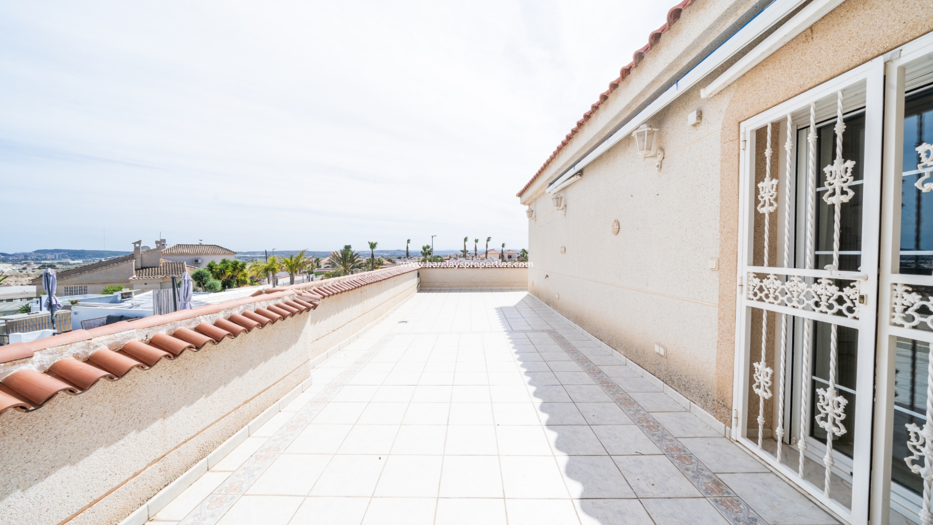 From the landing an access door leads to a private sun terrace with dining area. From here the wrap around sun terrace leads to the bedroom and living area as well as steps leading to the solarium with breath taking 360ºC views over the urbanisations La Escuera and La Marina and onwards to the countryside, mountains and the sea.
