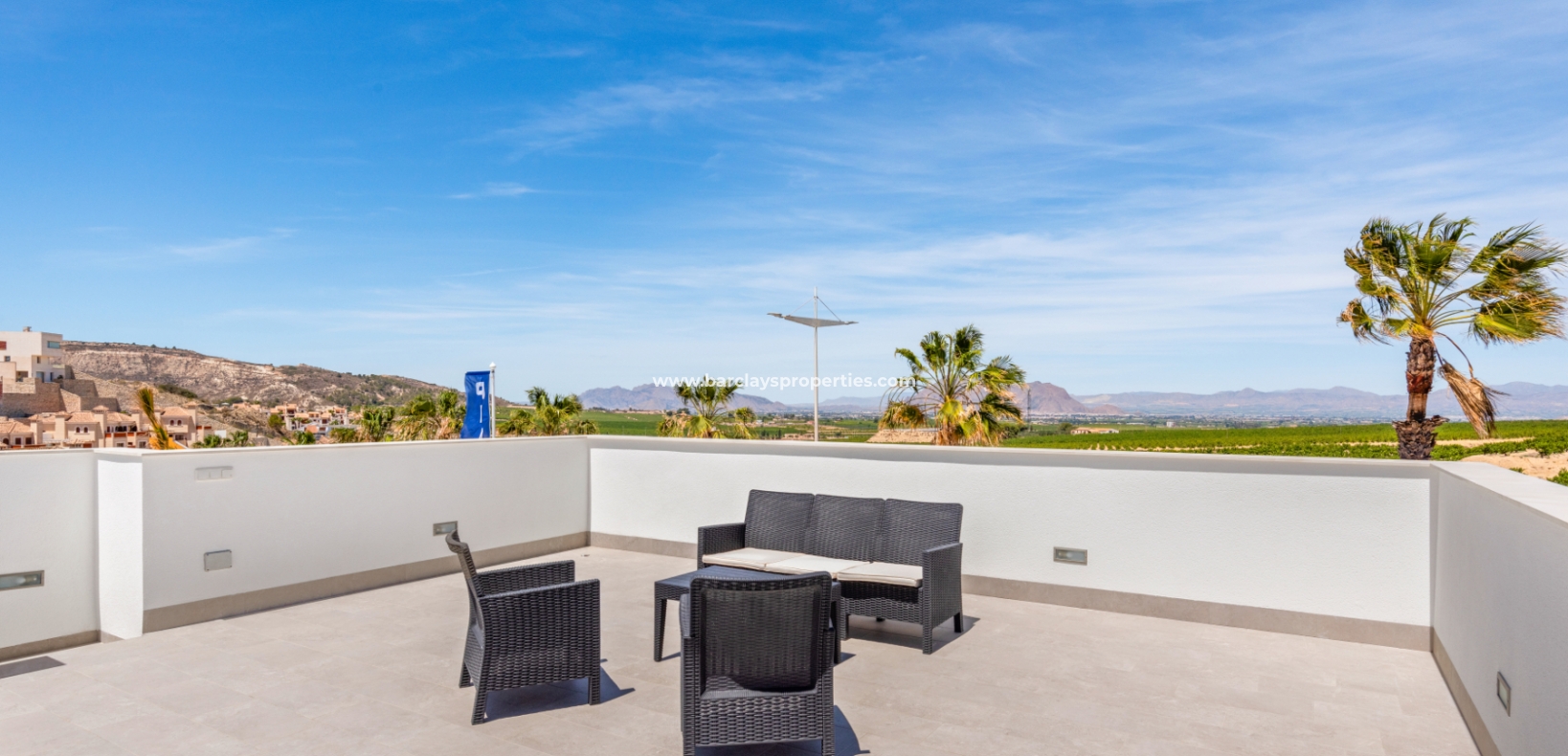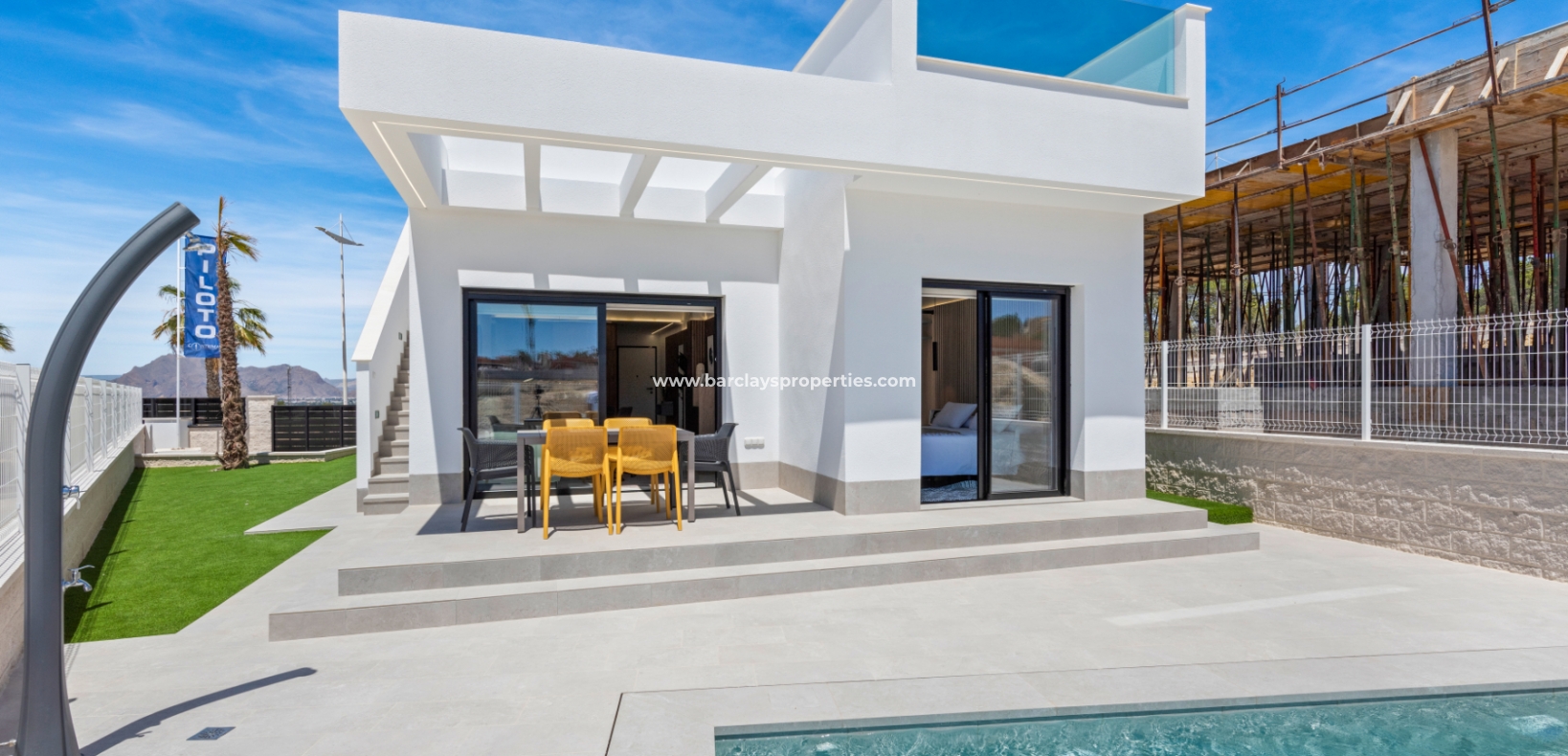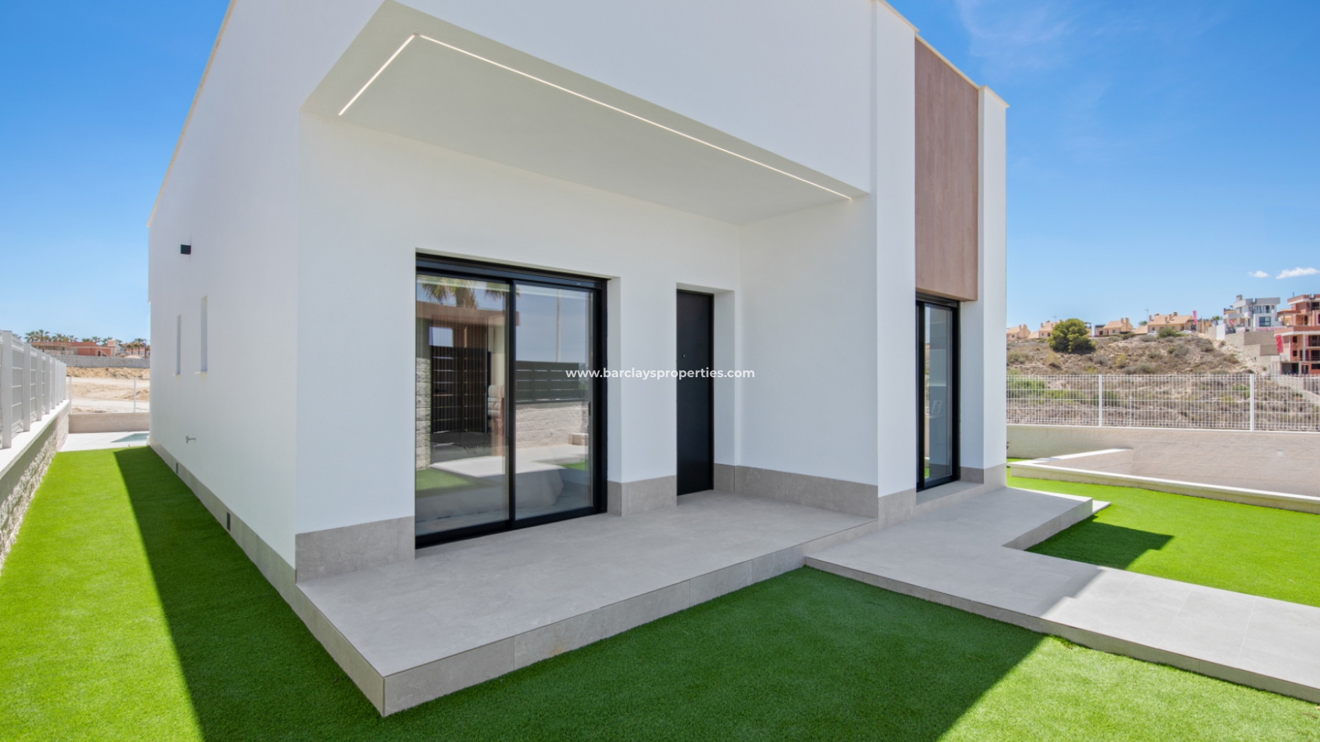 This modern, ➡️ one-level new build villa in La Finca Golf, Algorfa, offers contemporary living in a peaceful yet convenient location. The property features 3 spacious bedrooms, 2 sleek bathrooms, and an open-plan kitchen across 104 m² of living space, set on a 252 m² plot. The private garden includes a stunning pool, ideal for relaxation and entertaining.