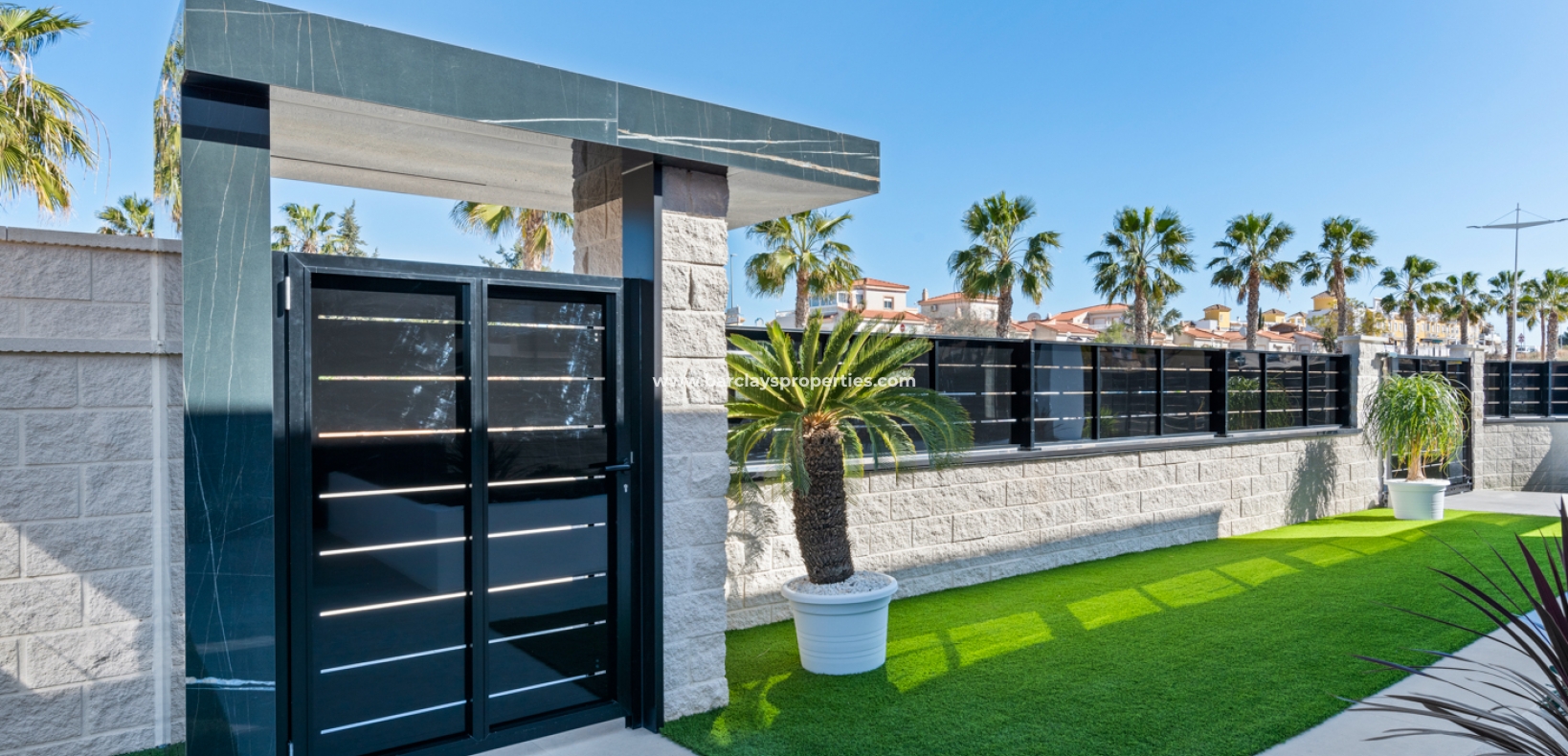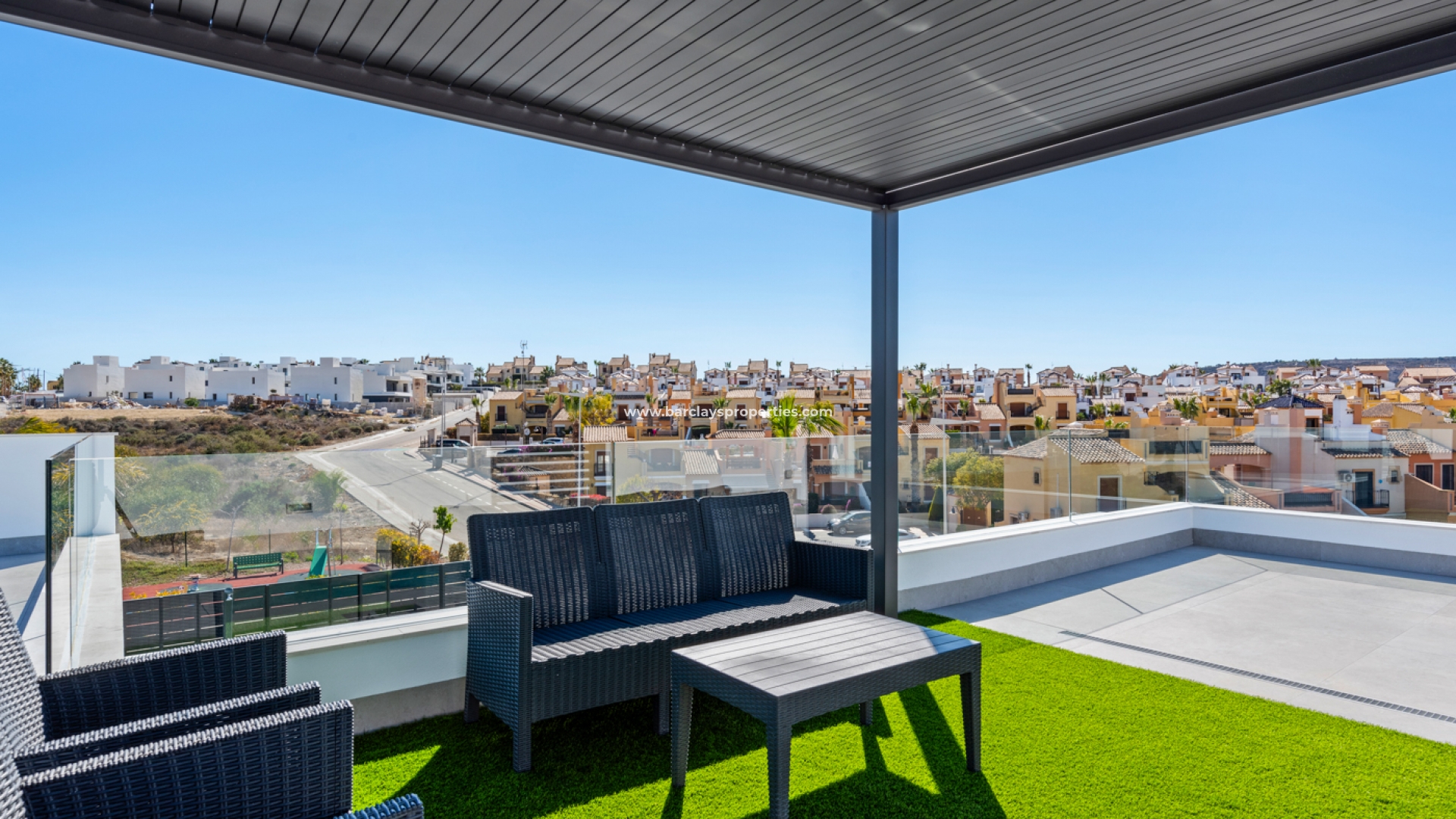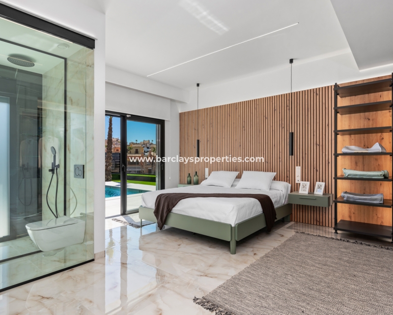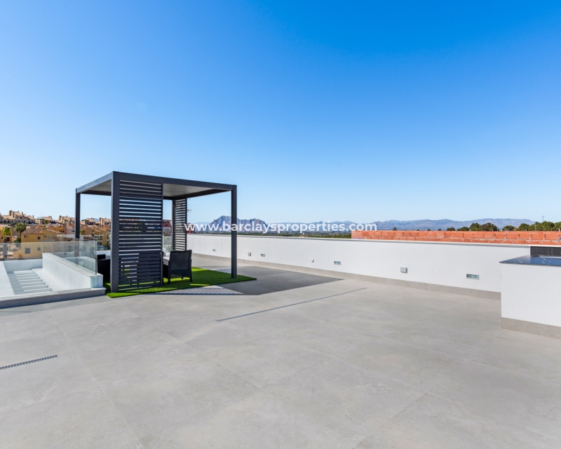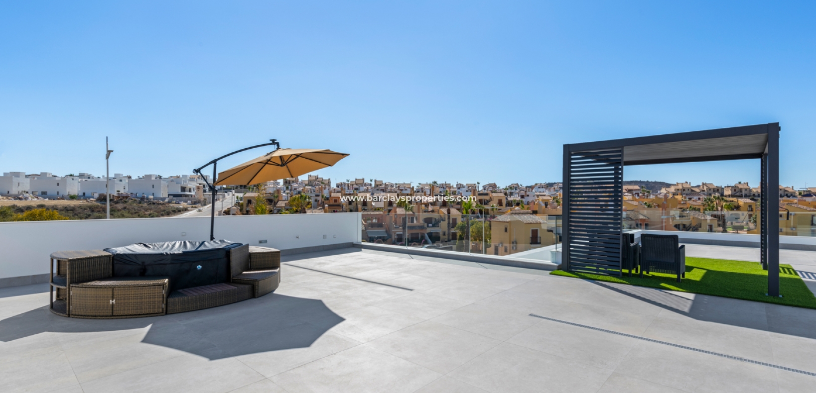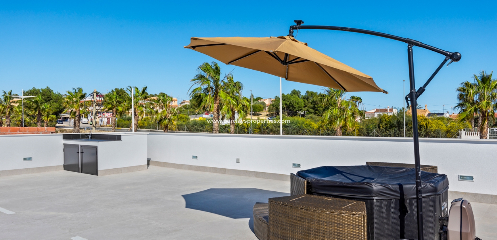 This stunning new build in Algorfa offers a sleek, ➡️ single-level design with 3 bedrooms and 2 bathrooms, set on a 462 m² plot. Enjoy the bright, open-plan kitchen and living spaces, all finished with top-quality materials. ➡️ The property includes a private pool with a jacuzzi, a rooftop sun solarium, and a beautifully landscaped outdoor area.