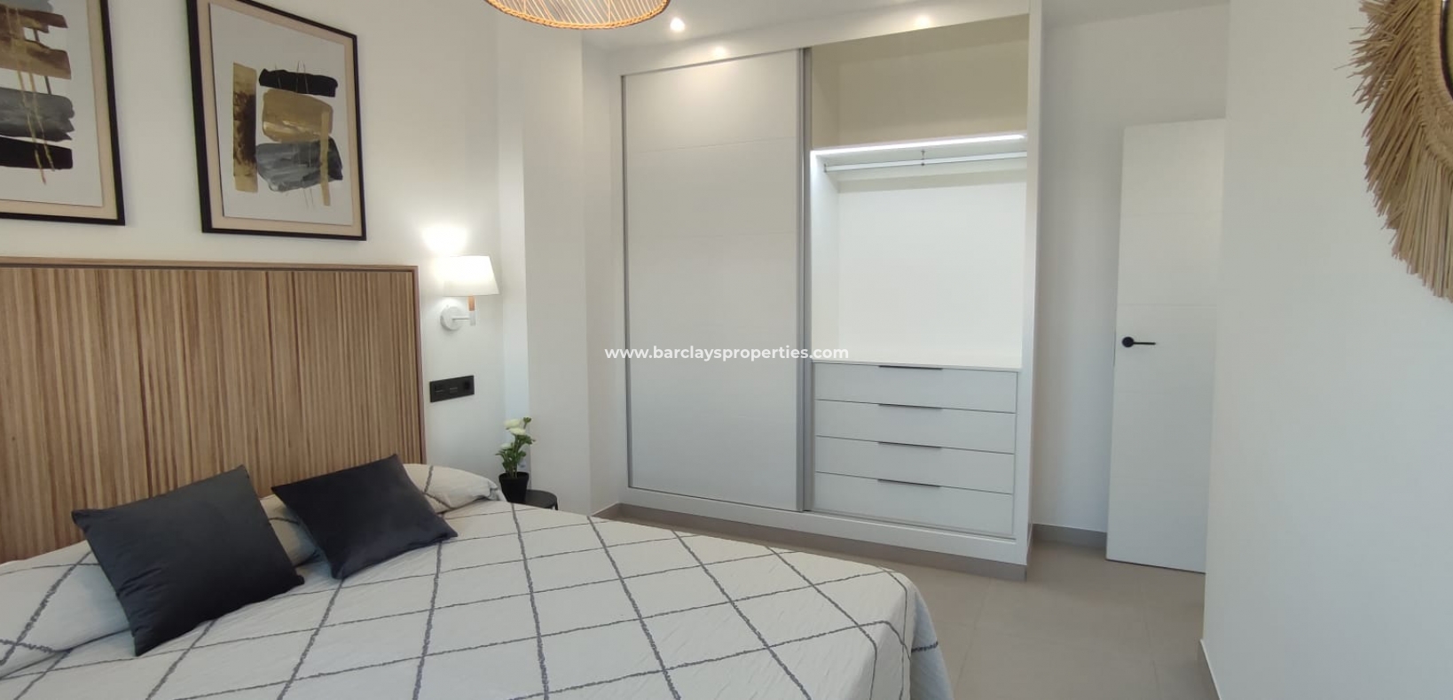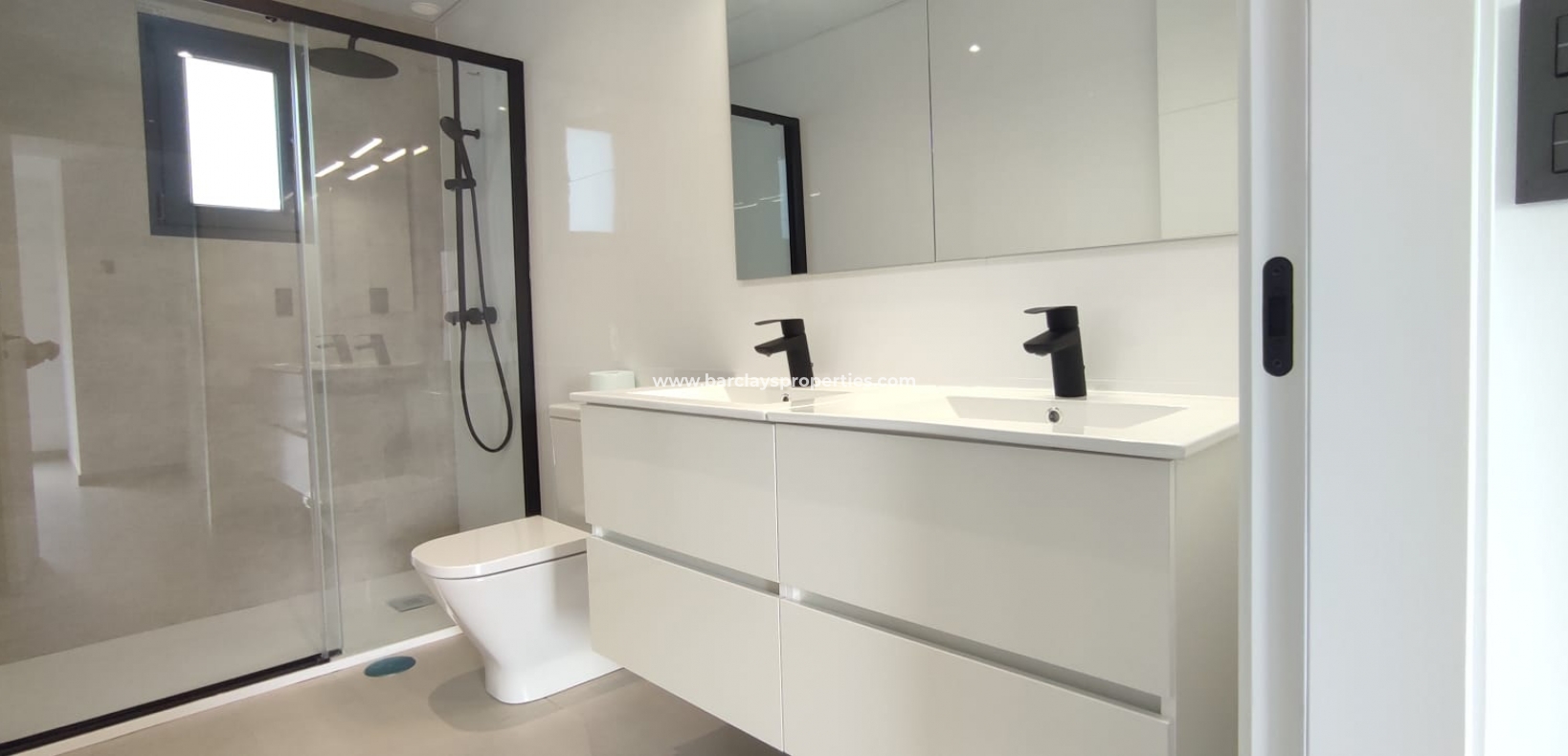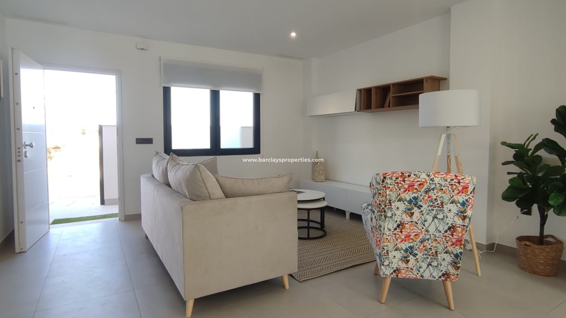 These beautiful 3-bedroom, 3-bathroom two-storey homes are designed with modern living in mind, offering 119 m² of living space on 181 m² plots with an additional 57 m² garden. Each property features ➡️ a private pool, a private garage, and a rooftop solarium with a summer kitchen. Inside, enjoy open-plan kitchens, double-glazed windows, and pre-installed air conditioning, as well as white goods, an aerothermal water heating system, and pre-installation for a car charging point. Located in a quiet area yet only 400 meters from amenities, 4 km from the beach, 5 km from golf, and 47 km from the airport, these homes are a perfect combination of peaceful living and convenient access to local attractions. ➡️ With great rental potential, they make an excellent investment opportunity.