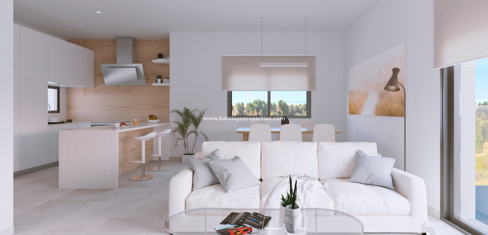 This stunning, new-build apartment features 2 bedrooms and 2 bathrooms, spread across 75 m² of contemporary design. Located on one level, it includes an open kitchen concept and boasts premium touches such as double-glazed windows, a reinforced security door, ➡️ an aerothermal water heating system and solar panels. Enjoy outdoor living with your own sun solarium, perfect for soaking up the Mediterranean sun. The apartment is part ➡️ of a private community with a communal swimming pool, offering a tranquil lifestyle yet remaining close to essential amenities just 4 km away. With a 10-year warranty, this property promises worry-free ownership and great rental potential.