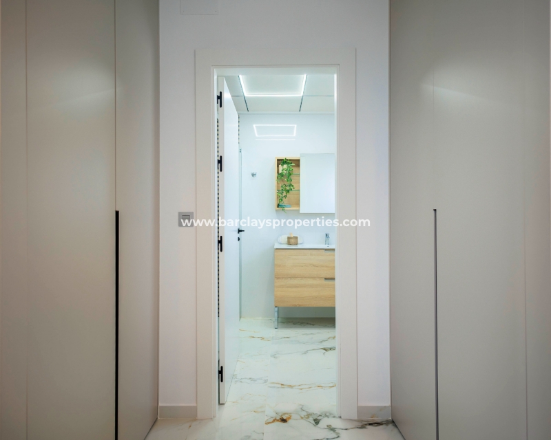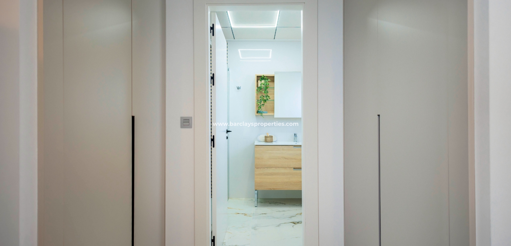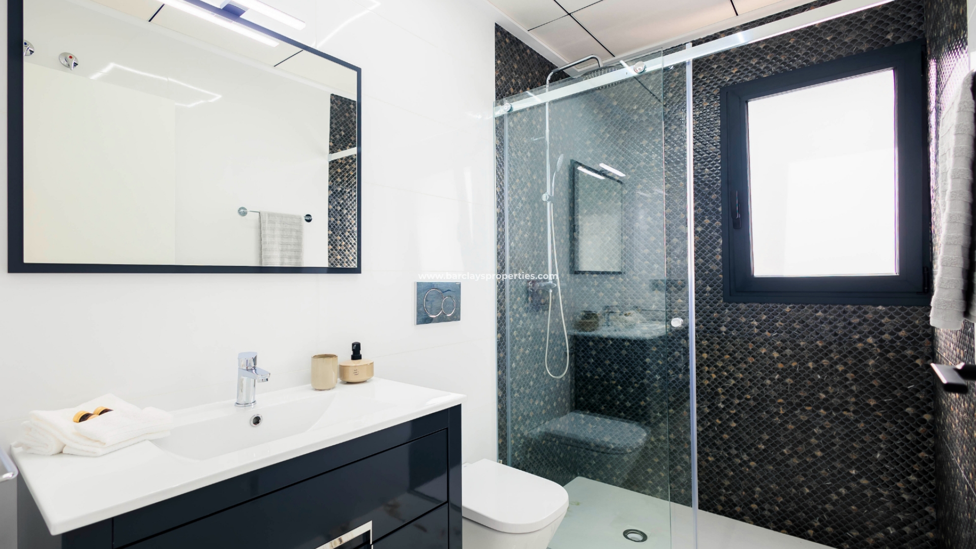 Explore the pinnacle of modern Mediterranean living with these stunning new build villas for sale in Costa Blanca. Designed with comfort and elegance in mind, these two-storey homes feature 3 spacious bedrooms, 3 luxurious bathrooms, and an additional WC. Each villa boasts an open kitchen, creating a seamless flow into the living space, and sits on a 201m² plot with 120m² of constructed area. Enjoy the community’s exclusive amenities, including a communal swimming pool and private parking.