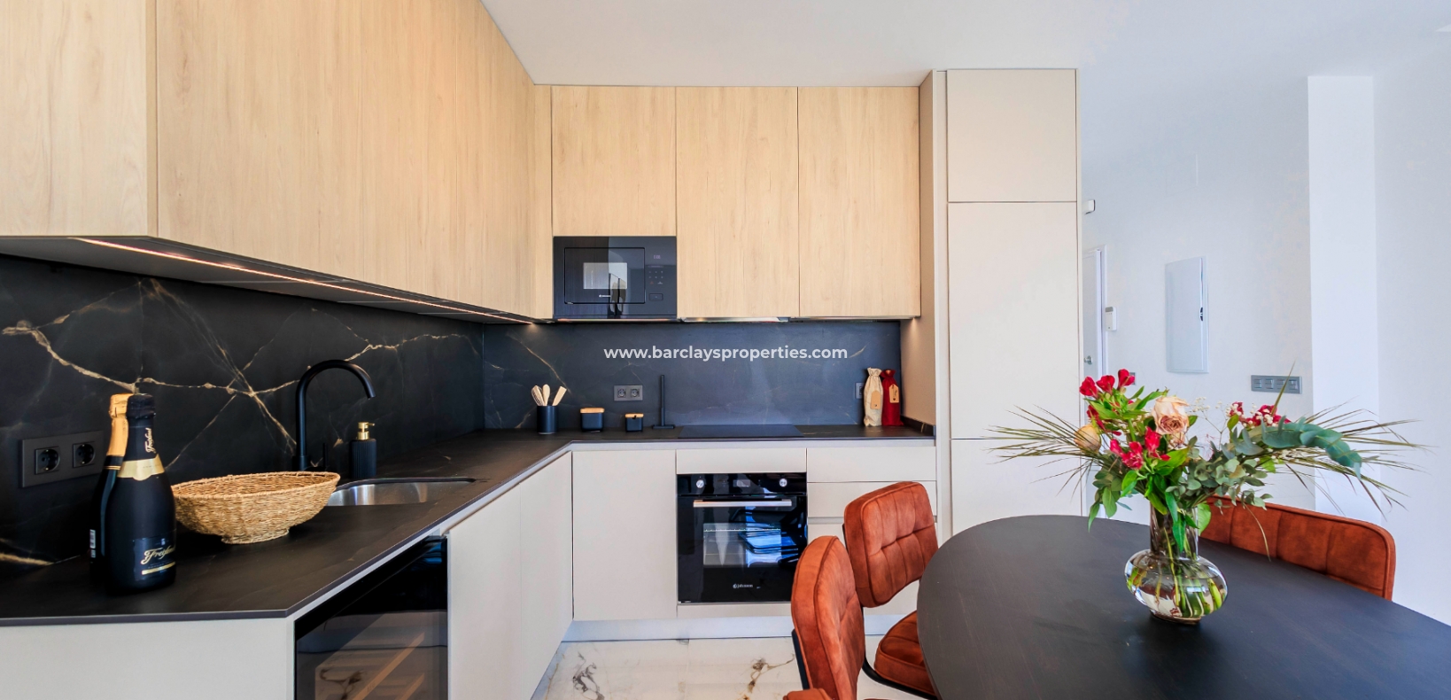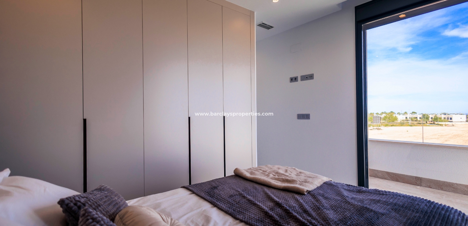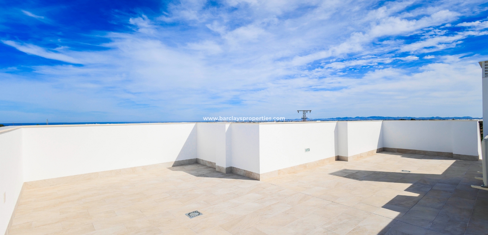 Explore the pinnacle of modern Mediterranean living with these stunning new build villas for sale in Costa Blanca. Designed with comfort and elegance in mind, these two-storey homes feature 3 spacious bedrooms, 3 luxurious bathrooms, and an additional WC. Each villa boasts an open kitchen, creating a seamless flow into the living space, and sits on a 201m² plot with 120m² of constructed area. Enjoy the community’s exclusive amenities, including a communal swimming pool and private parking.