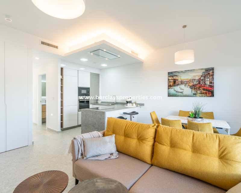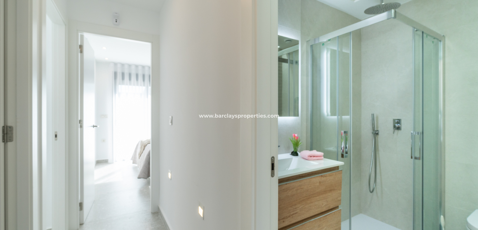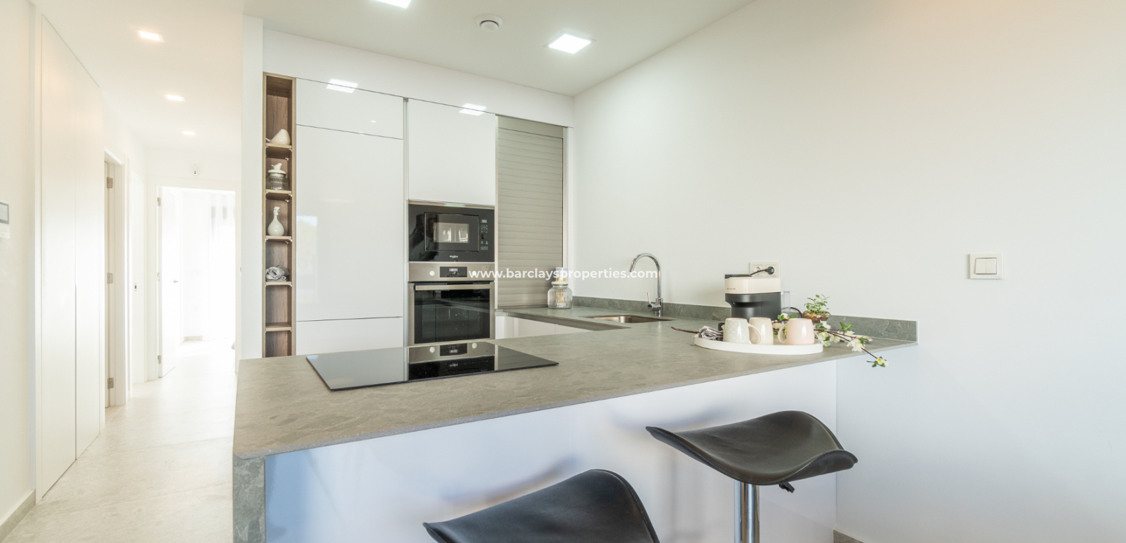 This stunning new build apartment in Costa Blanca offers 2 spacious bedrooms and 2 modern bathrooms, with open-plan kitchens perfect for contemporary living. Situated in a quiet area yet close to amenities, the apartment features double glazed windows, pre-installation for air conditioning, electric blinds, and underfloor heating in the bathrooms for added comfort. ➡️ Enjoy the luxury of a communal pool, exterior shower, and a private solarium or terrace with breathtaking views. The property also boasts a video entry phone system and a reinforced security door for peace of mind. Located just 6 km from the beach, 68 km from the airport, and only 2 km from local amenities, this apartment offers great rental potential with a 10-year warranty. ➡️ Ground floor apartments come with a private front and back terrace and/or garden, while top floor apartments offer a solarium and balcony. Available in both 2 and 3-bedroom options, ranging from 74 to 82 m² of constructed space.
