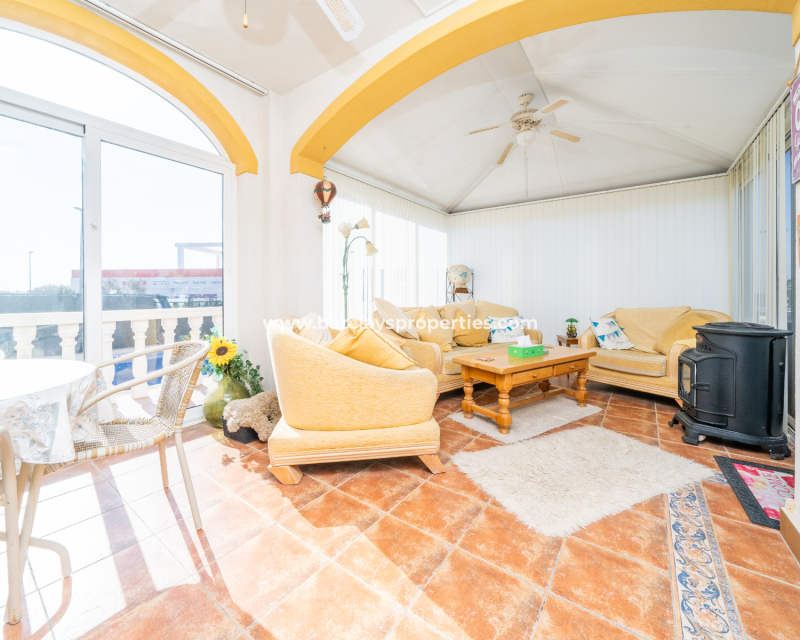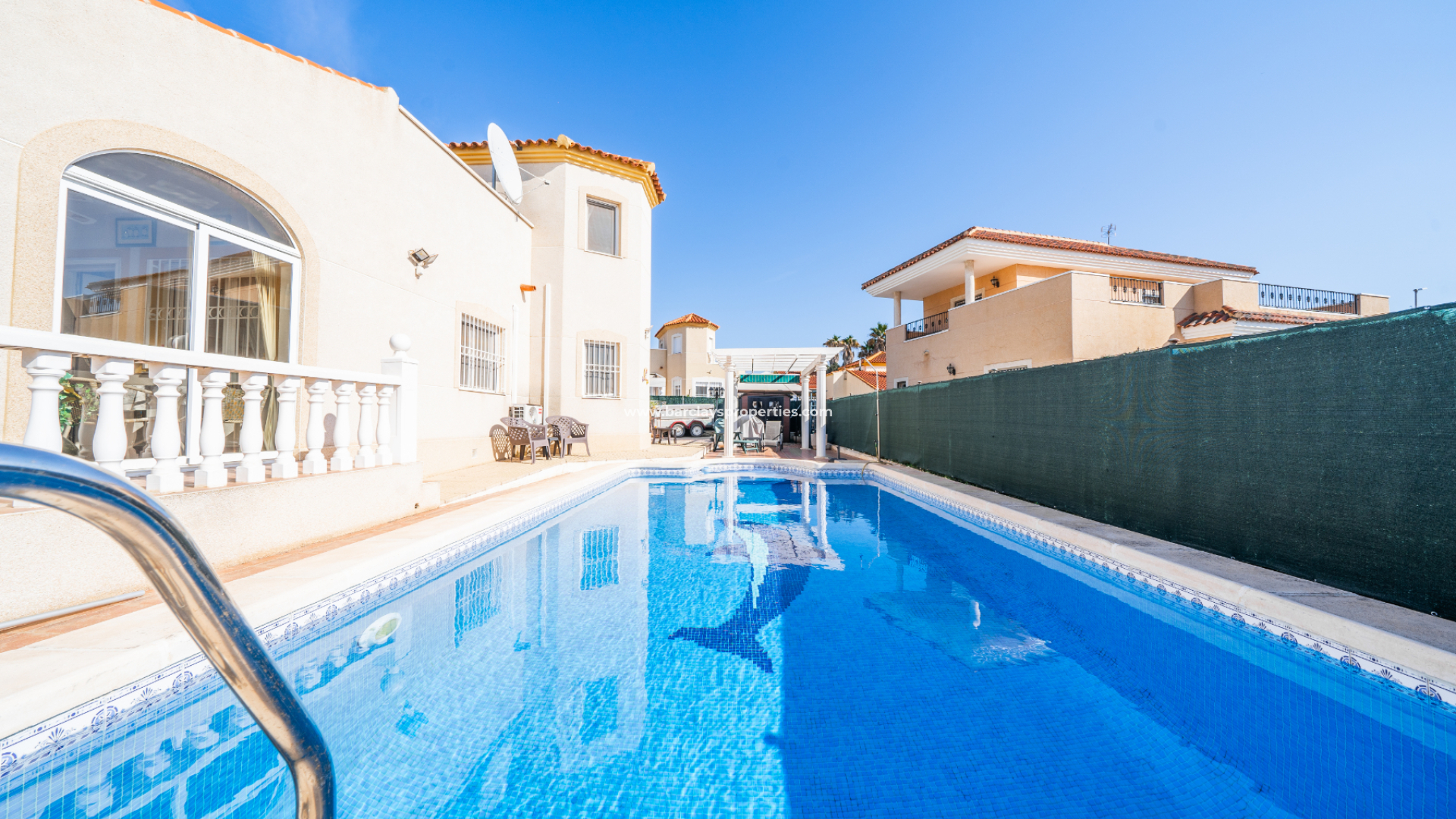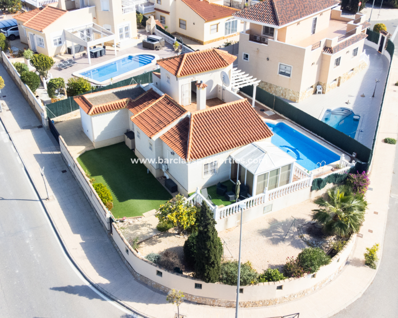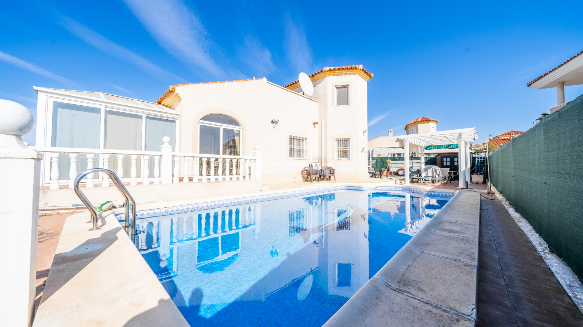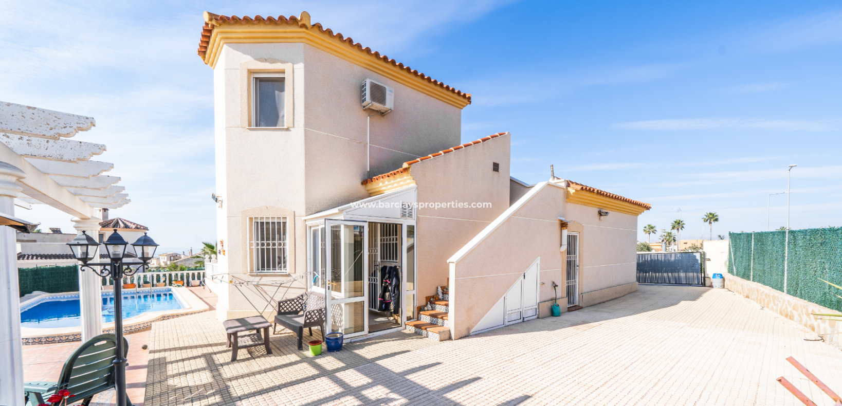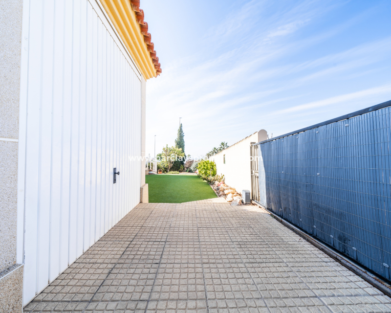 This spacious villa in Urb. La Marina, San Fulgencio set in a large corner plot offers comfortable living where amenities are only 2-minute walk from the property. The villa features a ✅fantastic 8 x 4 private swimming pool, a private garage with a utility area and a sliding electric gate, complemented by a boiler for central heating. The garden is well established with shrubs and trees and has many shaded and sunny areas to enjoy the Spanish climate all year round.