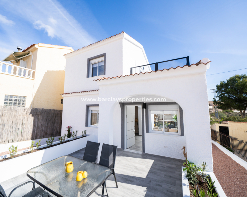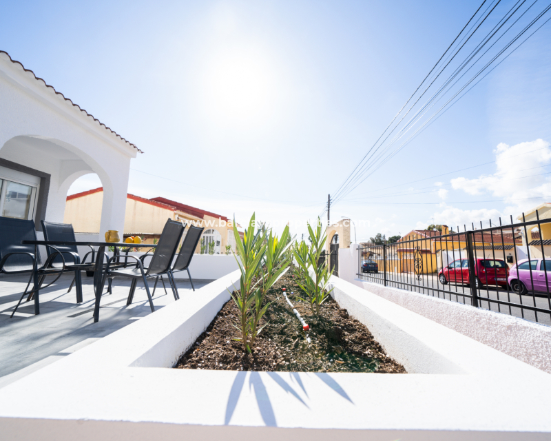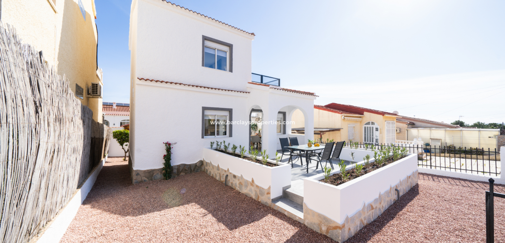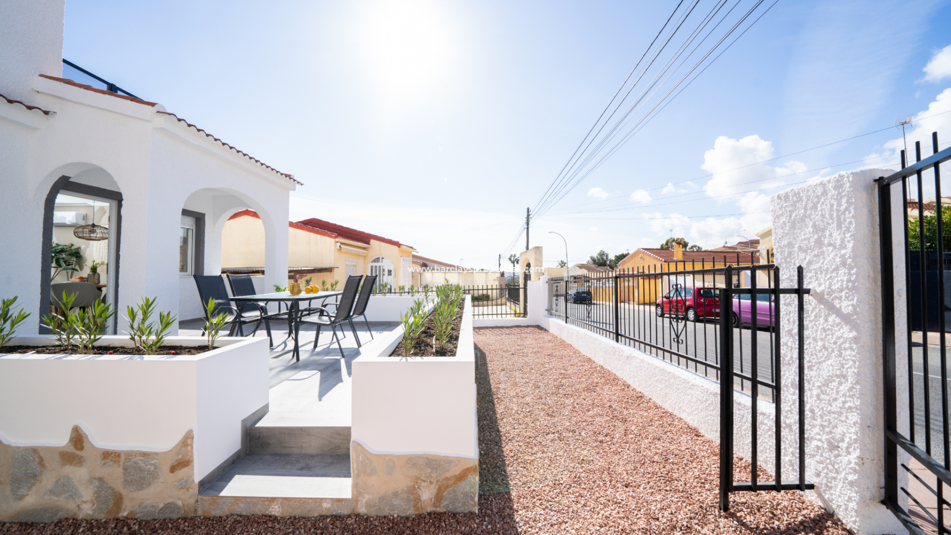 This beautifully renovated, extended detached “Lola” model offers a west-facing orientation to the front and east facing to the rear offering all day round sunshine and exceptional features, making it a standout property for both living and investment. Located near the beach of "la Marina Village" (5 minutes-drive away), the popular Hillside Bar /restaurant and open air swimming pool and all amenities, this stylish home combines natural beauty with convenience, making it a rare gem.