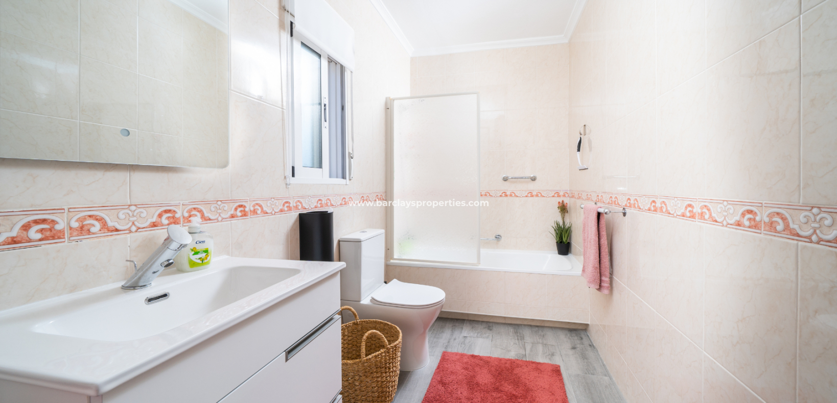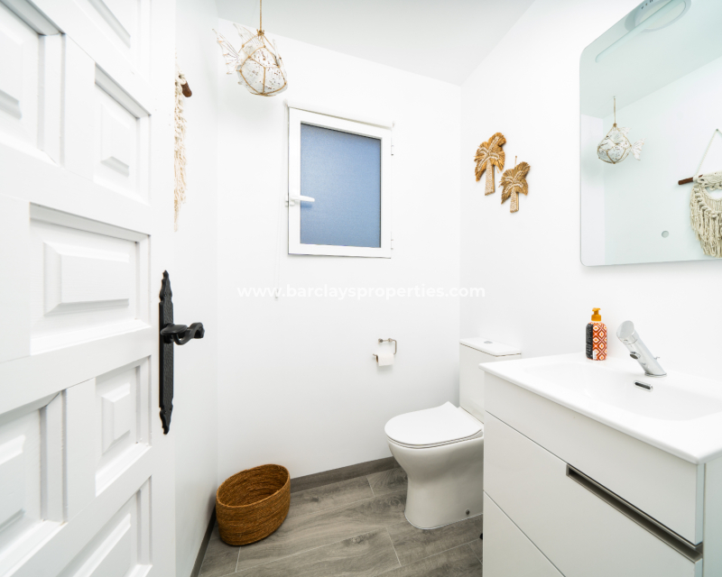 The outdoor spaces are just as impressive, with newly tiled terraces, a garden irrigation system, and plenty of privacy. The rear garden provides direct access to a serene green area and offers stunning views towards the neighbouring town of Guardamar del Segura.