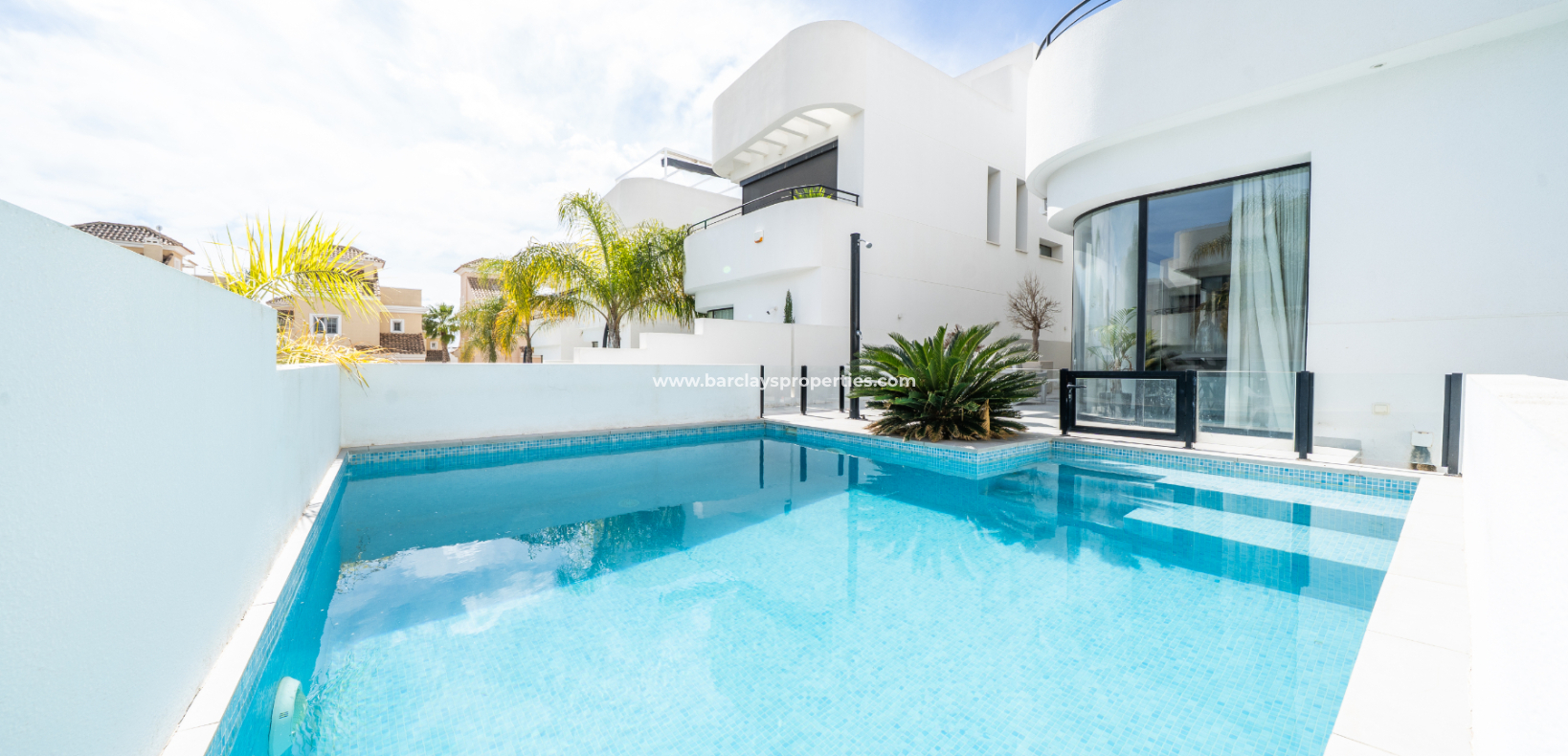 Located in Urbanisation La Marina, this beautiful, 3-Bedroom, 3-Bathroom modern detached “Nimbus” villa offers stylish living with convenience at your doorstep. Just a 10-minute walk from amenities and a short five-minute drive to the beach, it is perfectly positioned for both relaxation and everyday ease making it the perfect permanent residence or luxury holiday home.