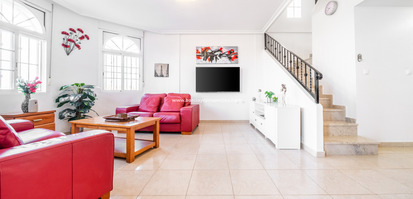 Presenting this spacious and well-located detached property in the desirable Urbanisation El Oasis, San Fulgencio - immediately adjacent to the popular Urb. La Marina. This home offers ➡️ convenient access to the community swimming pool. In addition multiple commercial zones, shops, restaurants, and essential amenities are all within a short distance. The beach is just a five-minute drive away and Alicante Airport can be reached in approximately twenty-five minutes.