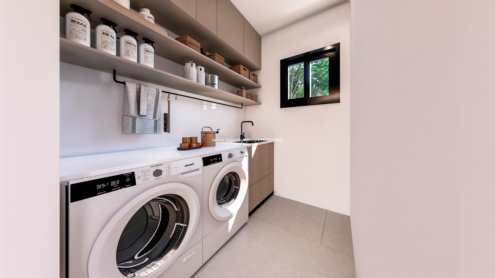 This exceptional two-storey detached villa features ➡️ 4 spacious bedrooms and 3 stylish bathrooms, offering 256 m² of thoughtfully designed living space on a generous 505 m² plot. Crafted with a focus on quality and comfort, it includes an open-plan kitchen, a bright and airy living area, utility room, walk-in wardrobe, and high-end finishes throughout. The home comes equipped with air conditioning in all rooms, an aerothermal water heating system for energy efficiency, a reinforced security door, double glazed windows, and electric blinds. Outdoors, you'll find a beautifully finished private pool, electric entrance gate, and a secure parking space. Set in a peaceful yet well-connected residential area just 3 km from the beach, 1.2 km from local amenities, and 25 km from Alicante Airport, this property offers both tranquility and convenience. ➡️ Six different home designs are available, with internal sizes ranging from 256 to 273 m² and plots from 505 to 668 m², priced from 850.000€ to 897.000€, providing a unique opportunity to choose a layout that suits your lifestyle. Whether as a luxury residence or a high-end investment, this villa stands out for its modern design, generous space, and unbeatable location.