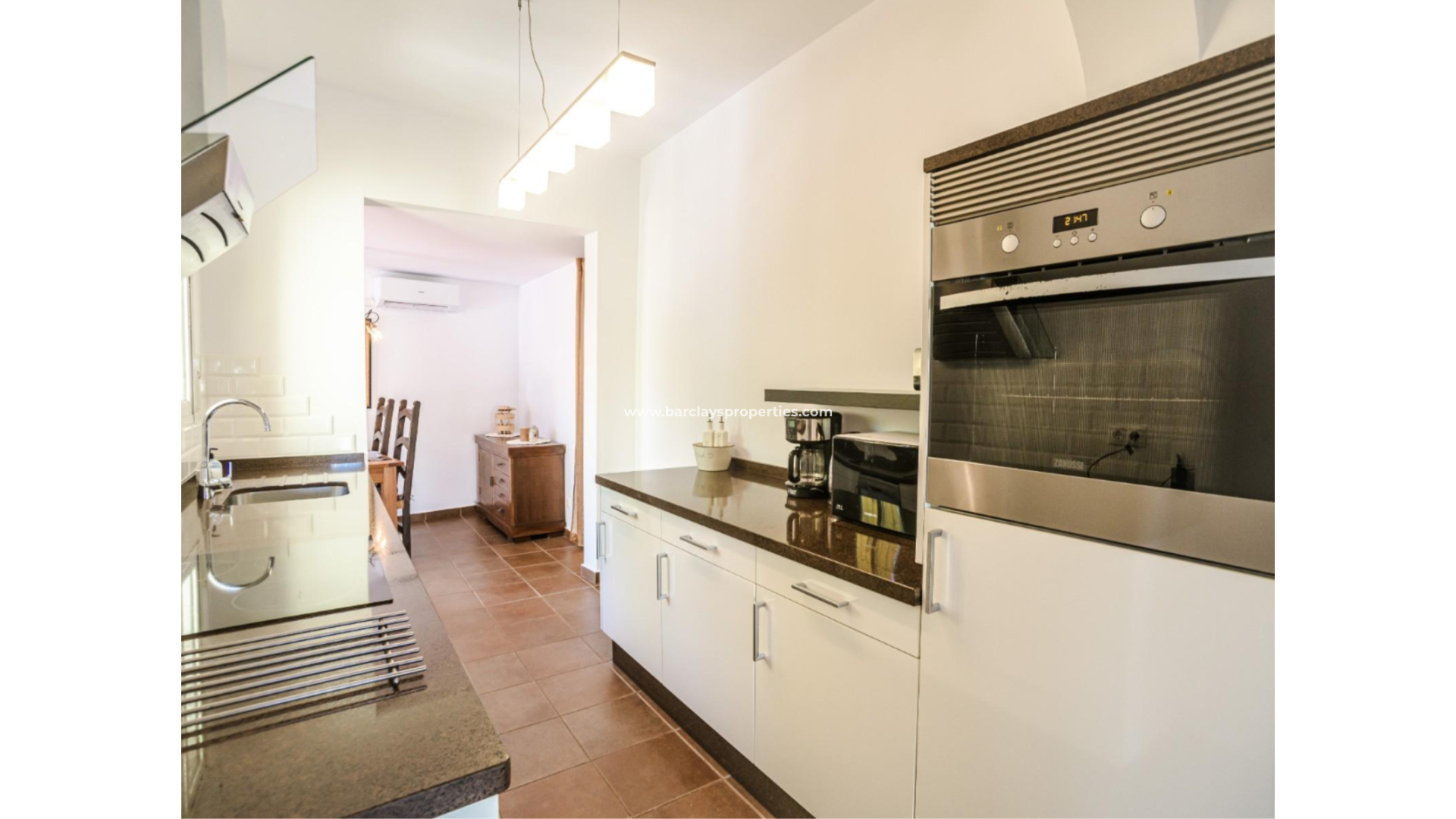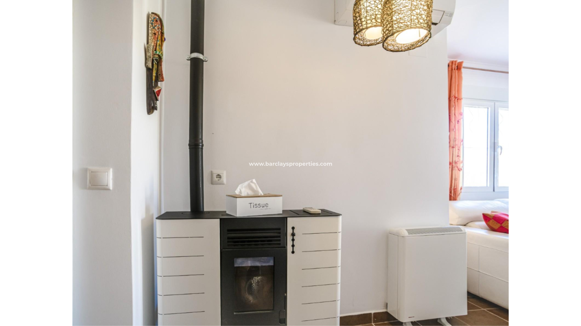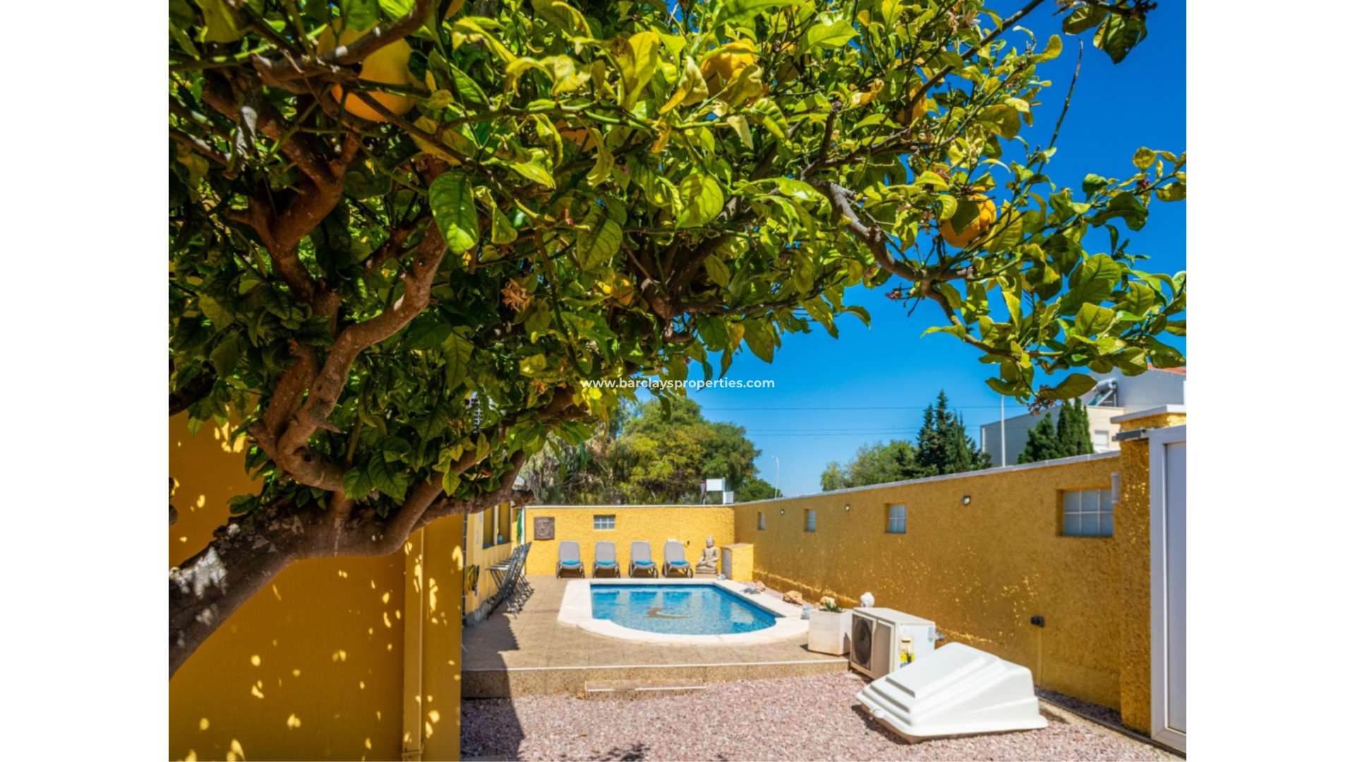 Charming and fully refurbished, this 3-bedroom, 2-bathroom detached villa with an additional WC is set on a 268 m2 plot in the peaceful yet well-connected urbanisation of La Marina, San Fulgencio. Built on one level with 105 m2 of constructed area, it offers a spacious and independent kitchen, a bright living area with a pellet burner, air conditioning throughout, and a utility room. Outdoors, the property features ➡️ a private heated swimming pool, exterior shower, garden bar, and ample terrace space—ideal for entertaining and relaxing in the sun. It also includes a private parking space, storage room, double glazed windows, solar panels, and comes fully furnished with white goods included. With just 5 km to the beach, 800 m to local amenities, 10 km to golf, and 25 km to Alicante airport, the location is ideal for permanent living or holiday lets. ➡️ This villa offers not only comfort and style but also fantastic rental potential and energy efficiency.