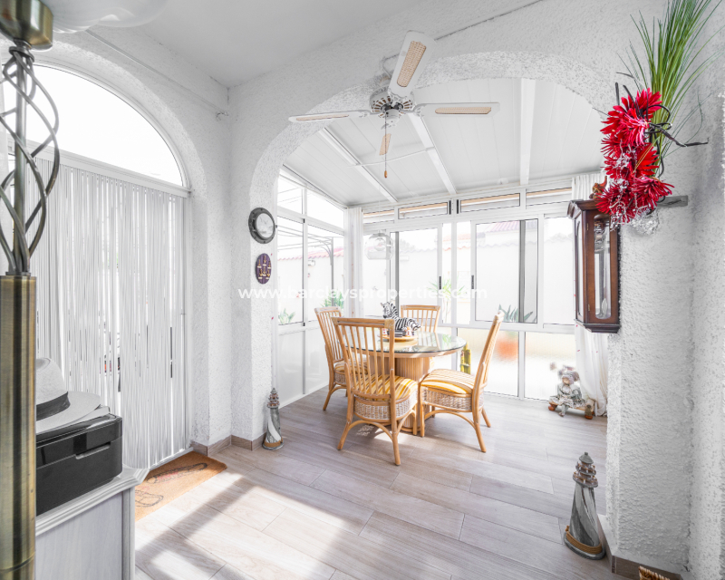 This attractive detached villa is located in the popular Urbanisation La Marina, just a 5–10 minute stroll to a variety of local amenities and only five minutes by car to the golden sands of “Playa De La Marina”.